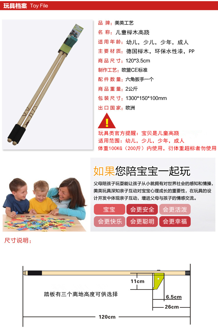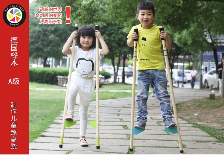 Mygy Children's Beechwood Stilts Kindergarten Sports Activities Outdoor Sports Toys Sensory Integration Exercise Equipment