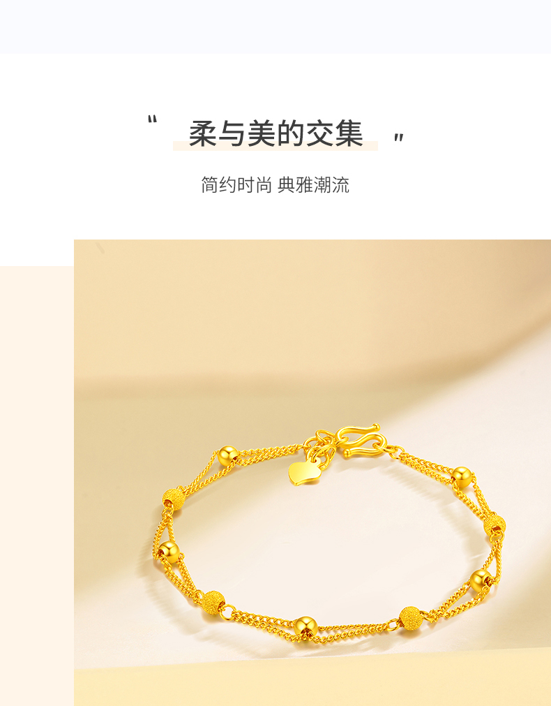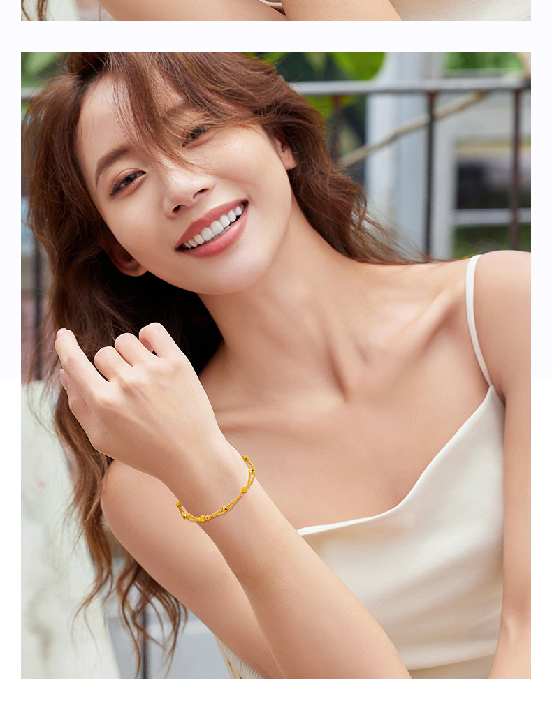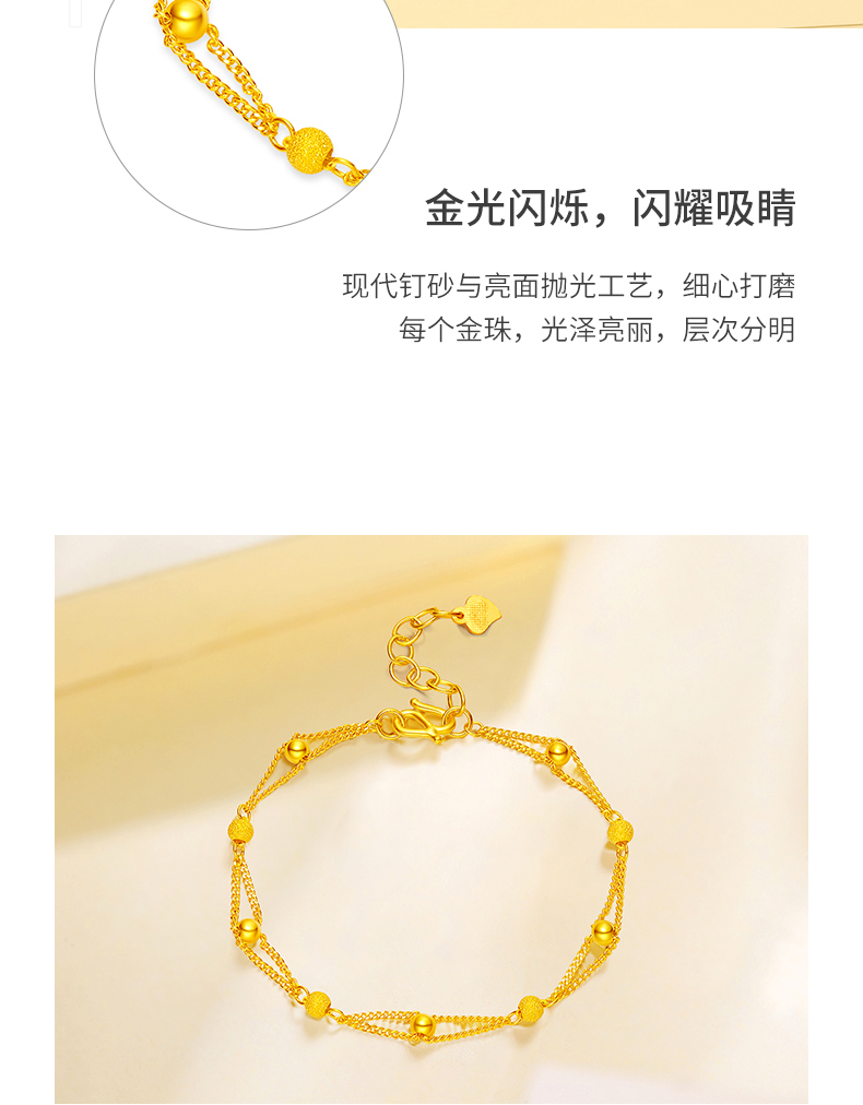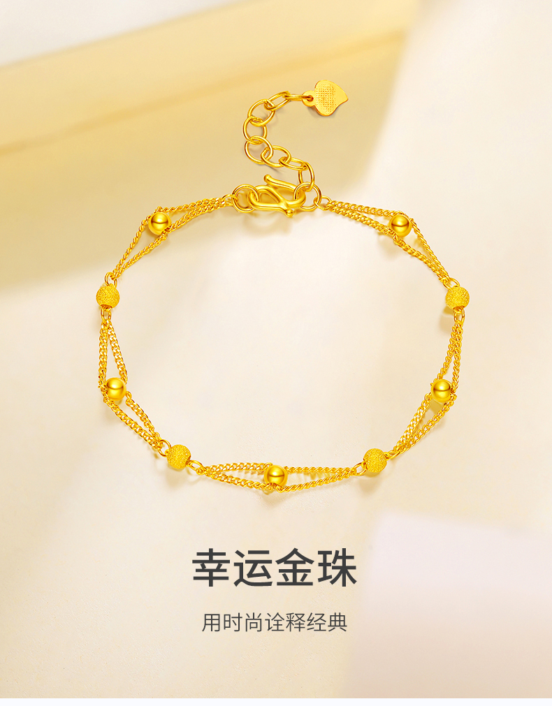 Mengjinyuan Transfer Bead Gold Bracelet for Women, New Double-Layer Bracelet, Pure Gold Bangle, Jewelry Gift for Girlfriend
