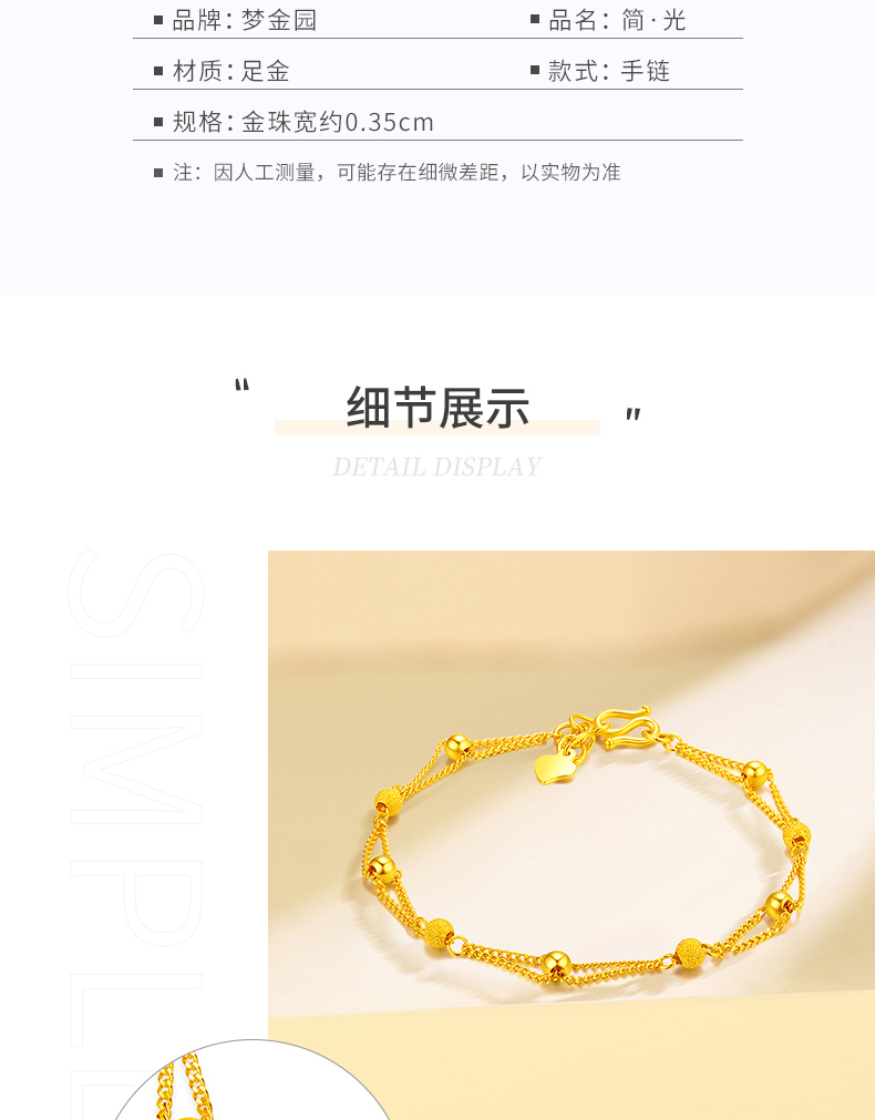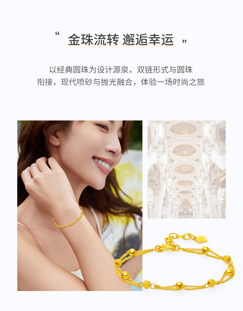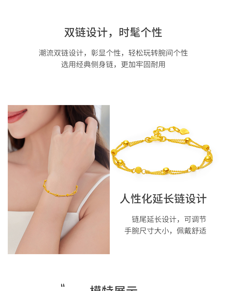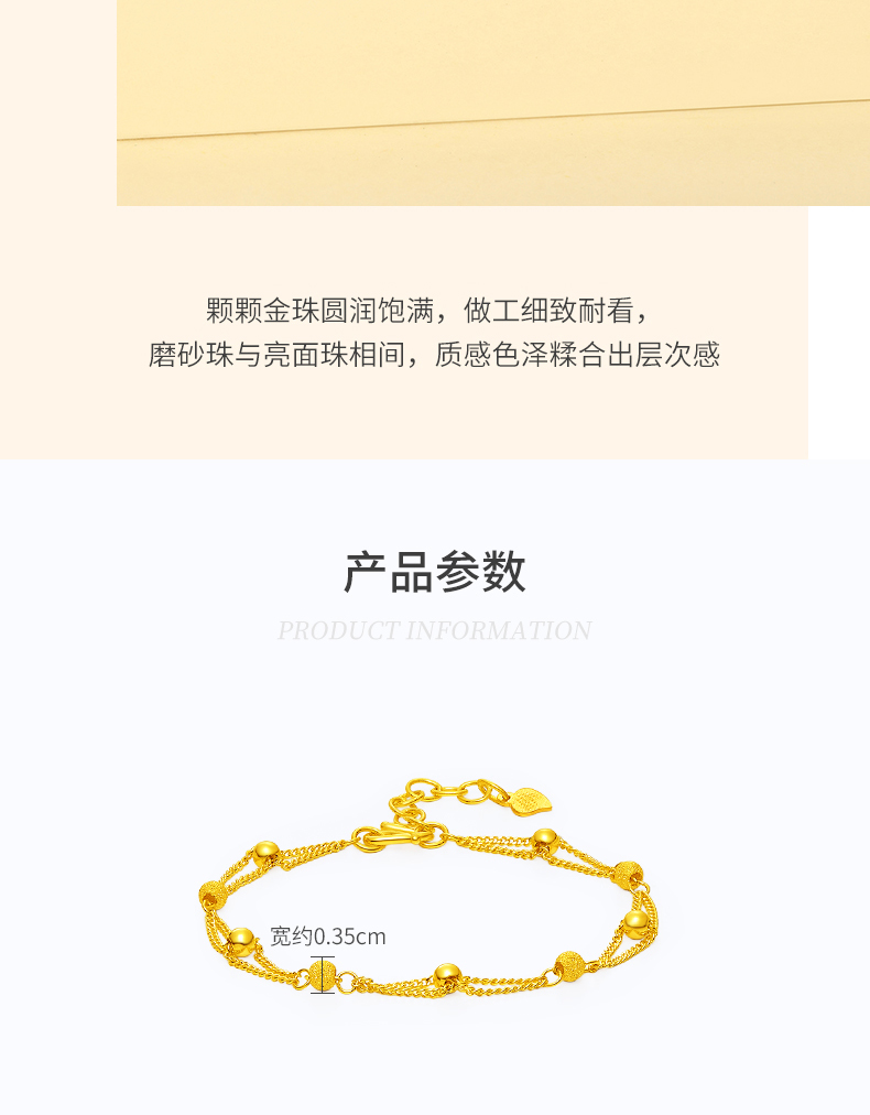 Mengjinyuan Transfer Bead Gold Bracelet for Women, New Double-Layer Bracelet, Pure Gold Bangle, Jewelry Gift for Girlfriend