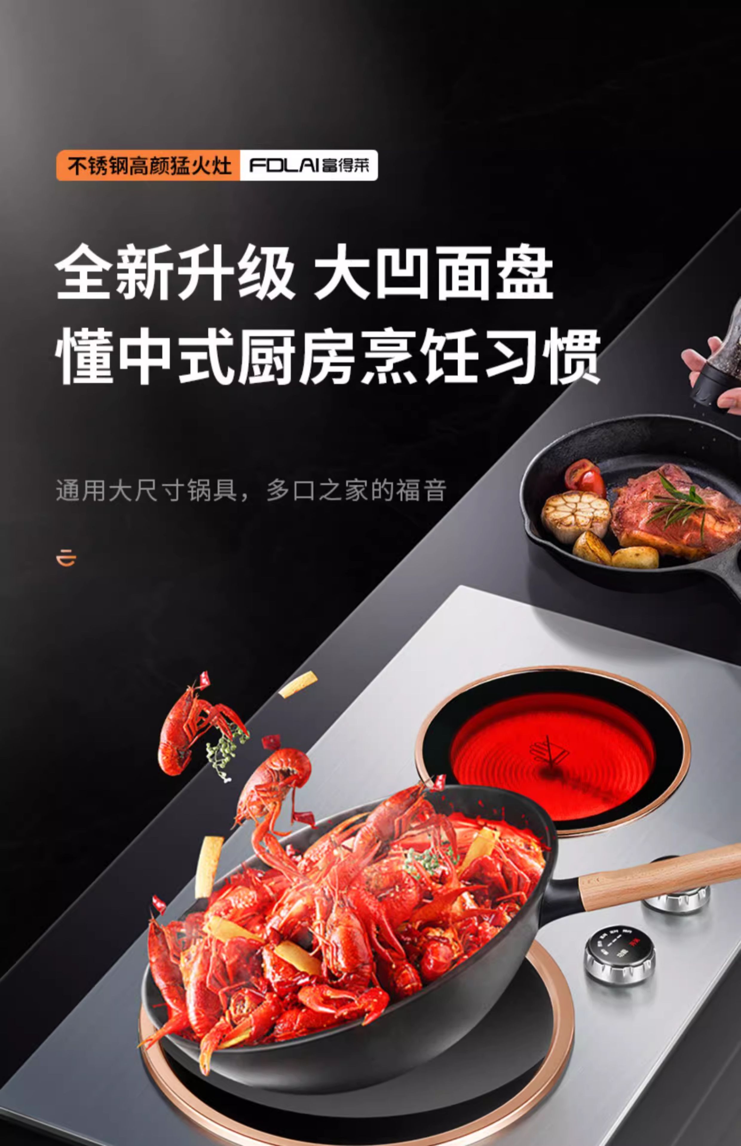 Fude Lai Stainless Steel Induction Cooker Double Burner Household Double-Head Stove High-Power Electric Stove Built-In Concave Electric Ceramic Stove