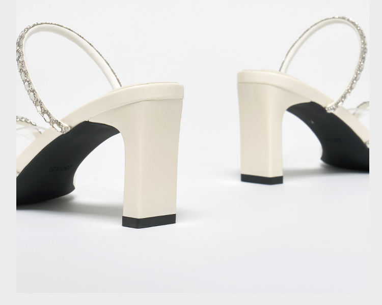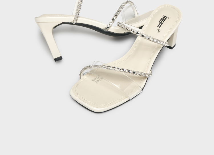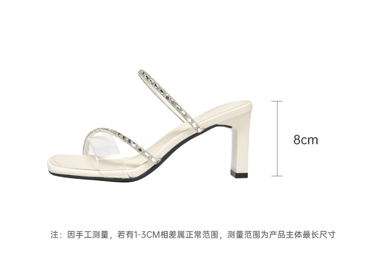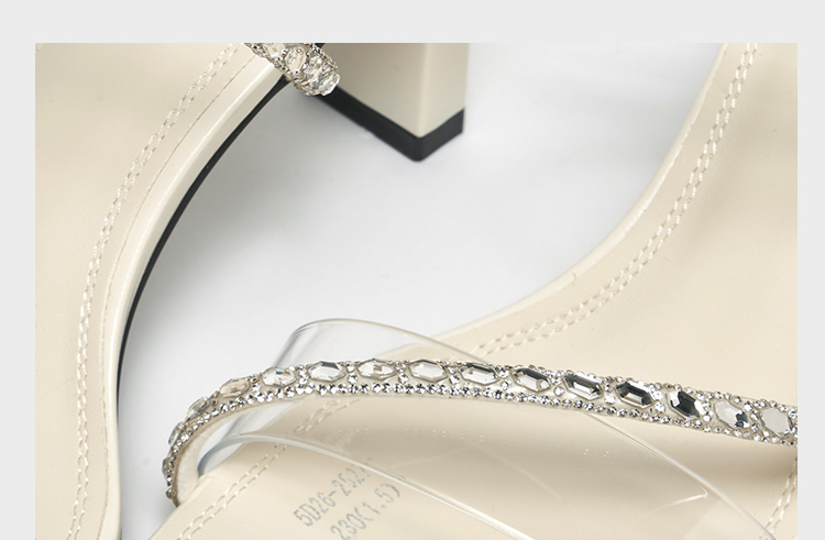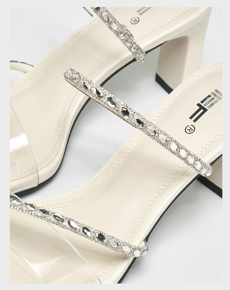 Ief/Aiyi Nude Rhinestone Sandals 2025 Spring New Outerwear Open Toe Strap Thick Heel Sandals