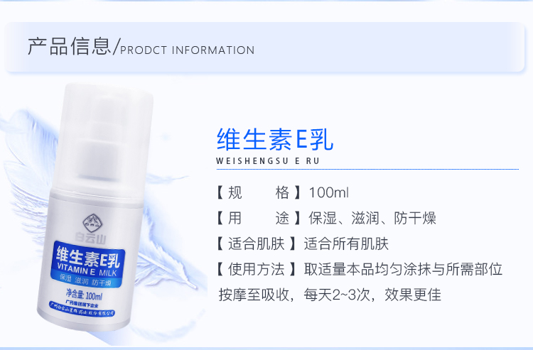 Suitable for Skin TypeBaiyun Mountain Vitamin E Milk 3 Bottles,Baiyun Mountain Vitamin E Milk 1 Bottle