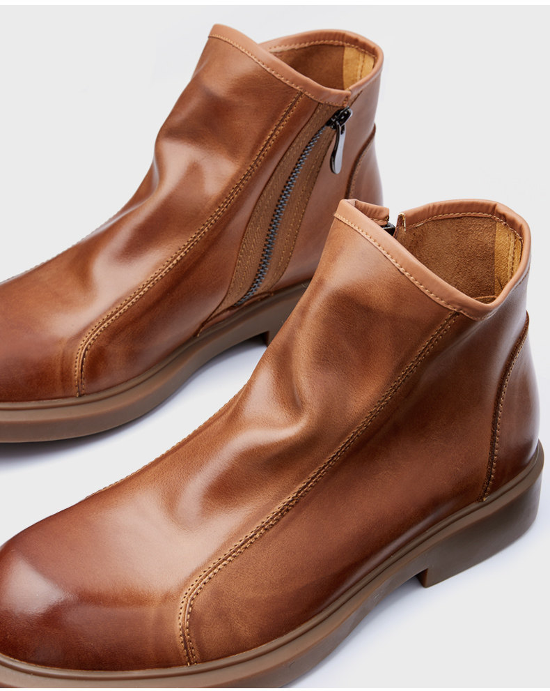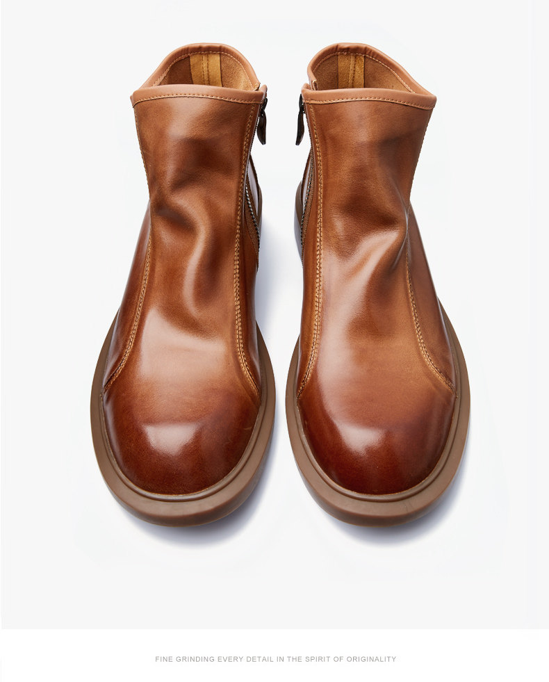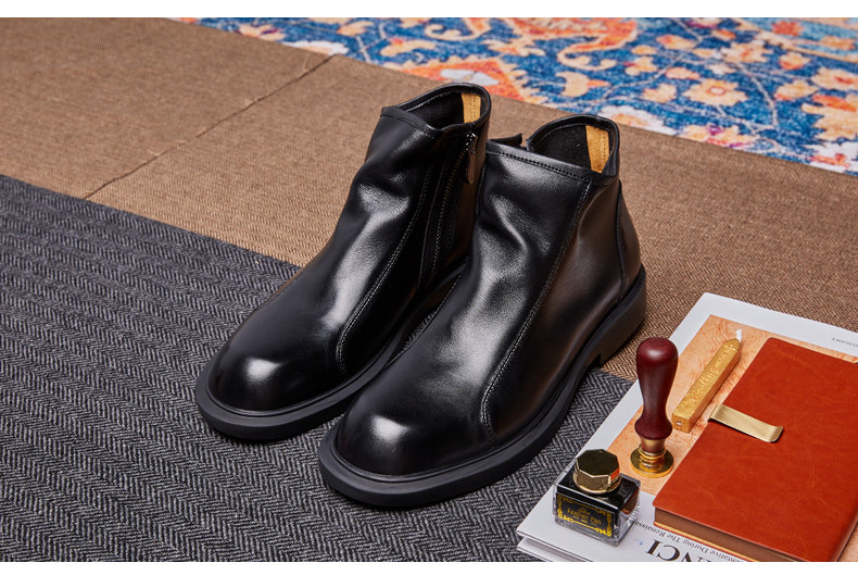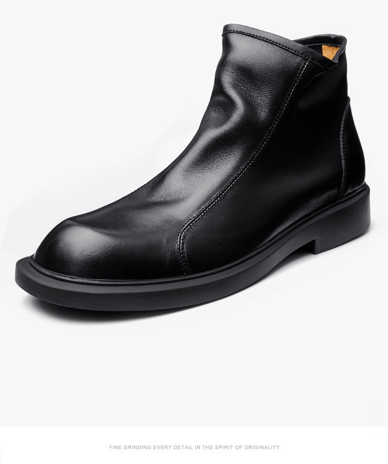 Chelsea boots men British style middle-top Martin boots winter high-top leather shoes warm leather business casual boots men