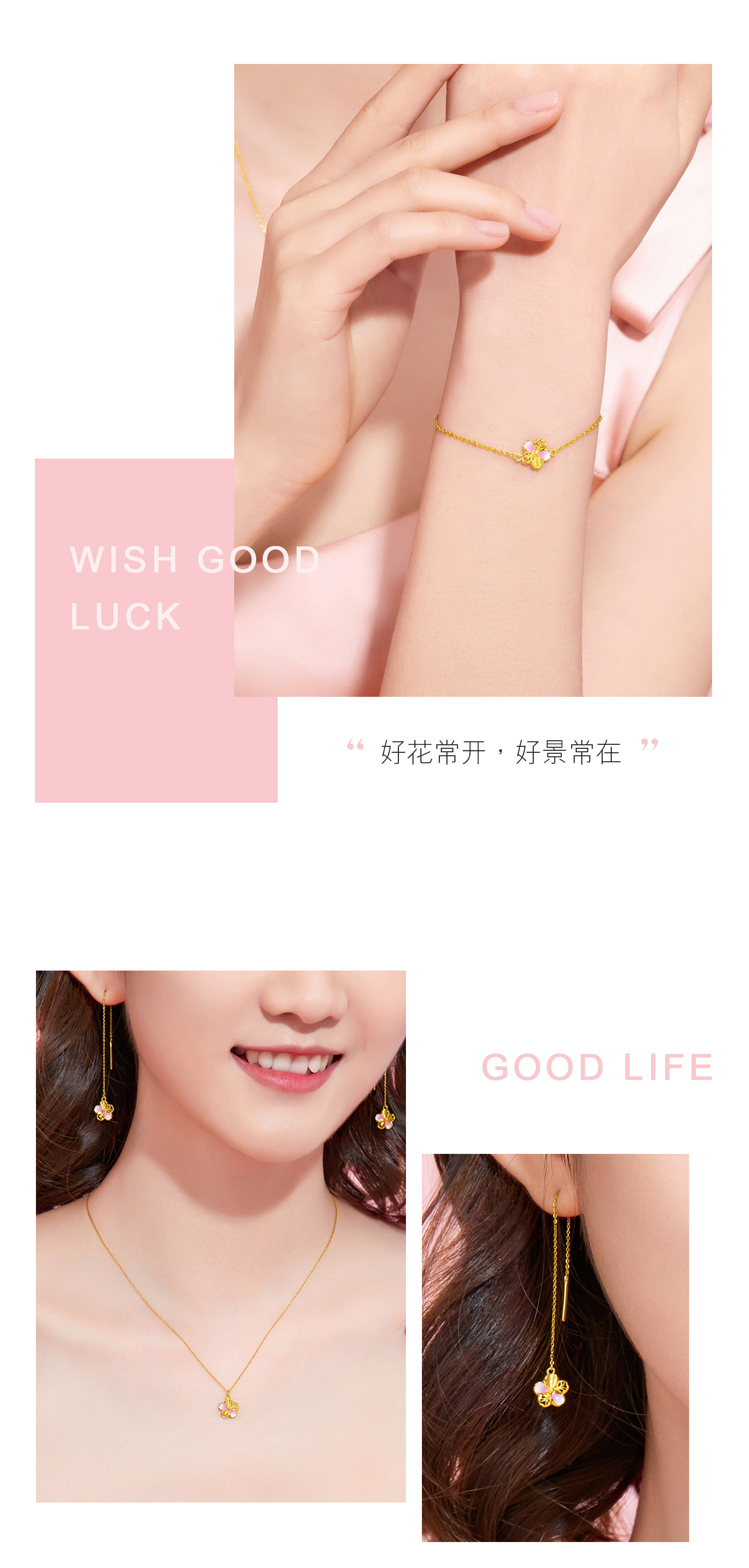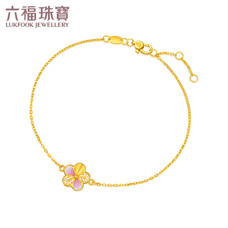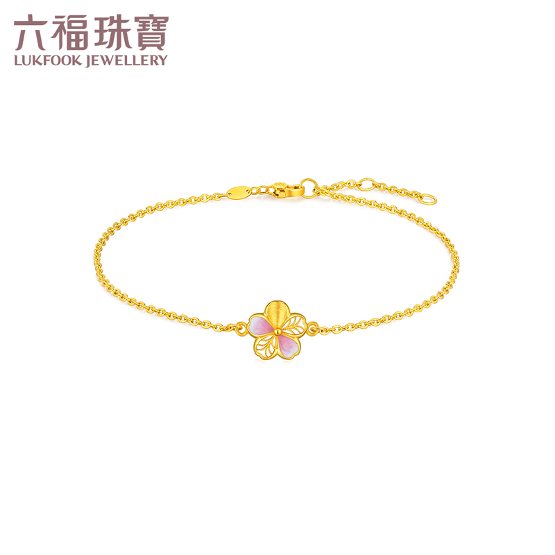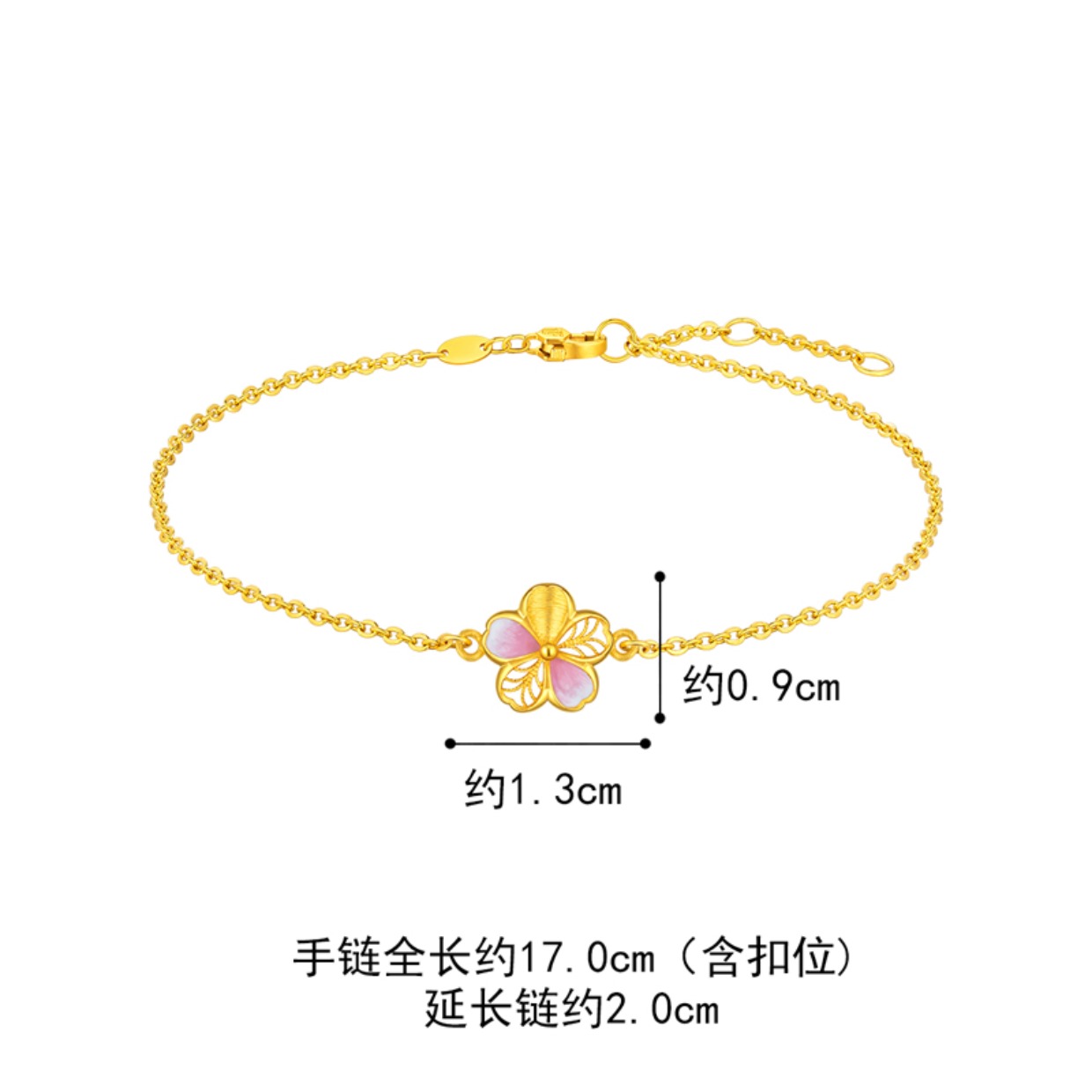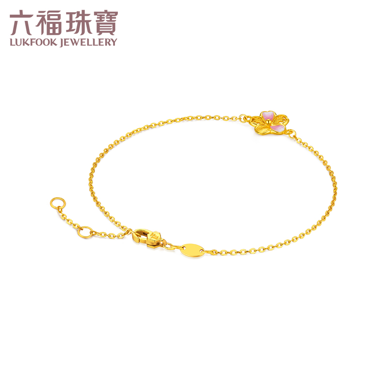 Lukfook Jewelry Peach Blossom Gold Bracelet for Women, Fine Gold with Extension Chain, Gilded Craftsmanship, Pricing Gdgtbb0022