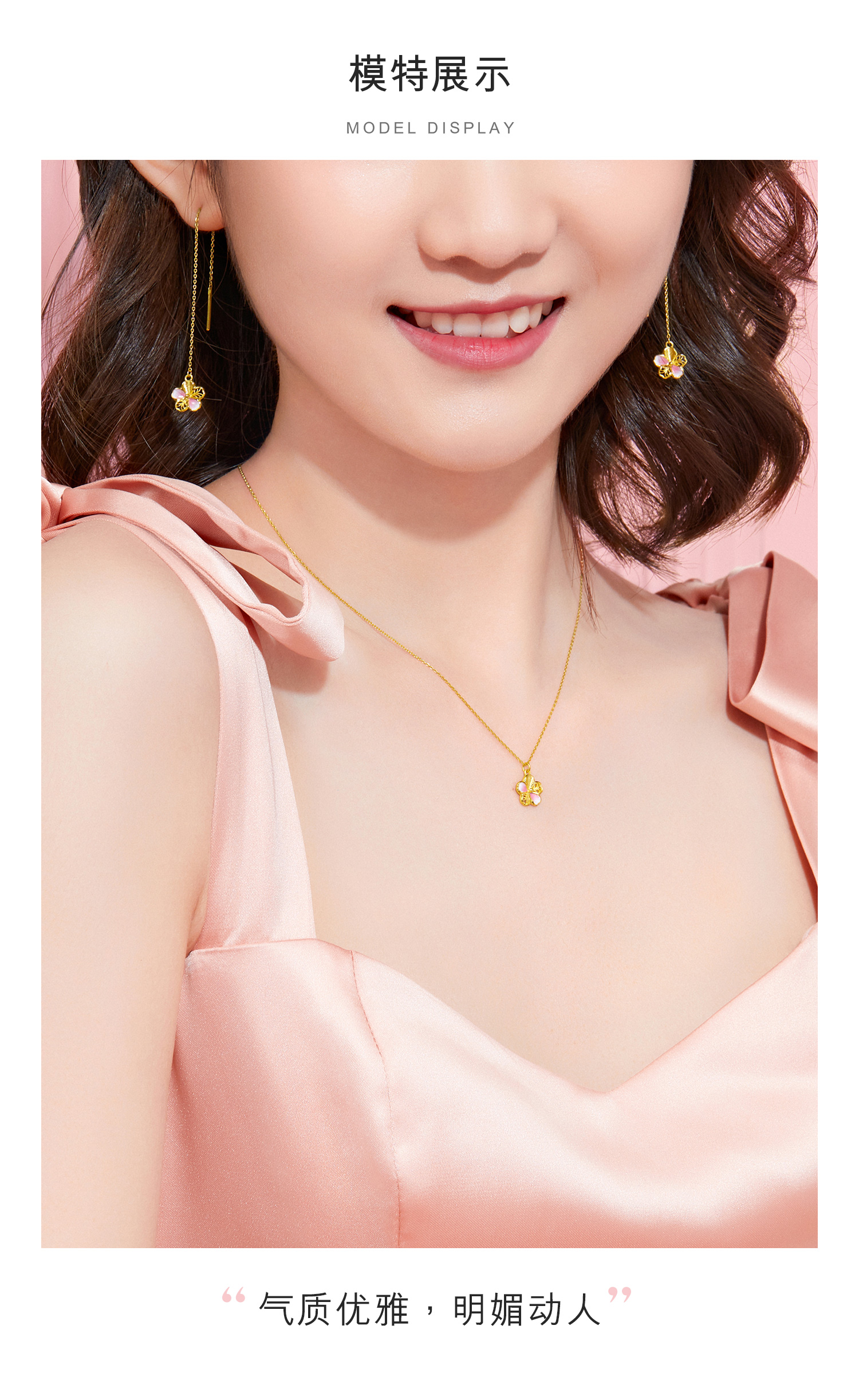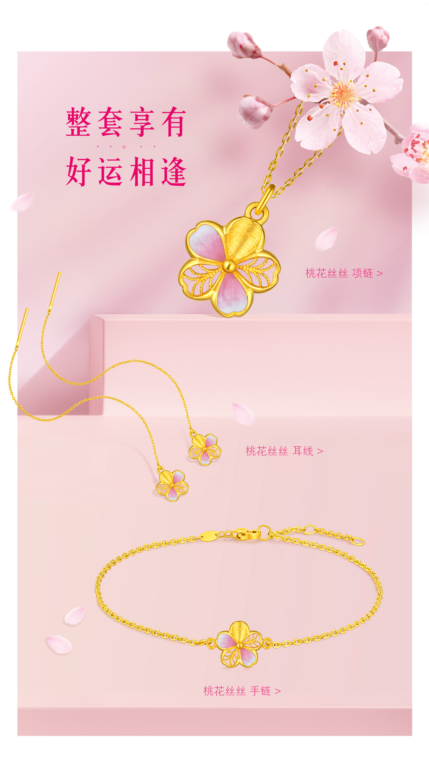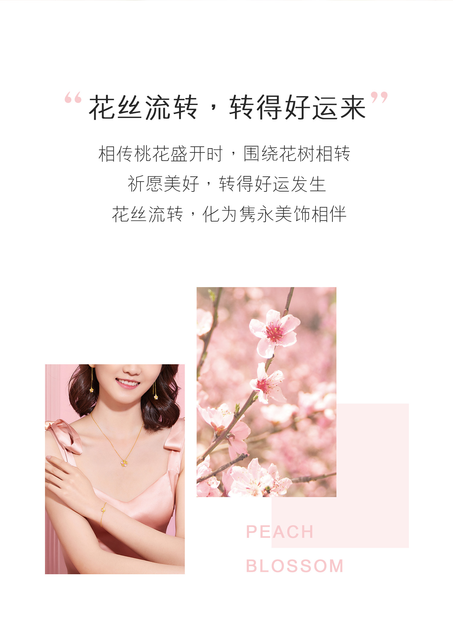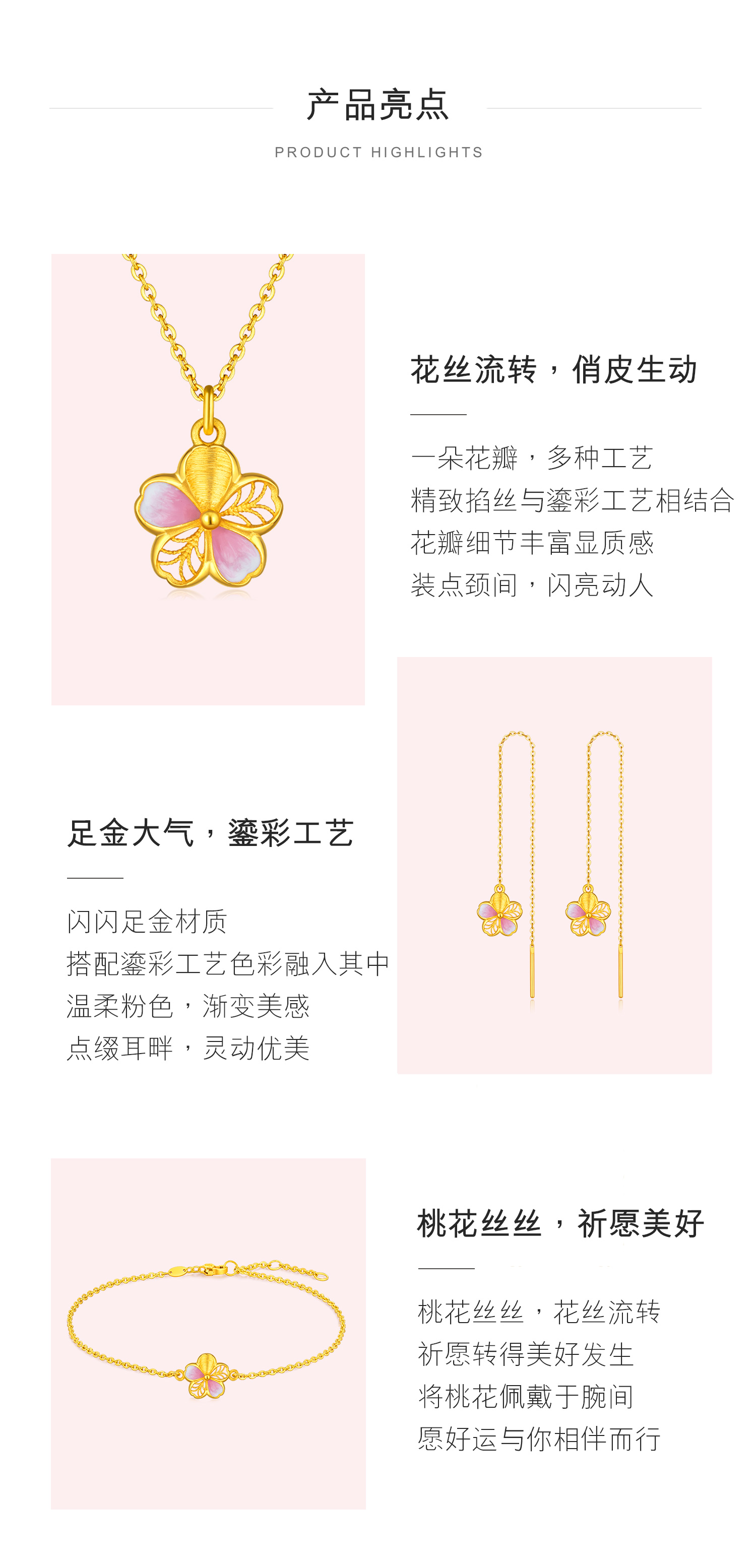 Lukfook Jewelry Peach Blossom Gold Bracelet for Women, Fine Gold with Extension Chain, Gilded Craftsmanship, Pricing Gdgtbb0022