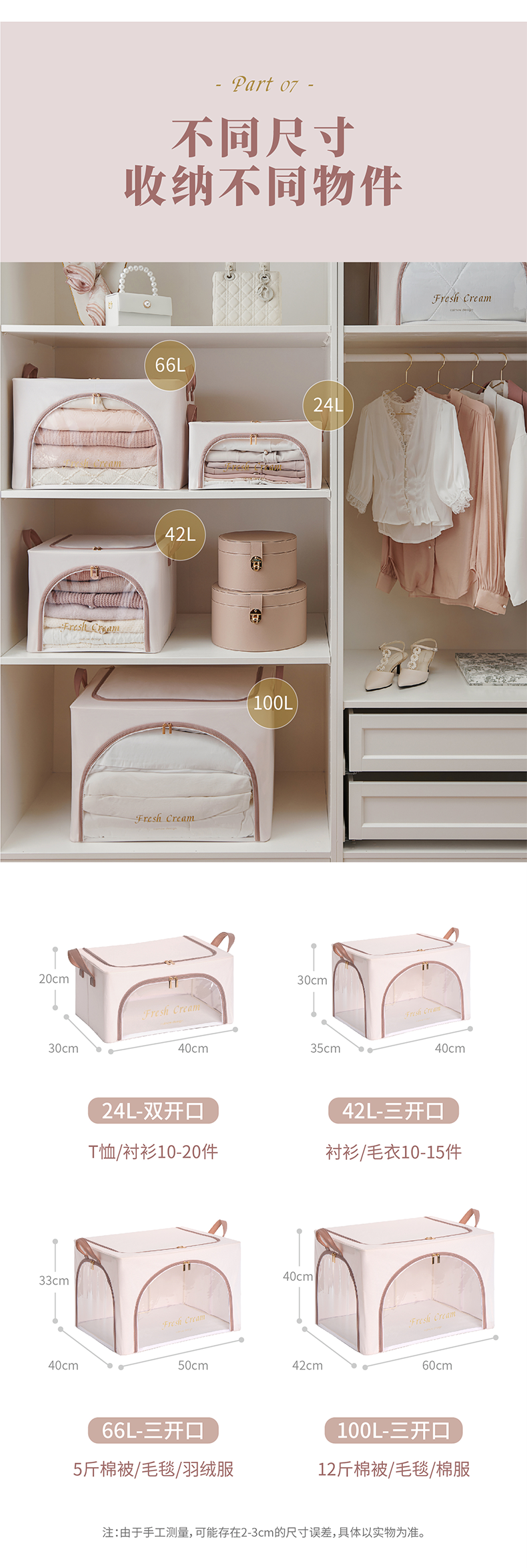 Specification24L[40x30x20cm],42L[40x35x30cm],66L[50x40x33cm],100L[60x42x40cm],42L three-pack 50% off on seasonal clothing/special offer,66L three pack, seasonal thin quilt/special offer 5% off,42L+66L+100L Seasonal Package/Special Offer 5% off