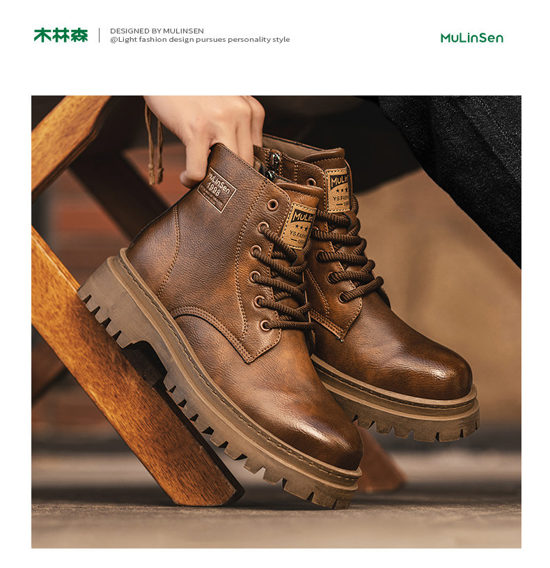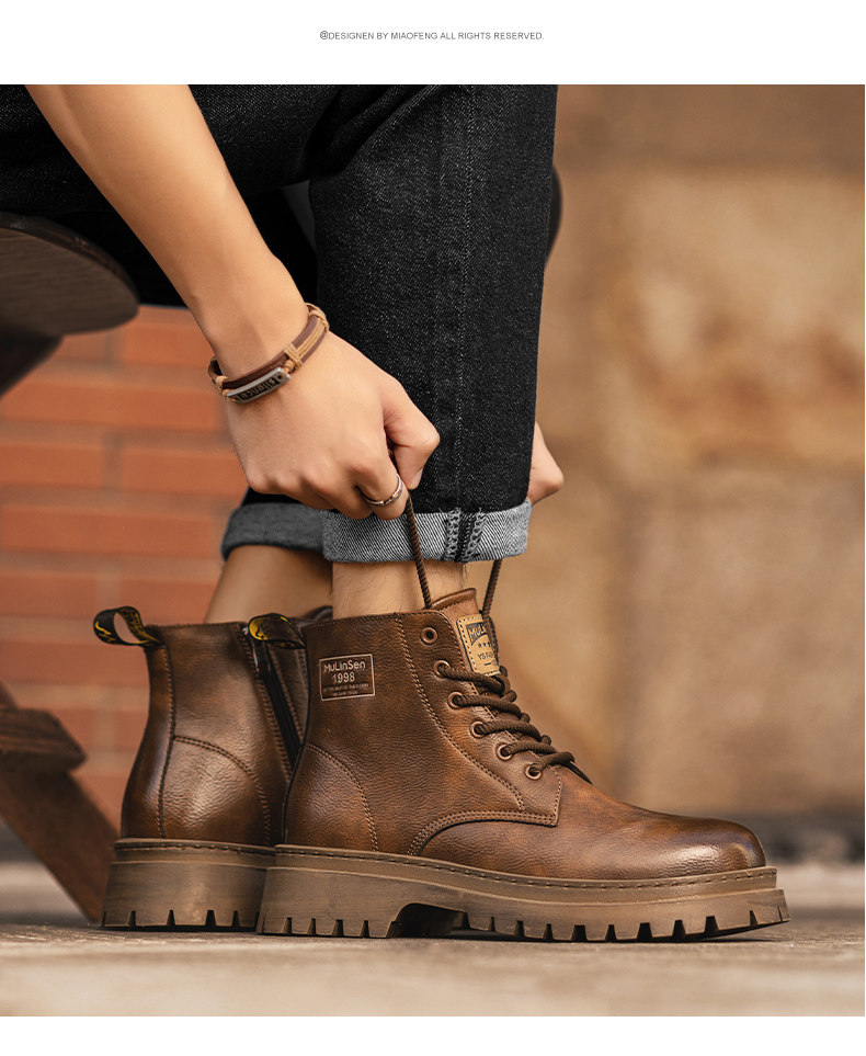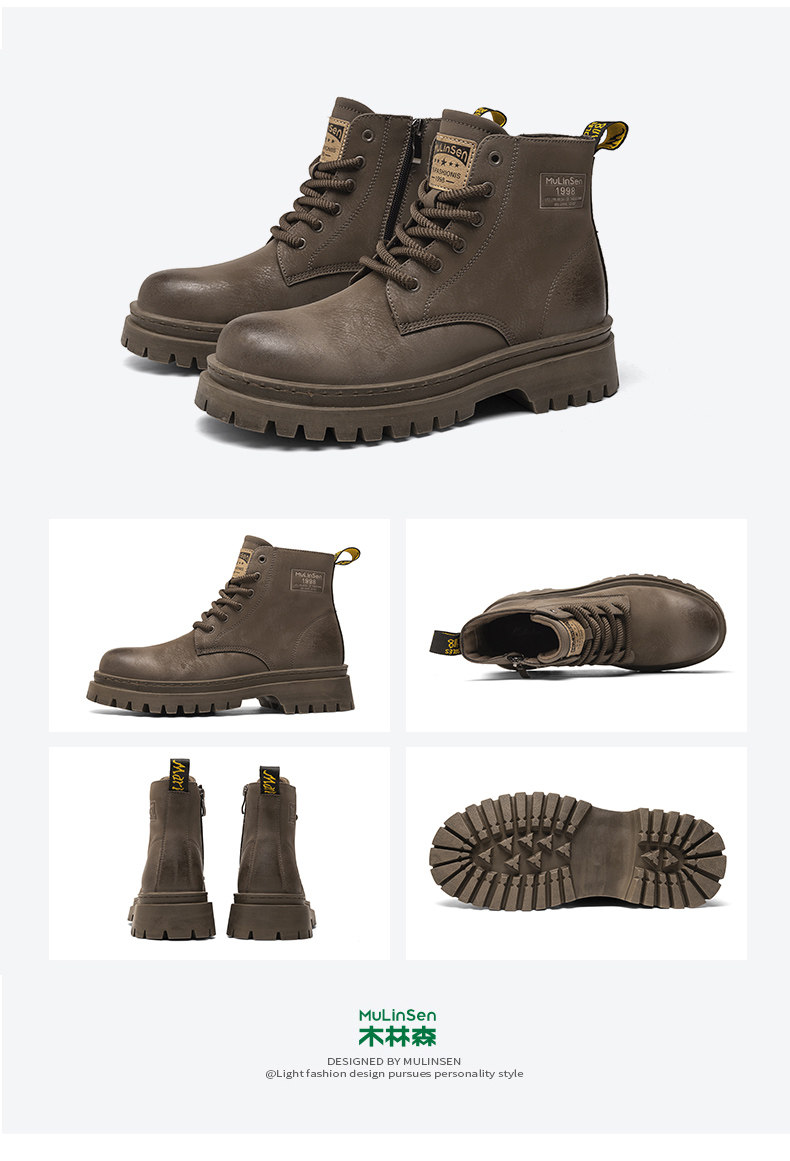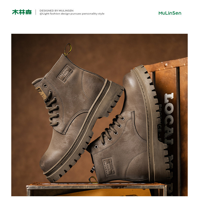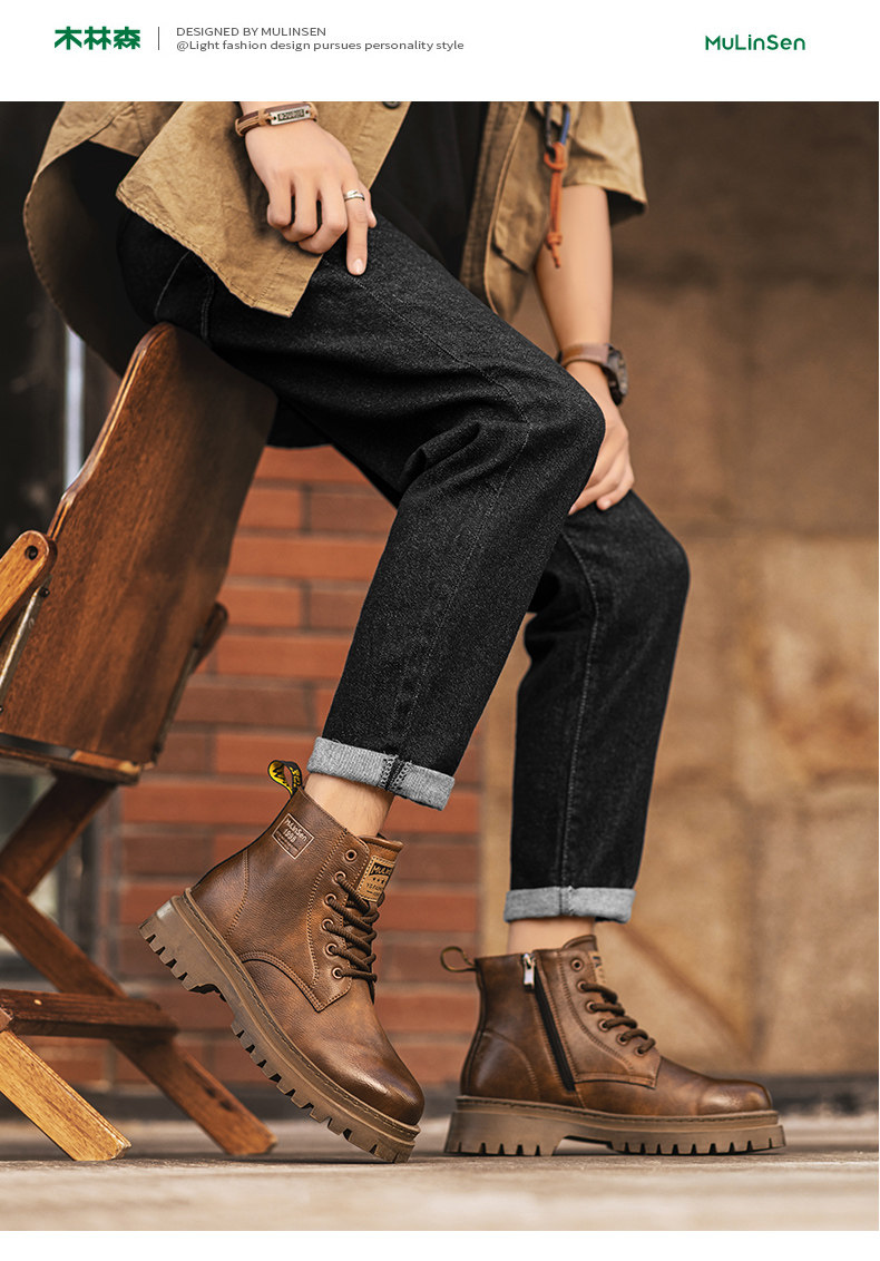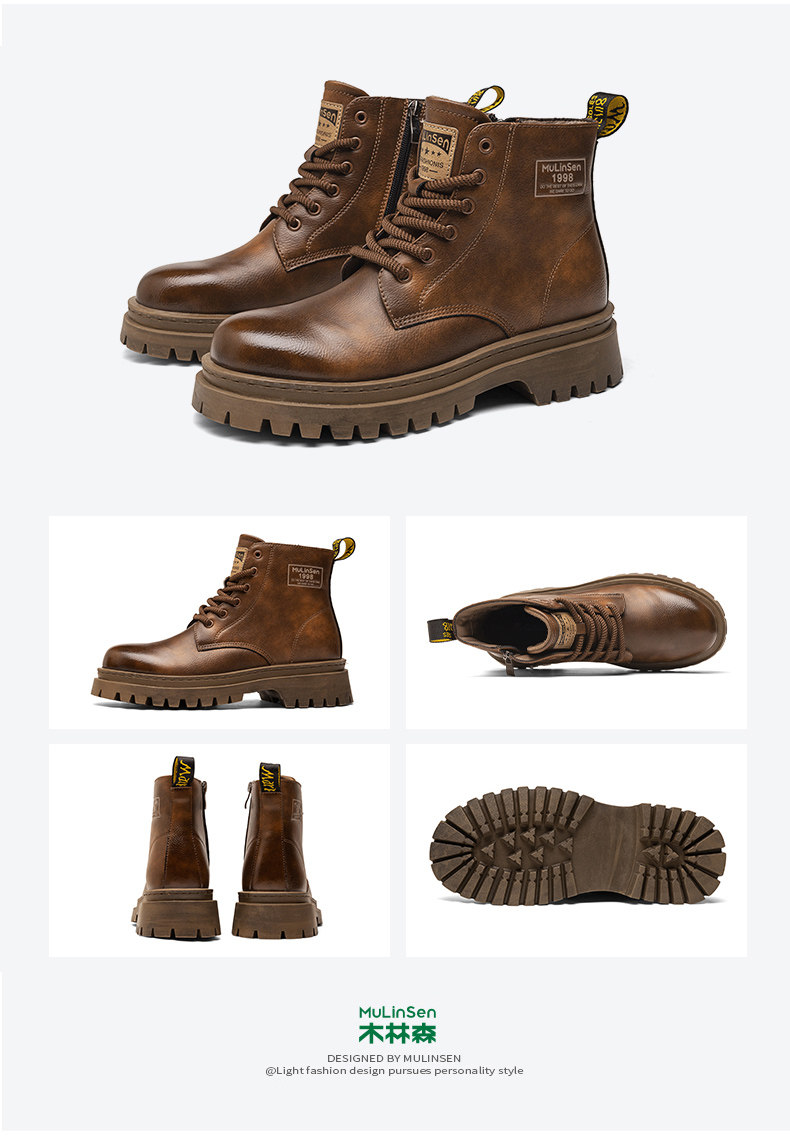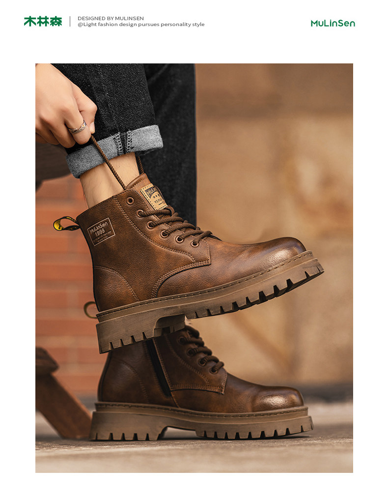Mulinsen Martin boots men's autumn and winter brown workwear American labor insurance mountaineering soft leather high-end motorcycle handsome men's shoes
