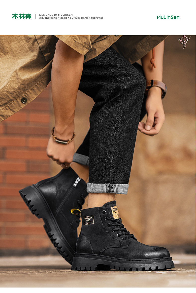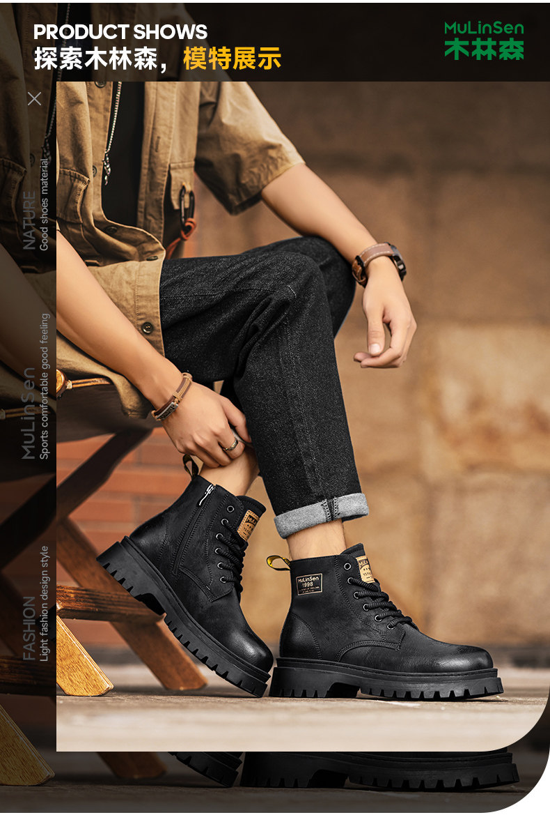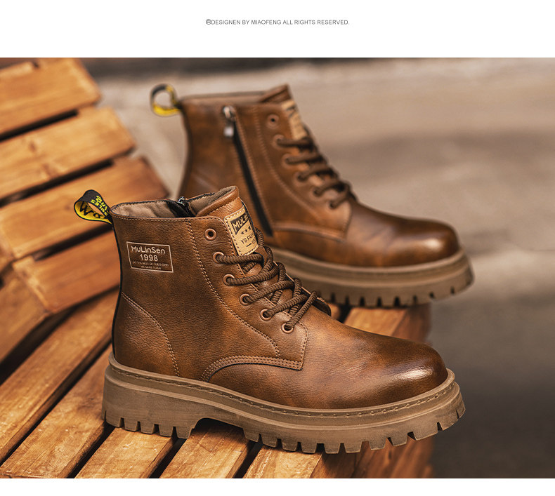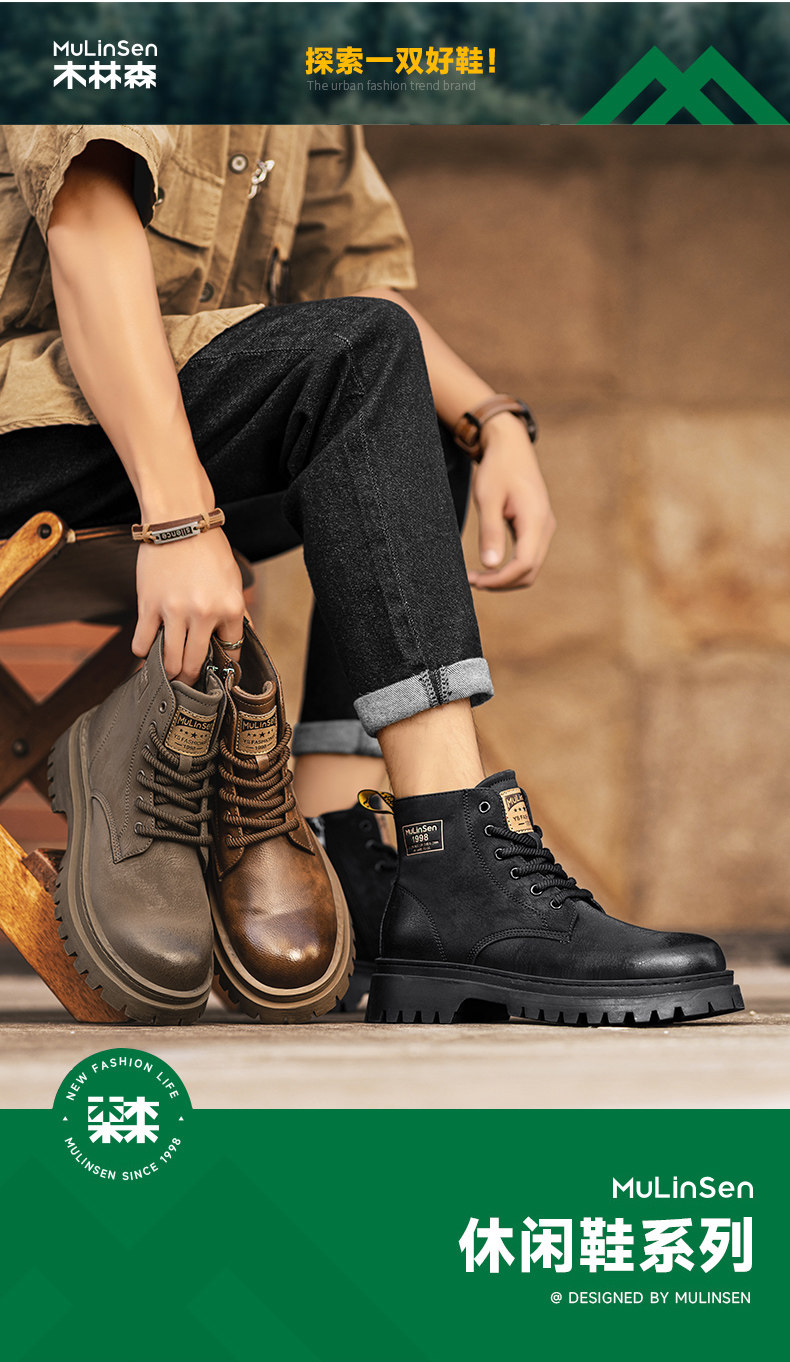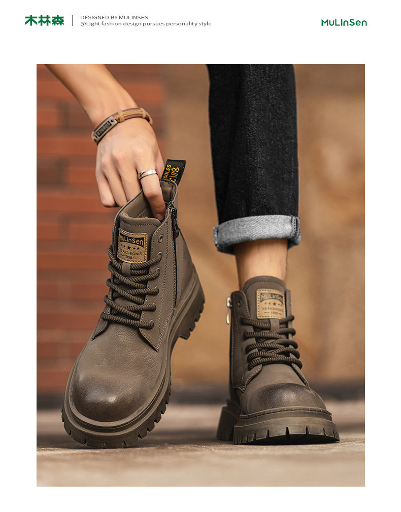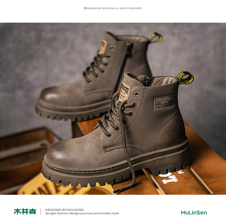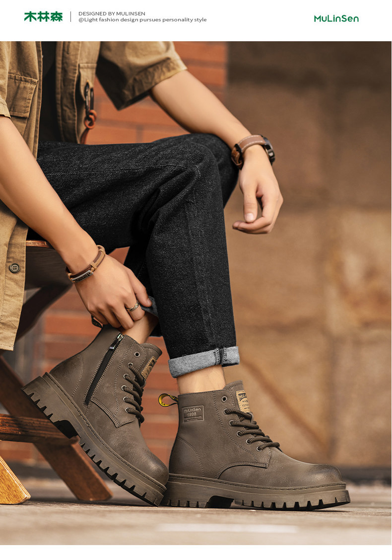 Mulinsen Martin boots men's autumn and winter brown workwear American labor insurance mountaineering soft leather high-end motorcycle handsome men's shoes