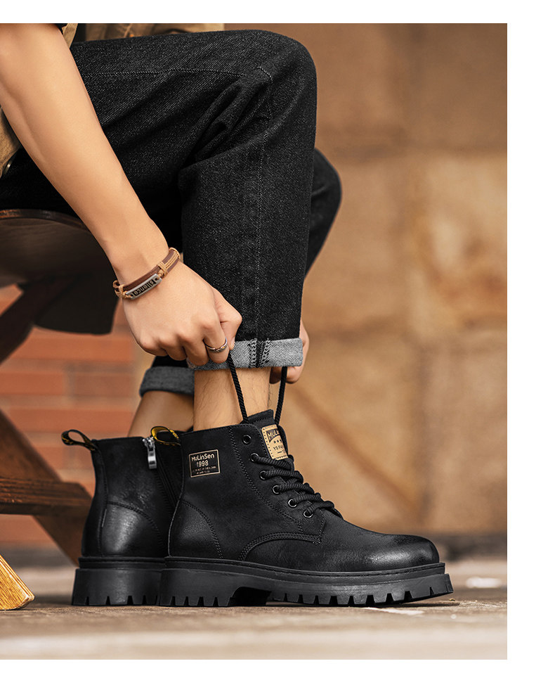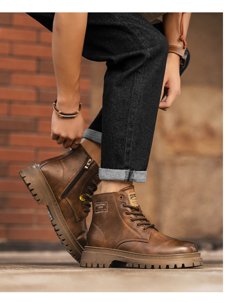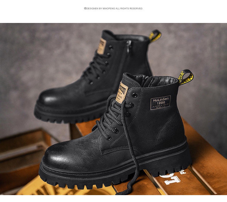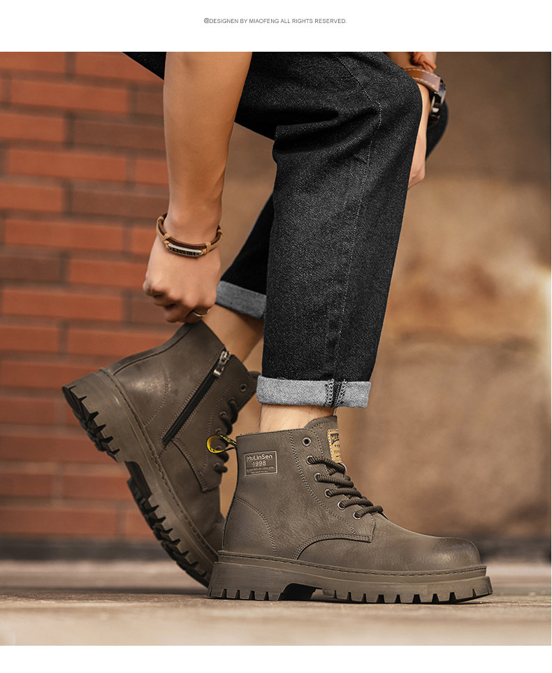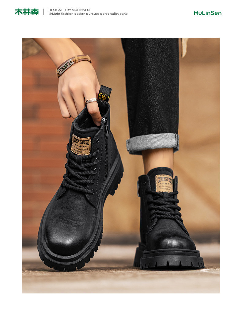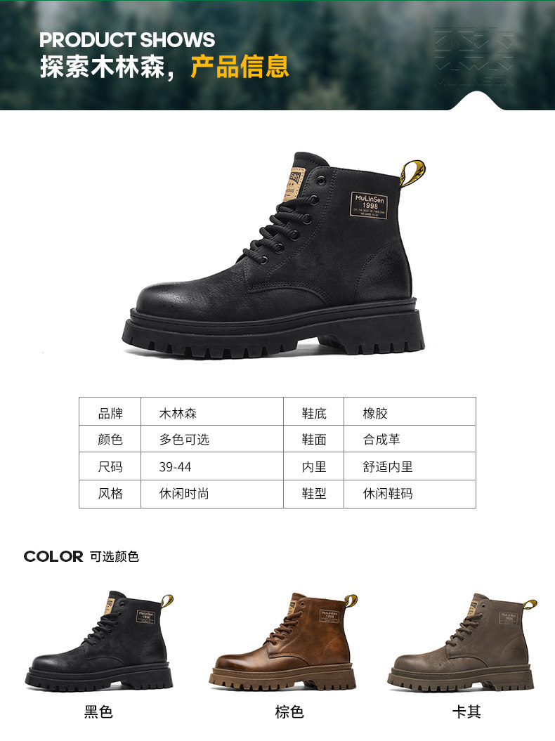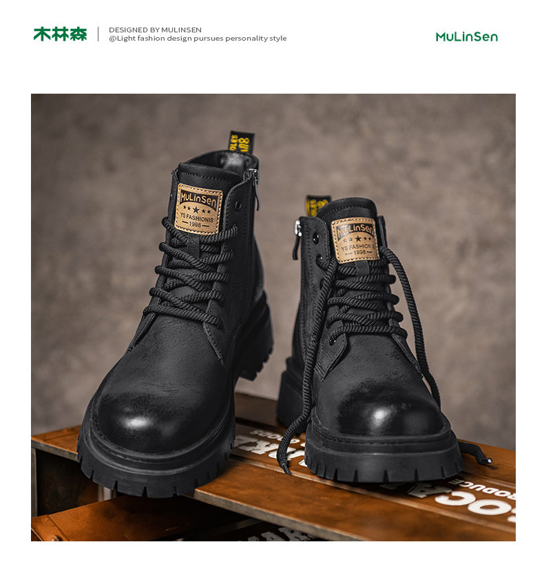 Mulinsen Martin boots men's autumn and winter brown workwear American labor insurance mountaineering soft leather high-end motorcycle handsome men's shoes