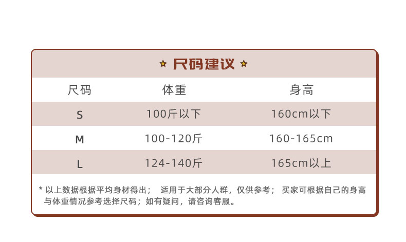 China (cm)165 / 88-90170 / 96-98175 / 108-110180 / 118-122185 / 126-130