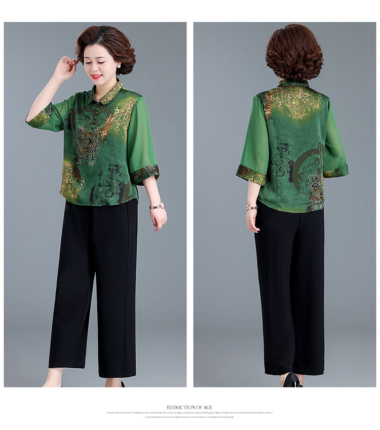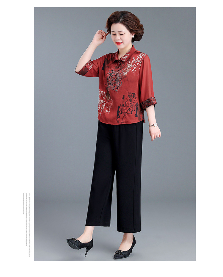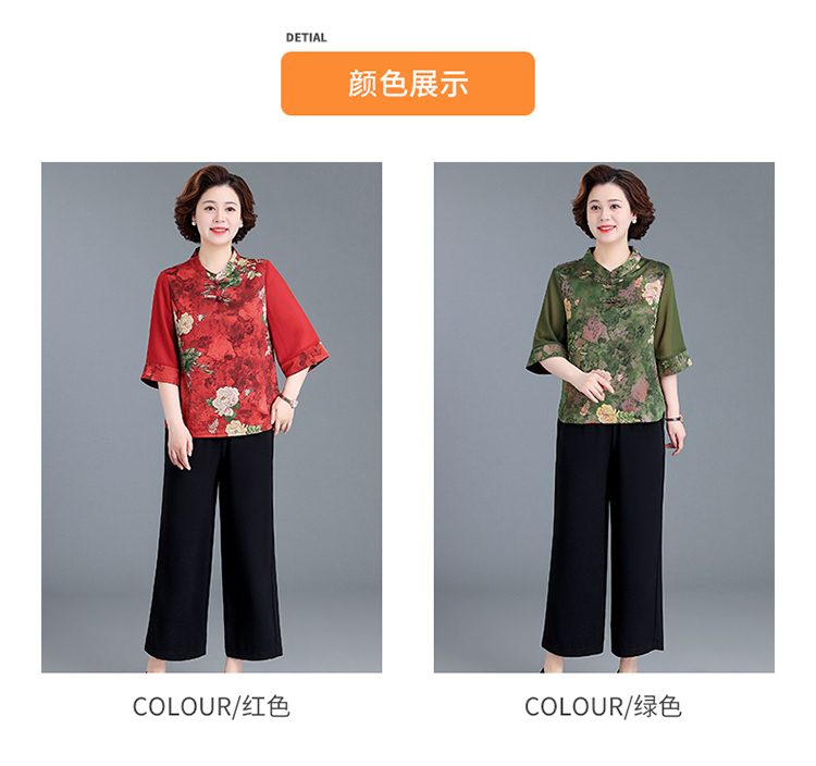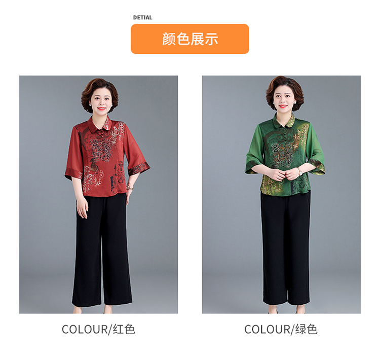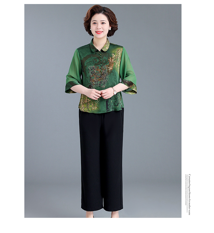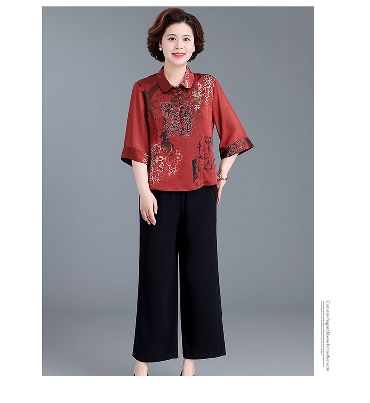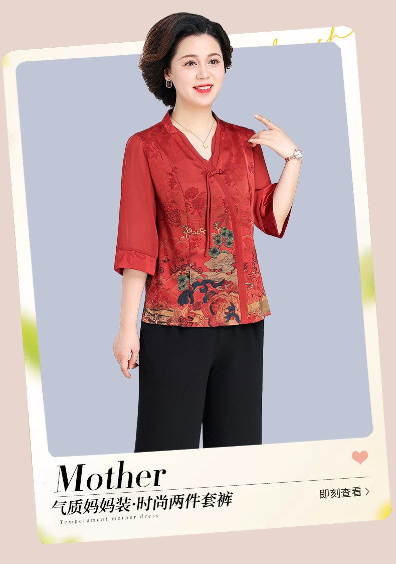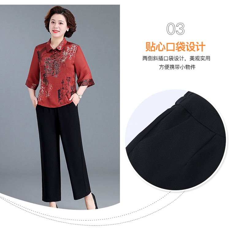 Middle-Aged Mother's Summer Clothing, Three-Quarter Sleeve Top, Stylish Grandma Outfit, Spring and Autumn Plus Size Middle-Aged and Elderly Women's Two-Piece Suit
