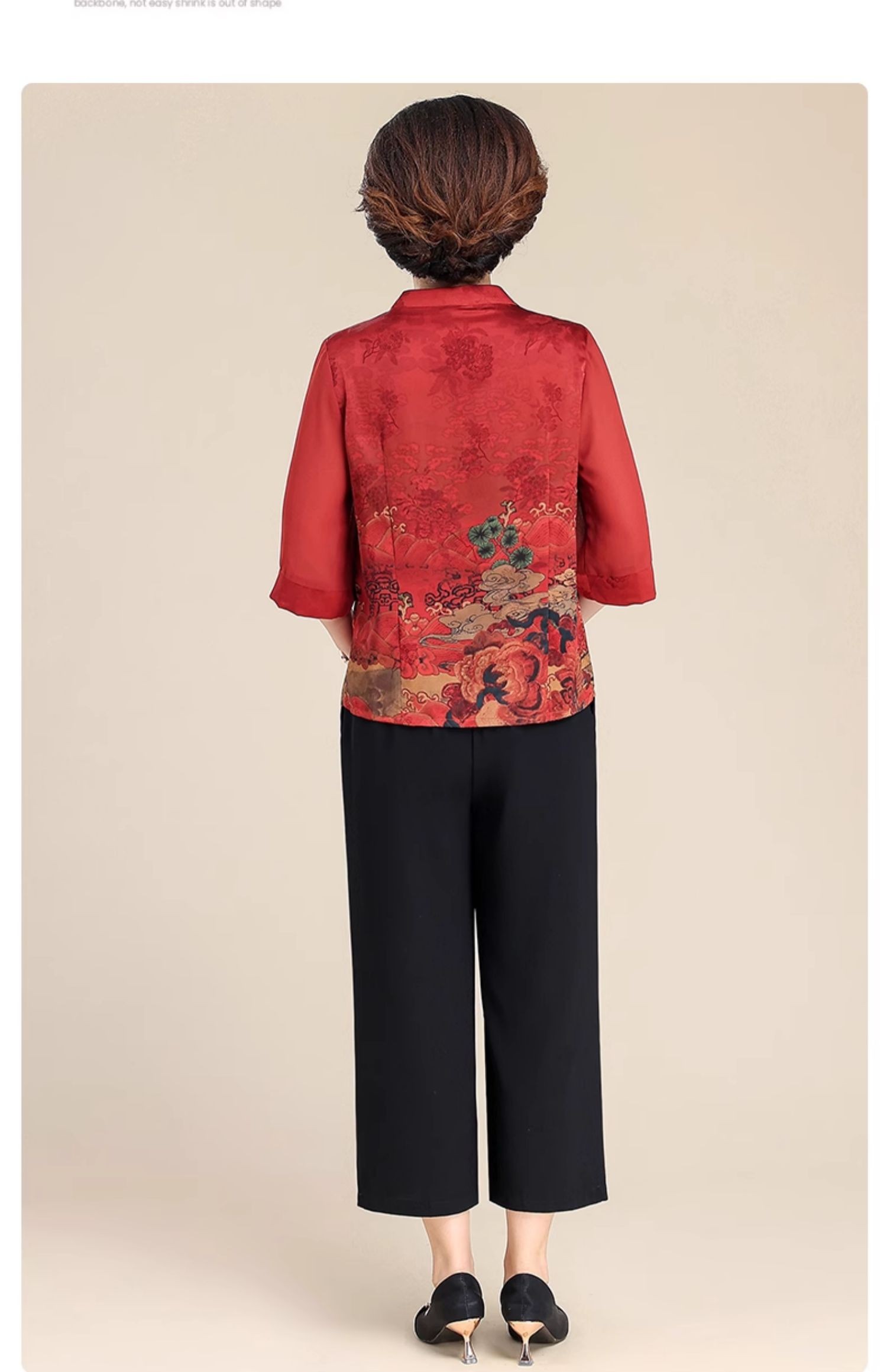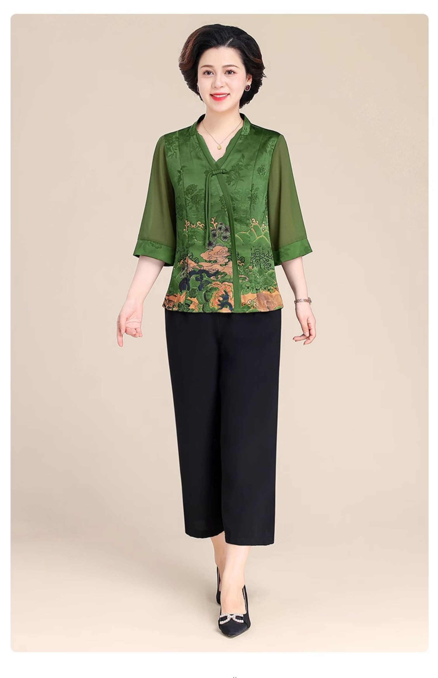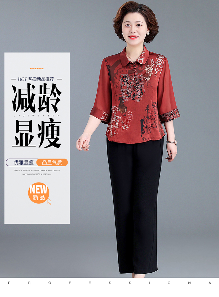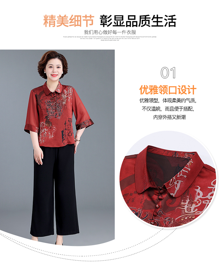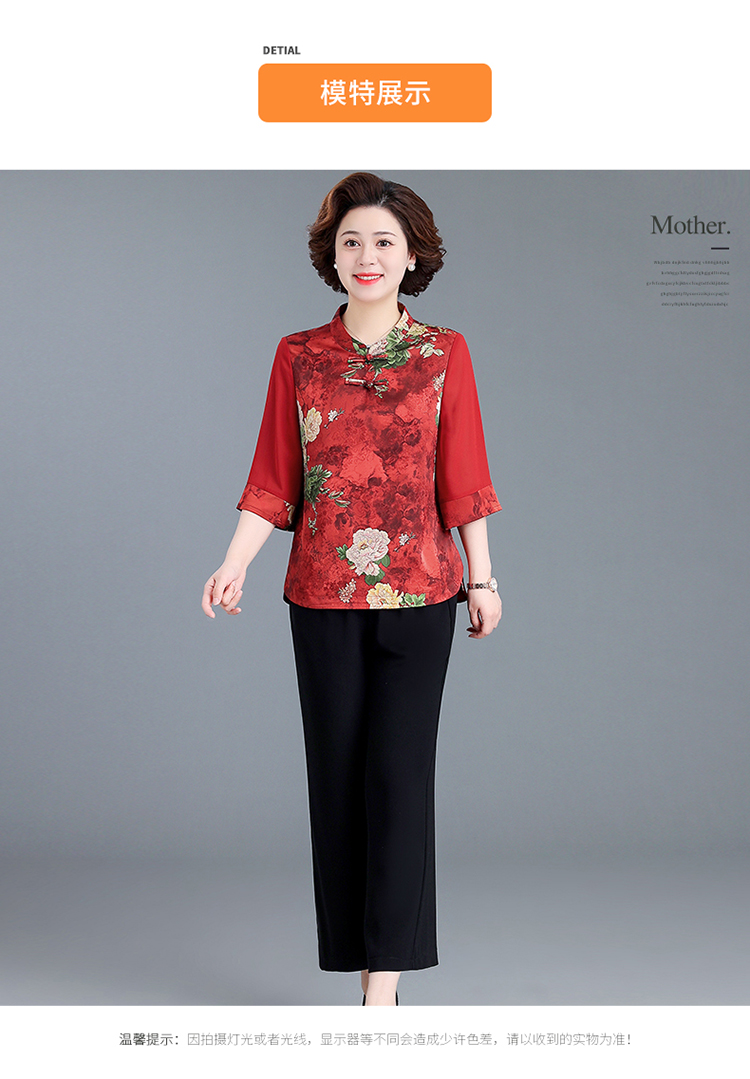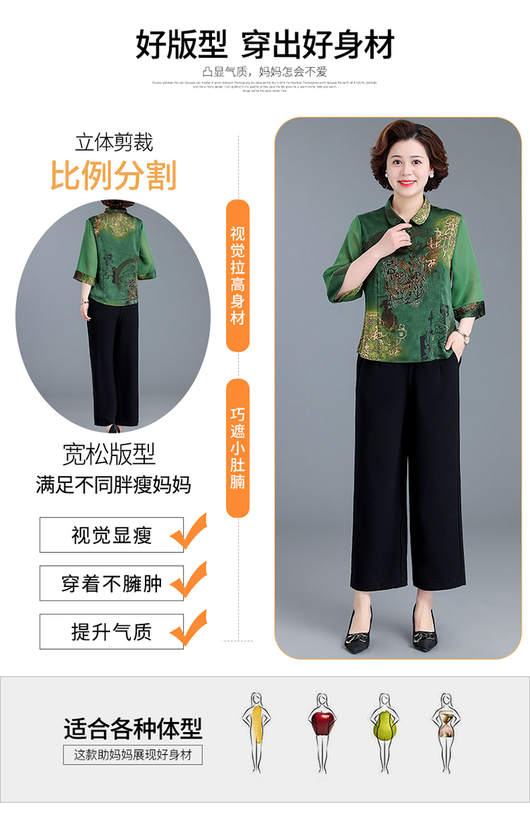 Middle-Aged Mother's Summer Clothing, Three-Quarter Sleeve Top, Stylish Grandma Outfit, Spring and Autumn Plus Size Middle-Aged and Elderly Women's Two-Piece Suit