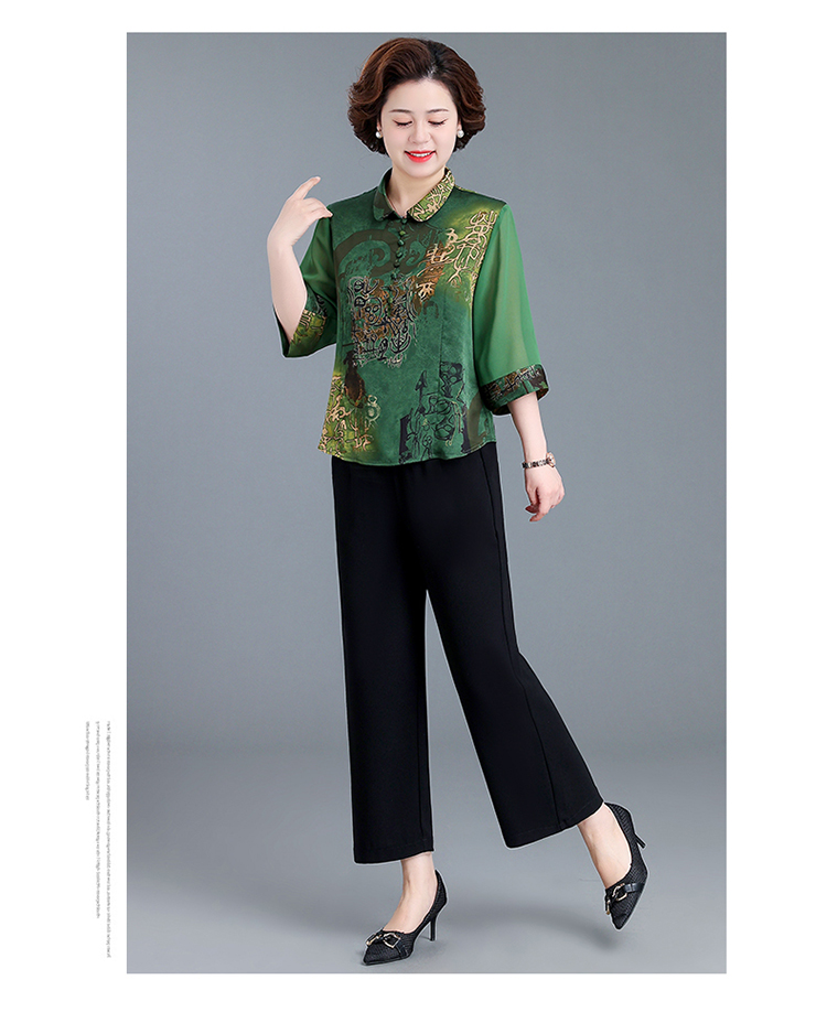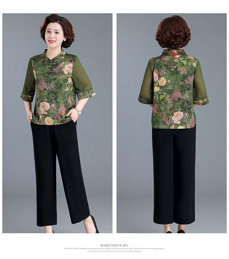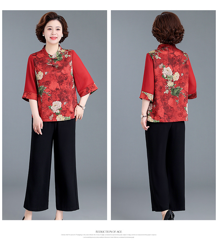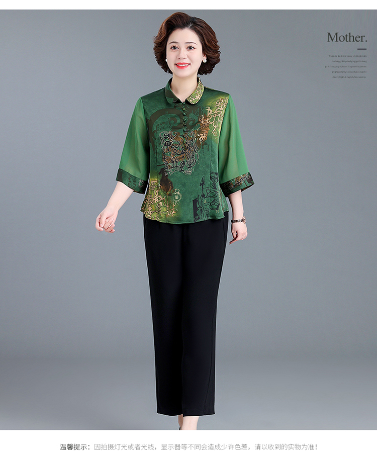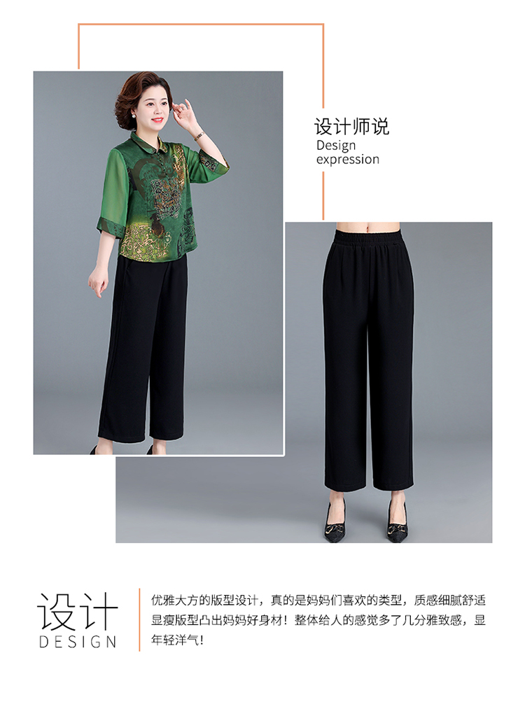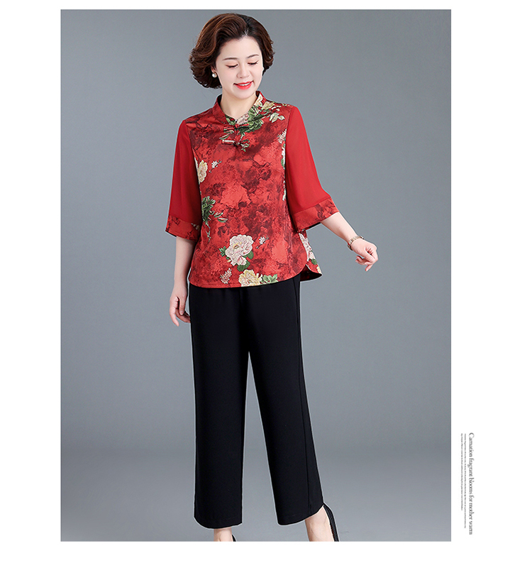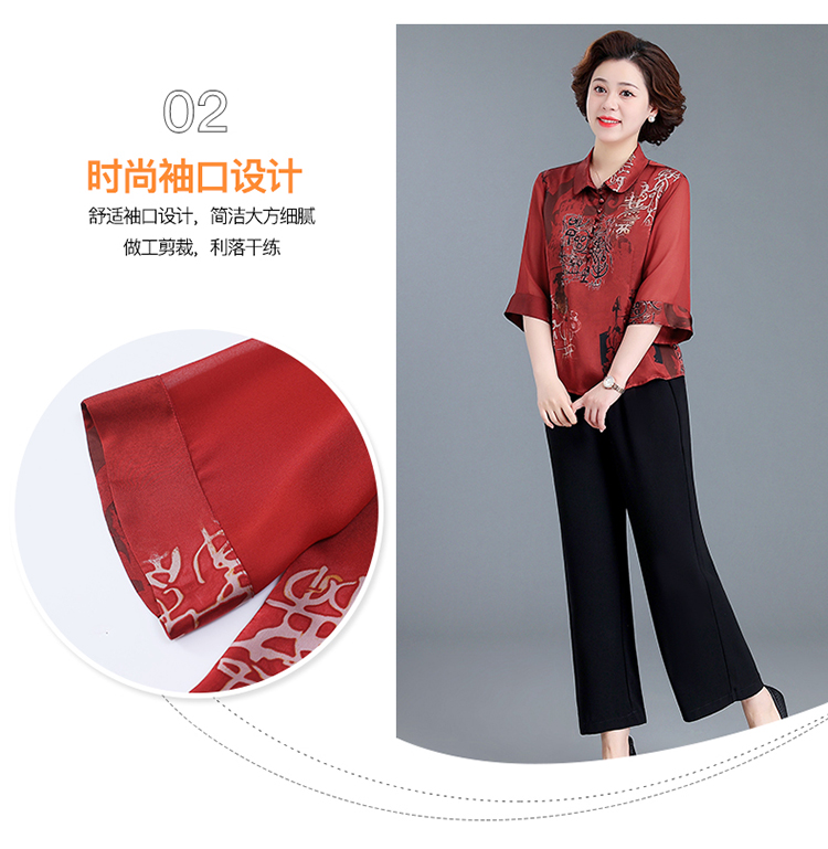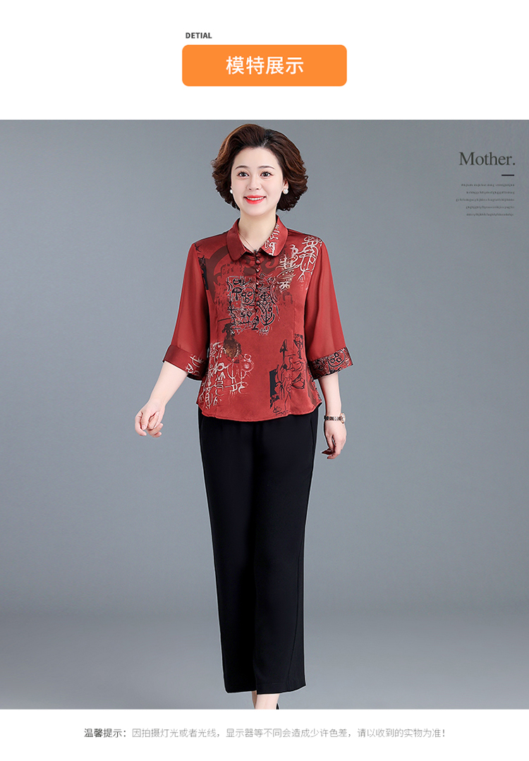Middle-Aged Mother's Summer Clothing, Three-Quarter Sleeve Top, Stylish Grandma Outfit, Spring and Autumn Plus Size Middle-Aged and Elderly Women's Two-Piece Suit