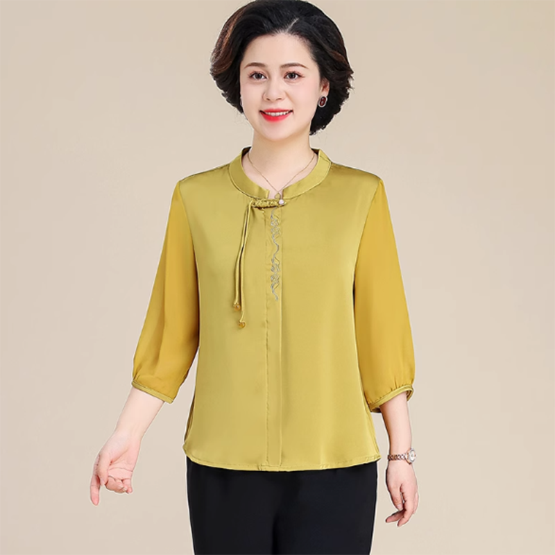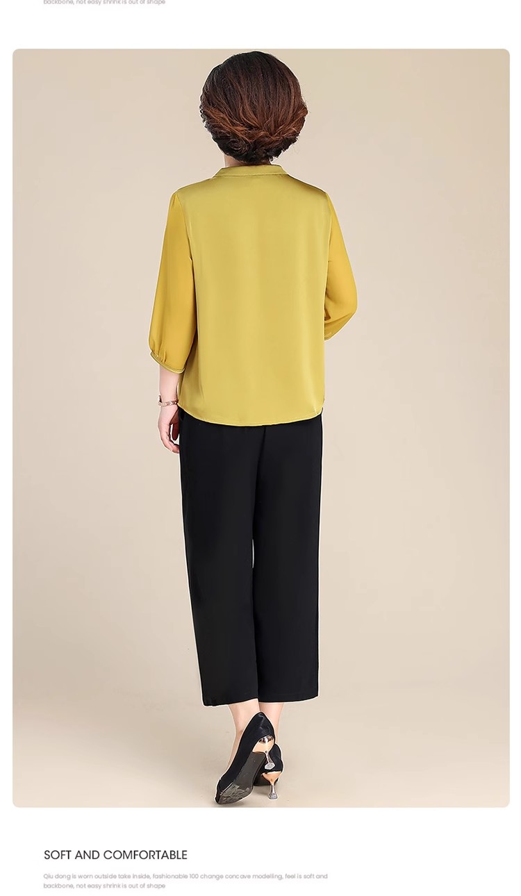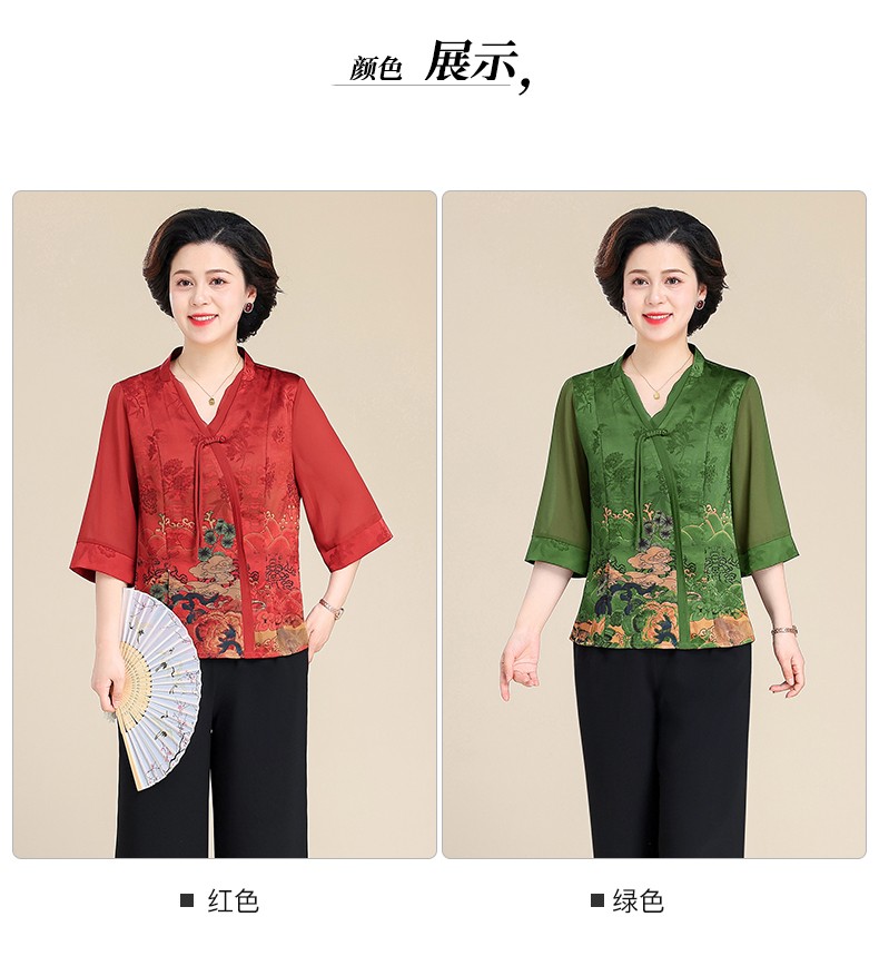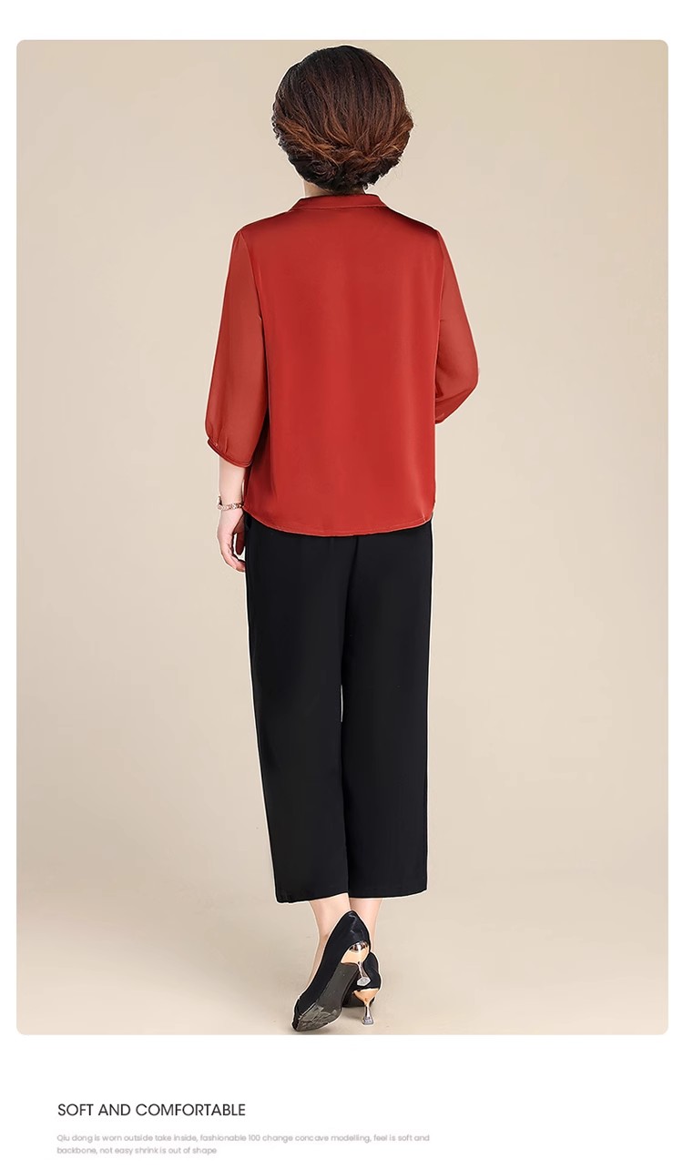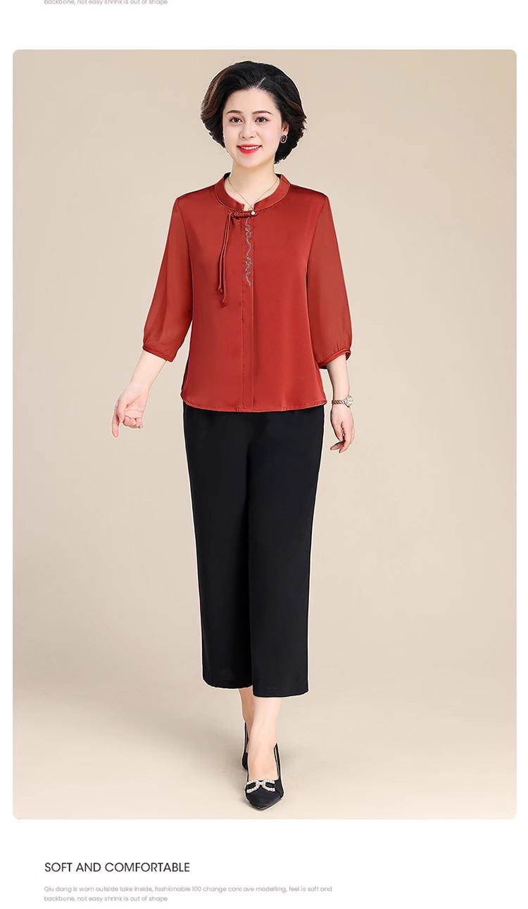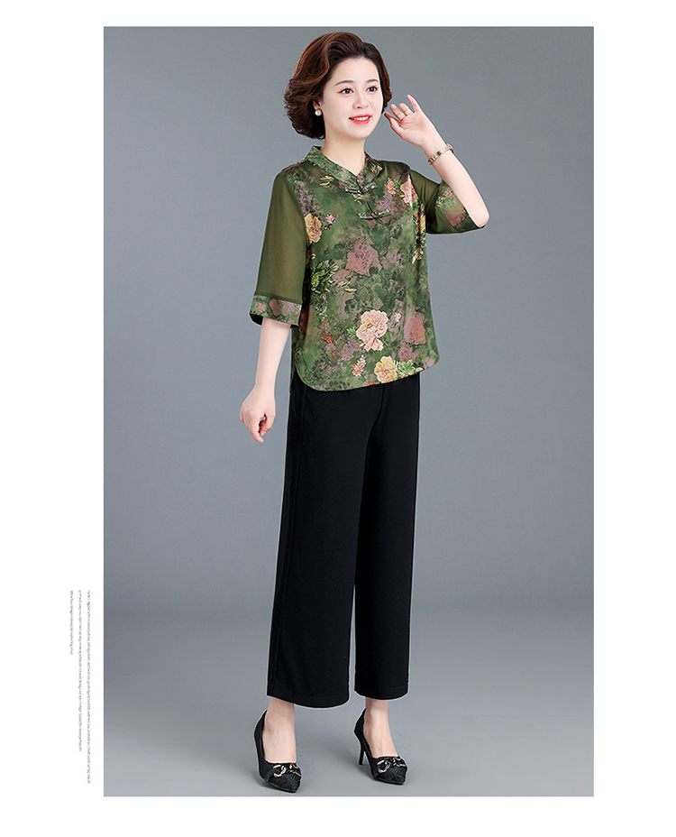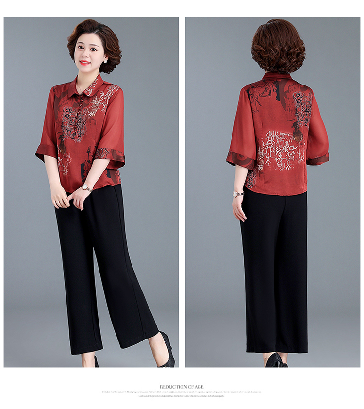 Middle-Aged Mother's Summer Clothing, Three-Quarter Sleeve Top, Stylish Grandma Outfit, Spring and Autumn Plus Size Middle-Aged and Elderly Women's Two-Piece Suit