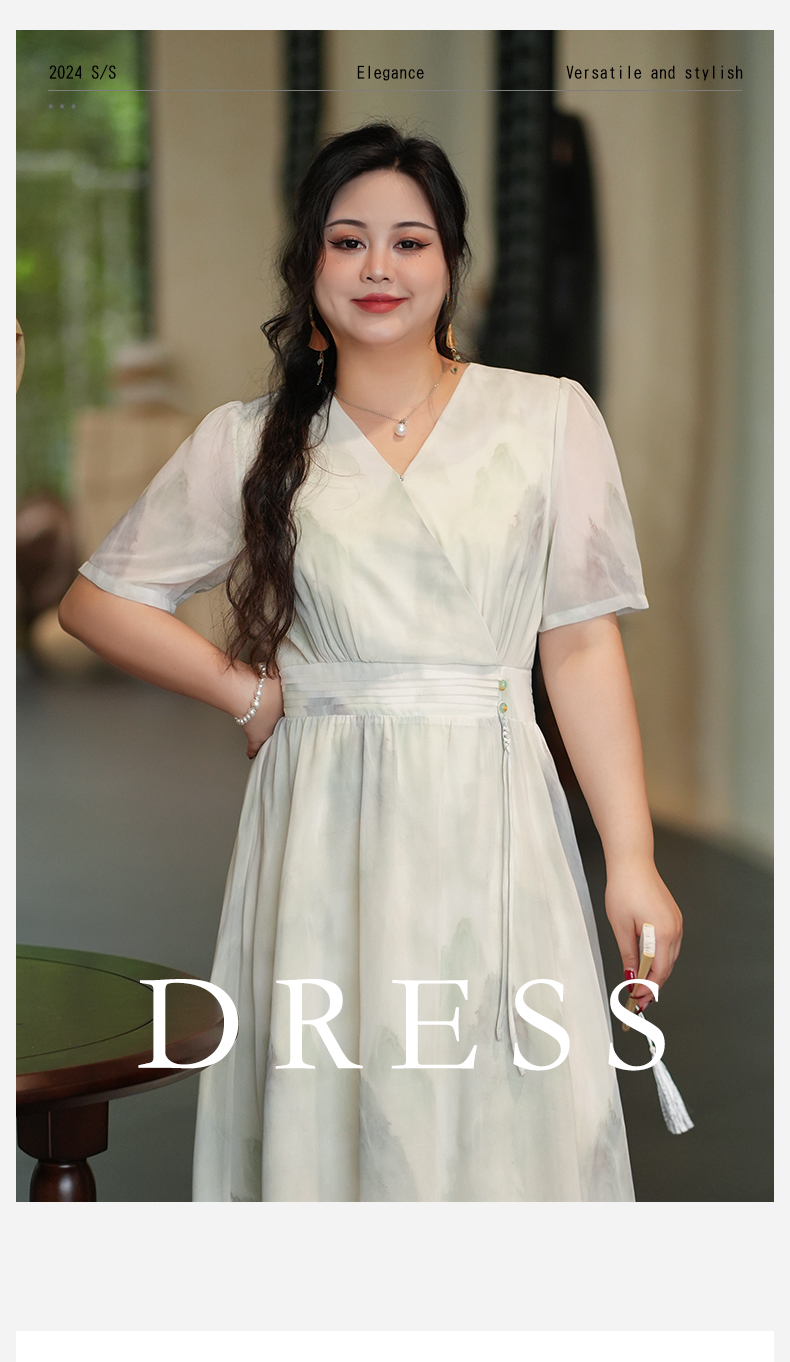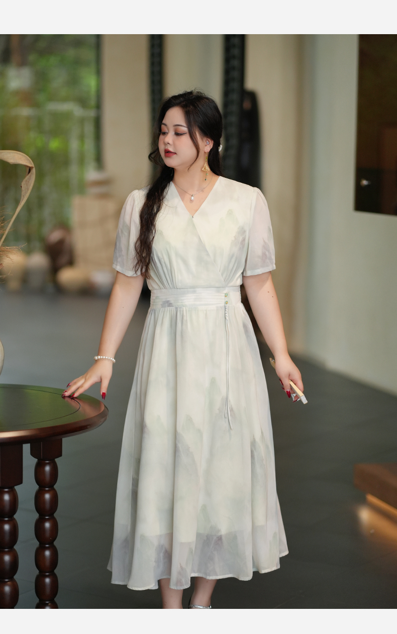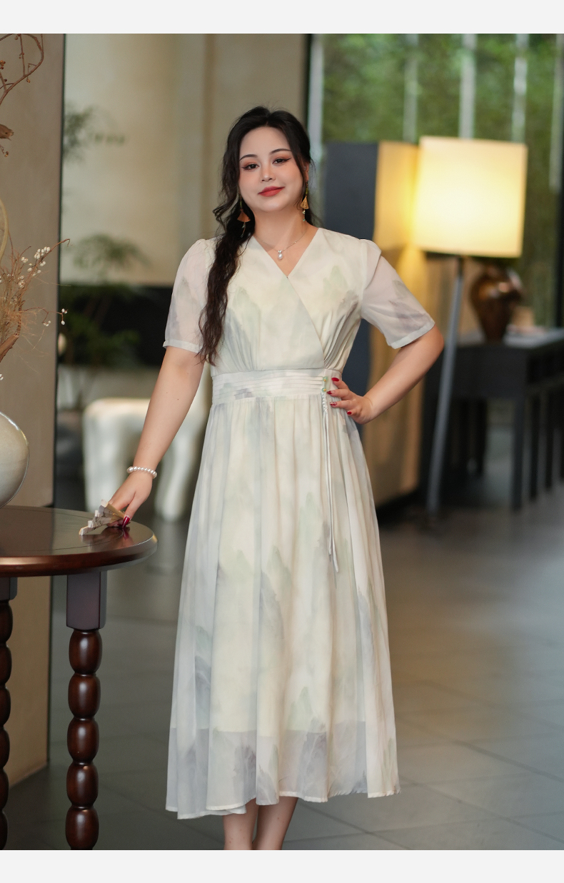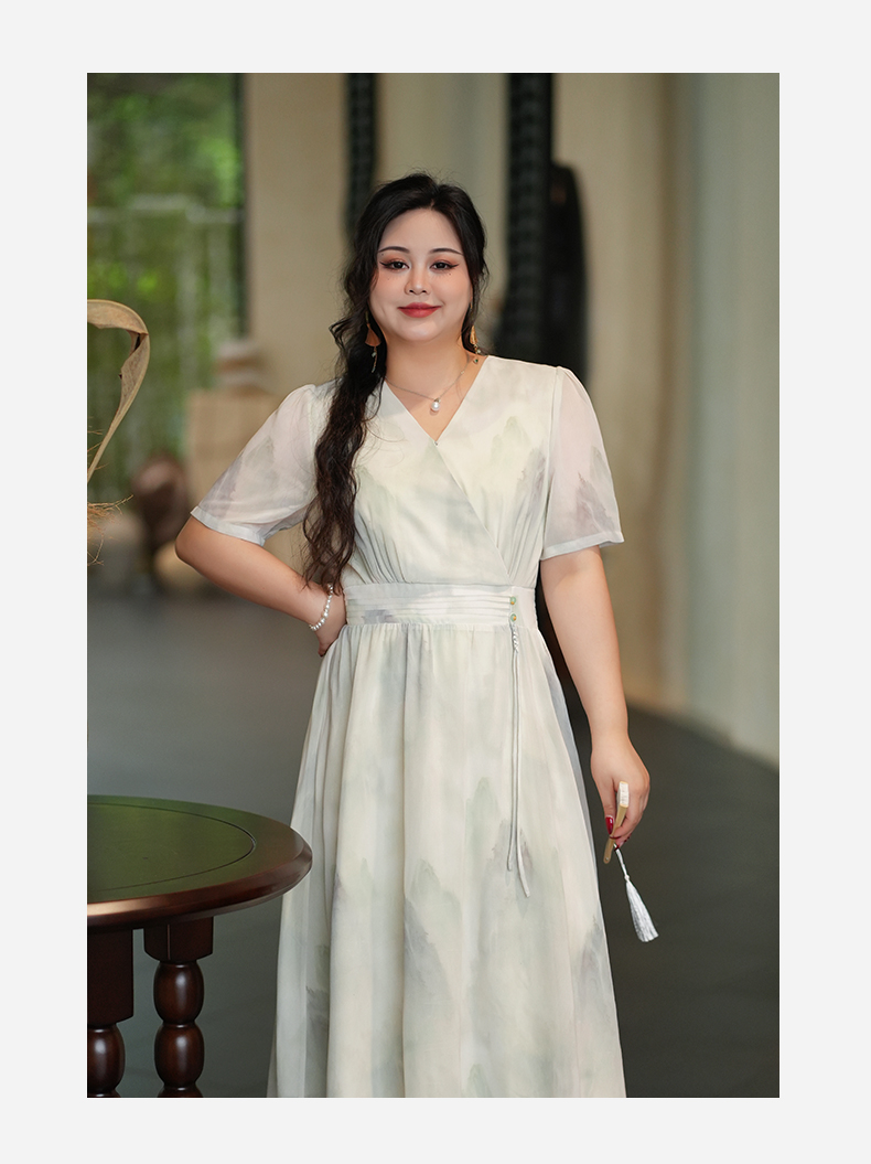 Mrs. Dave's Plus-Size Women's Clothing, New Chinese-Style Dress for Summer 2025, New Model for Chubby Women, Tummy-Covering, Chinese-Style Ink Painting Dress