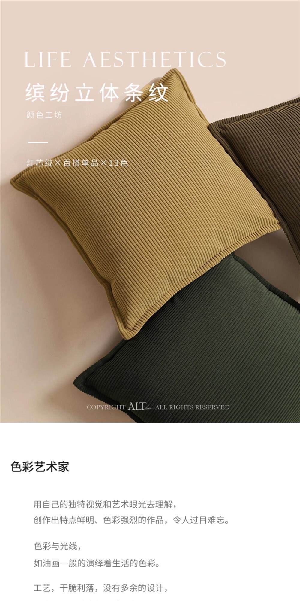 Sofa pillow, living room, light luxury, high-end bedside cushion, back cushion, corduroy bed cushion cover, no core