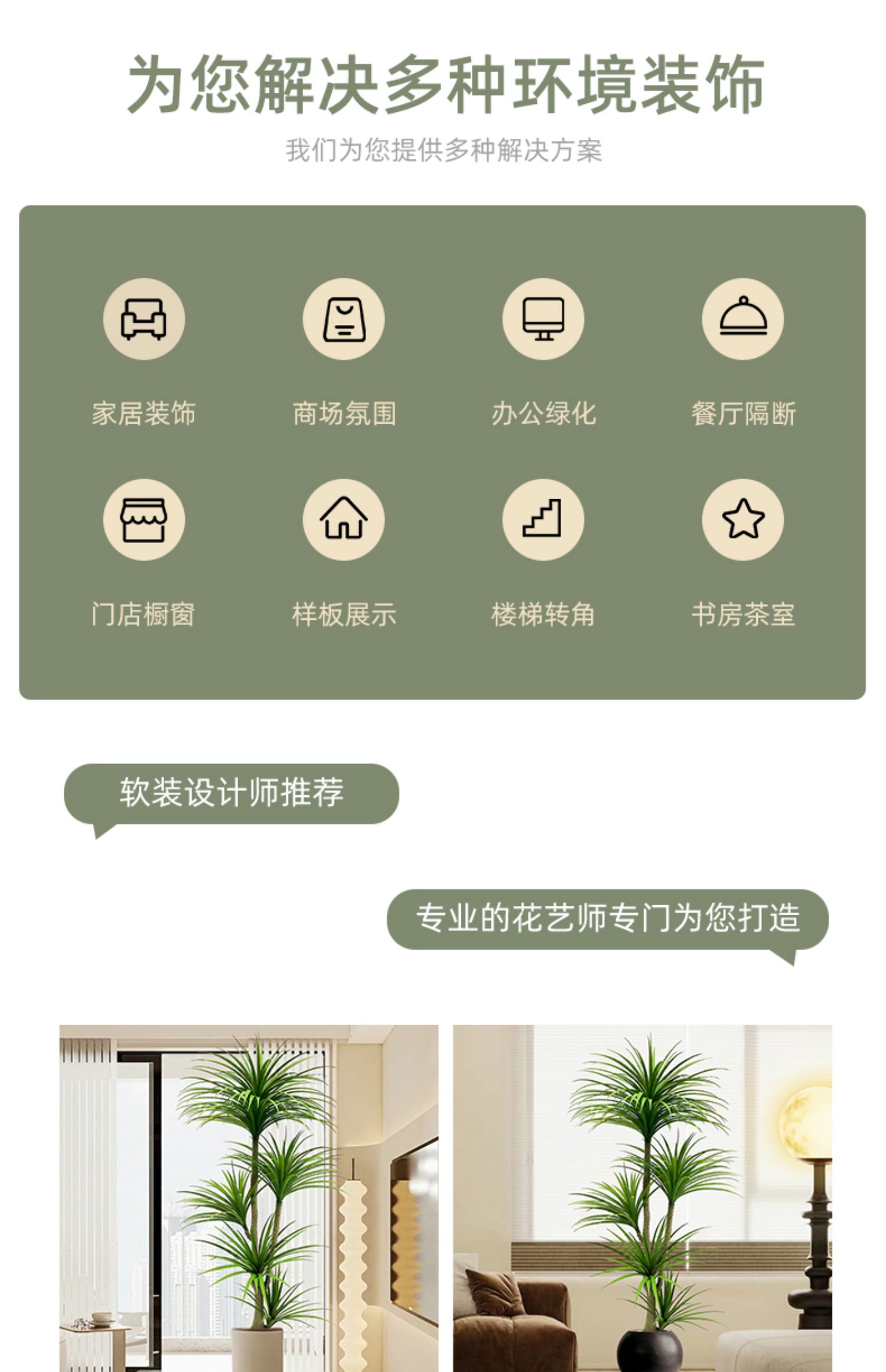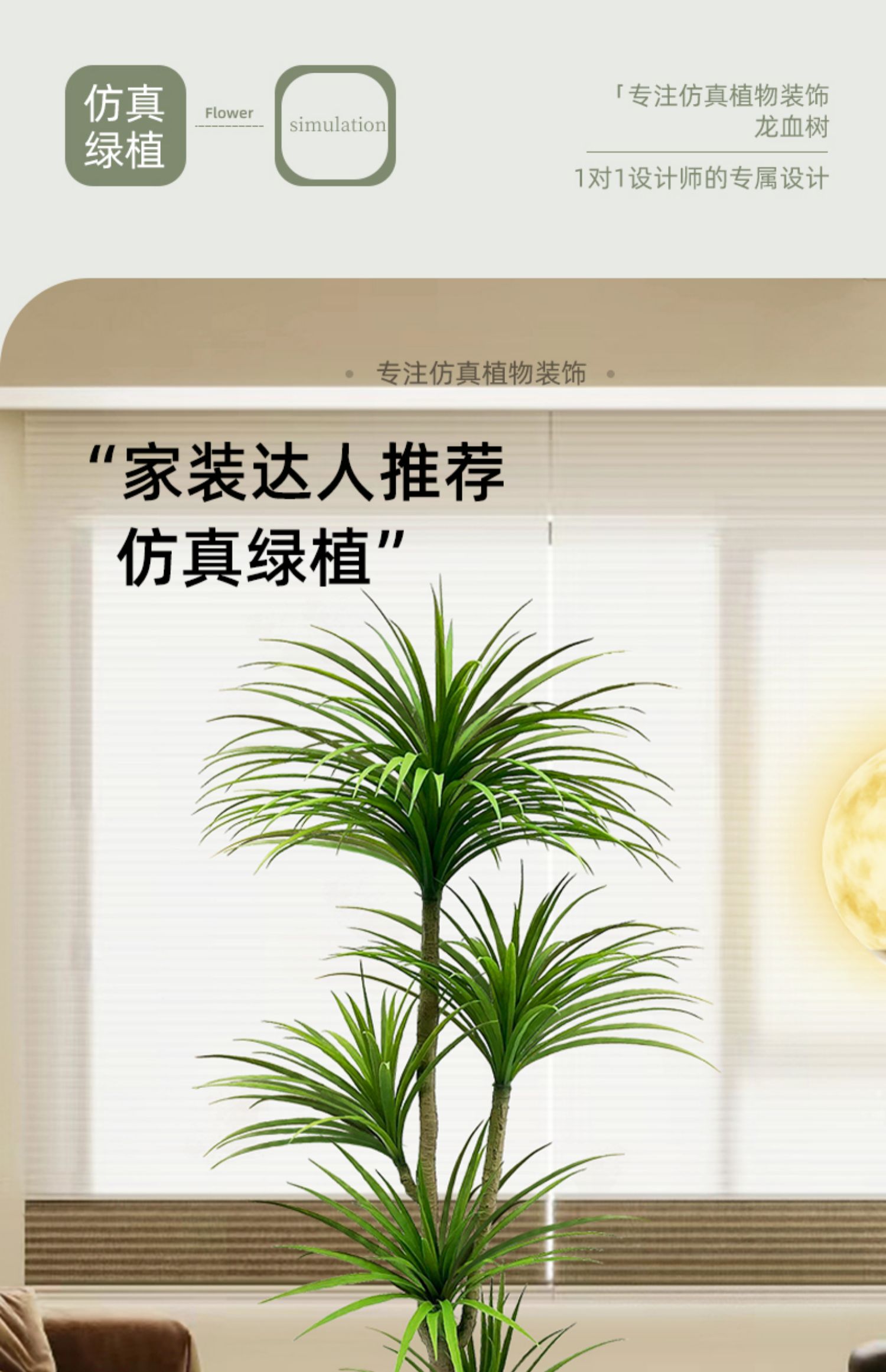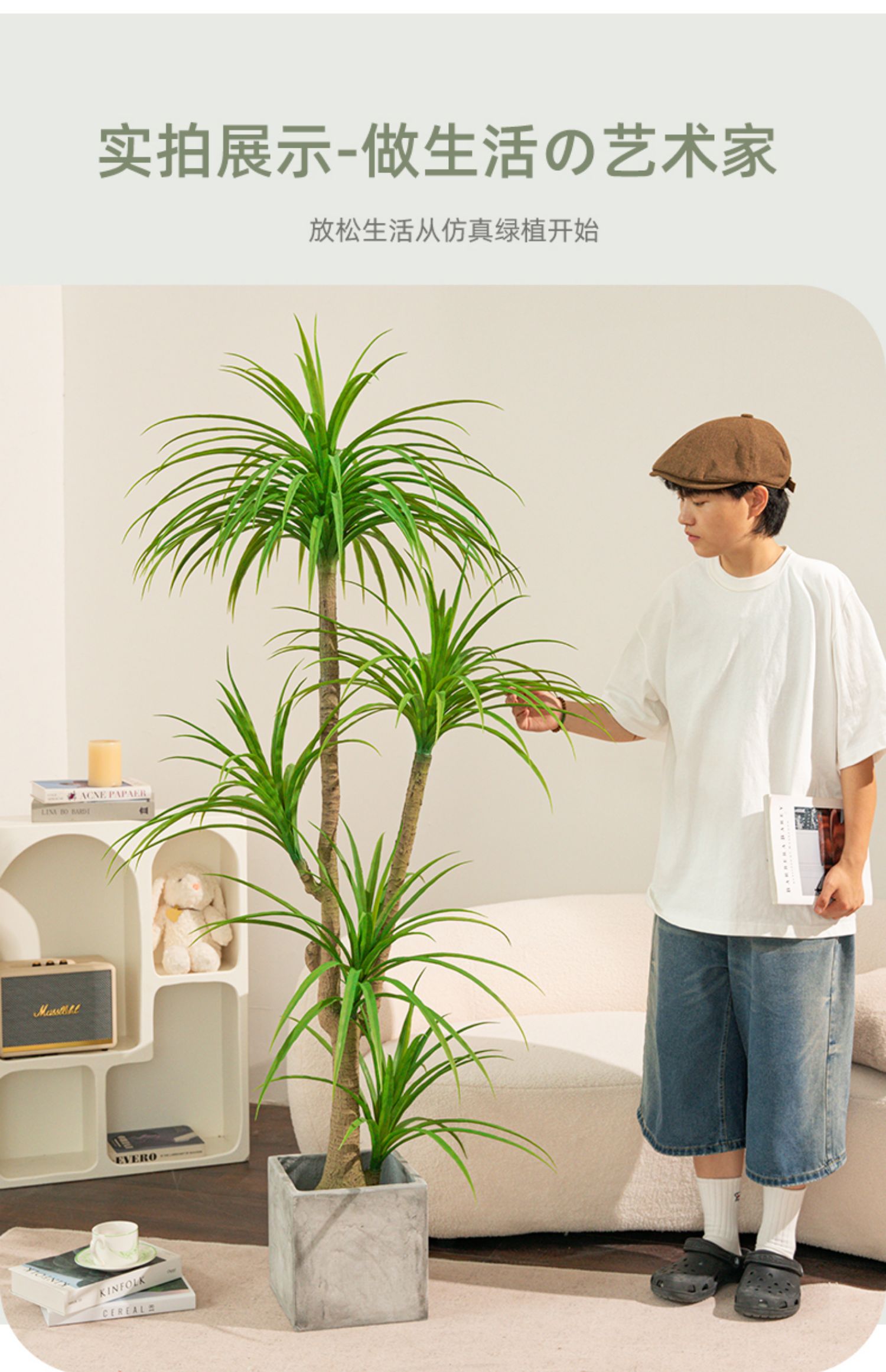 High-End Luxury Artificial Green Plant, Dragon Blood Tree, Indoor Living Room Large Artificial Plant Potted Floor-Standing Decoration