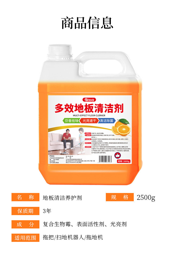 Floor cleaner, tile wood floor mopping special cleaning liquid, household fragrance-killing powerful decontamination and bacteria cleaning agent