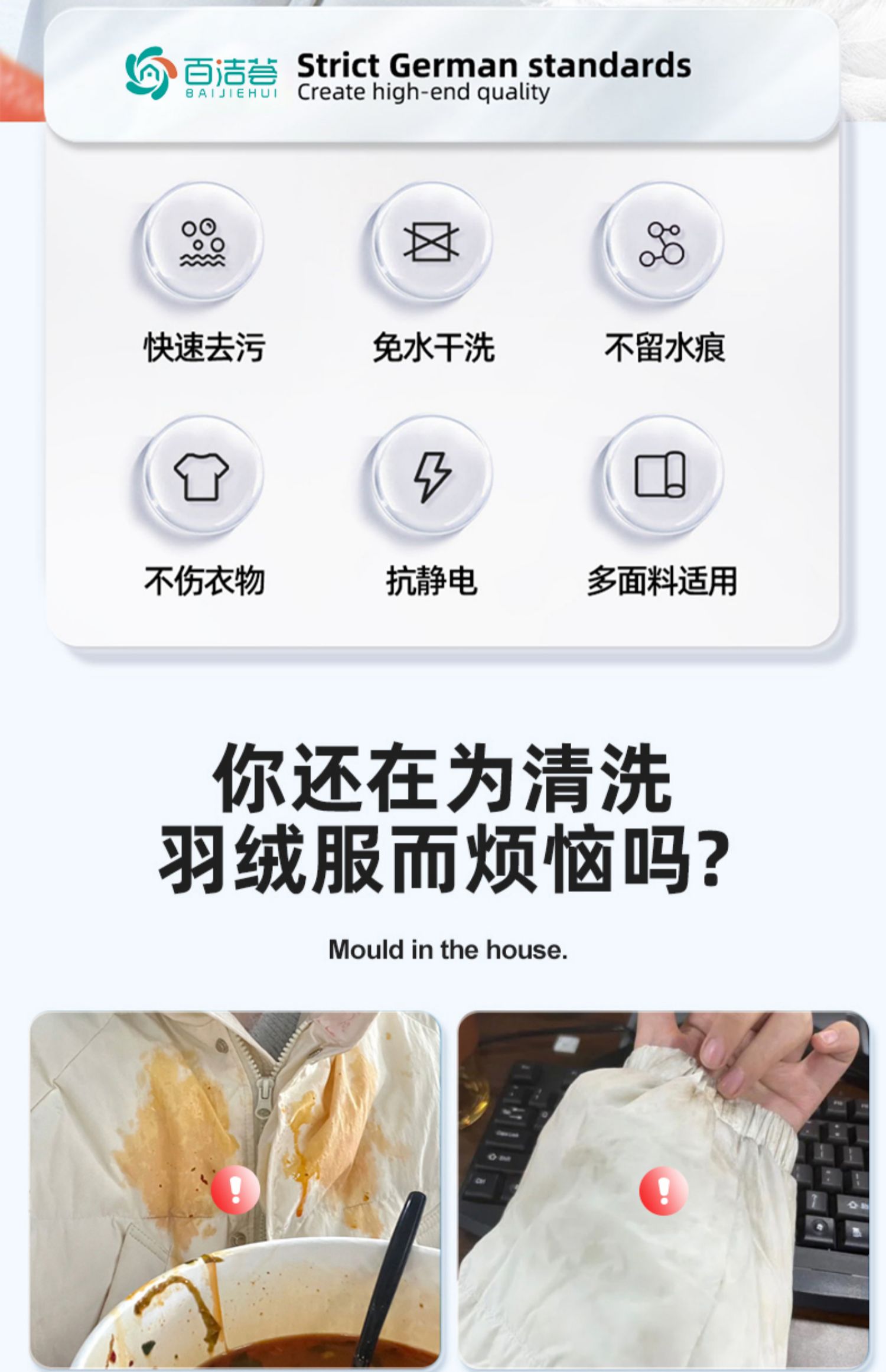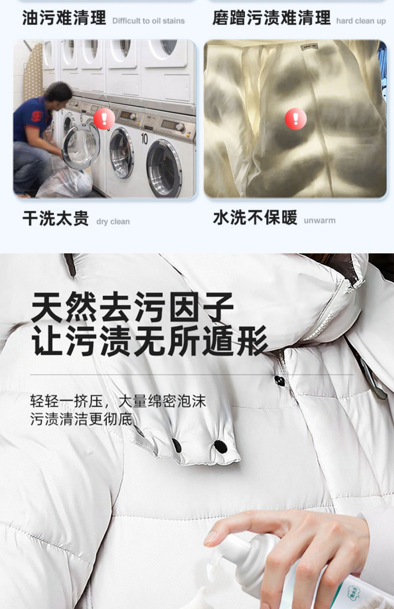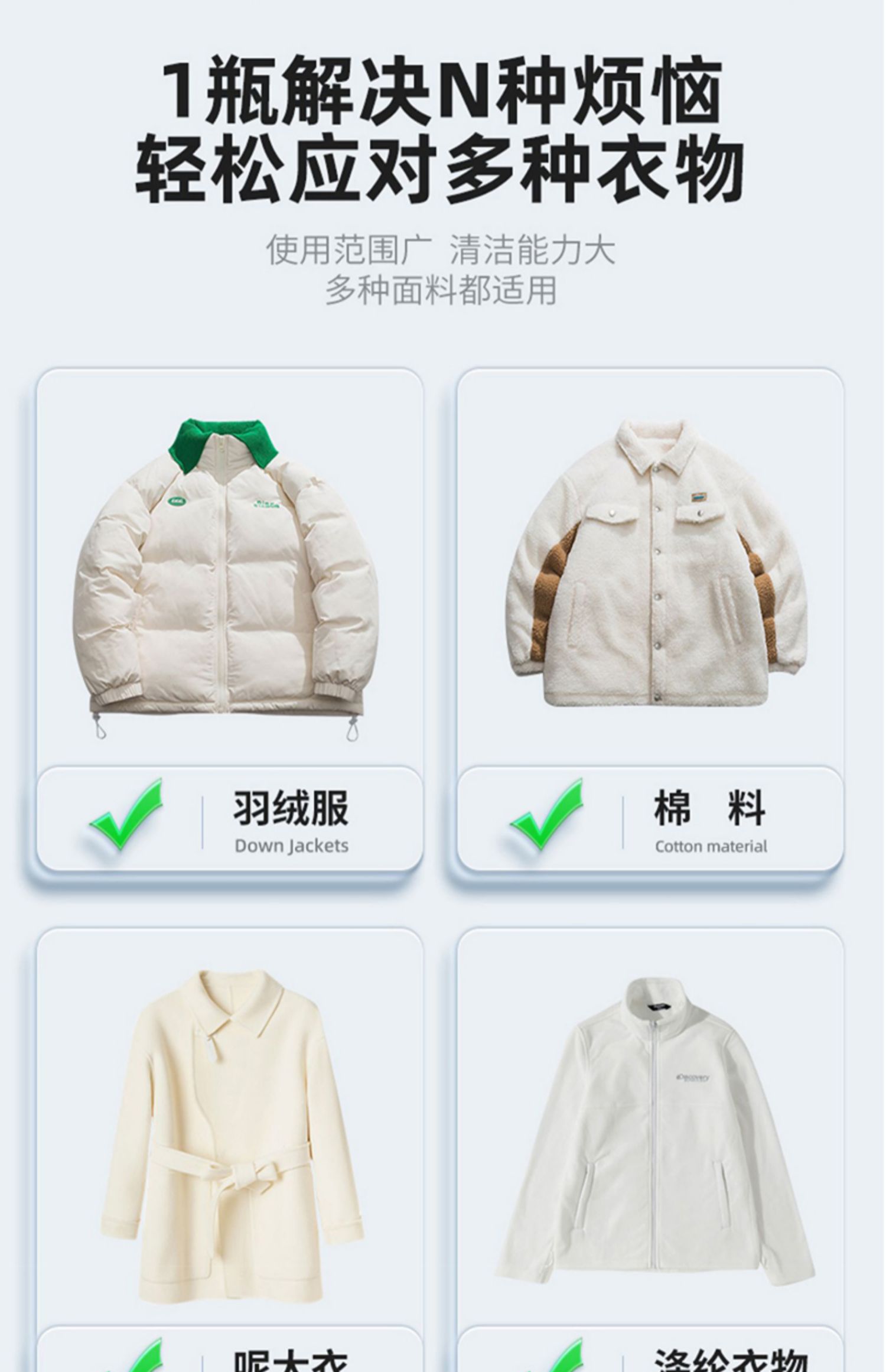 Down jacket cleaning agent, water-free cotton clothing, special dry cleaning agent, detergent, clothes degreasing and stain removal cleaning artifact