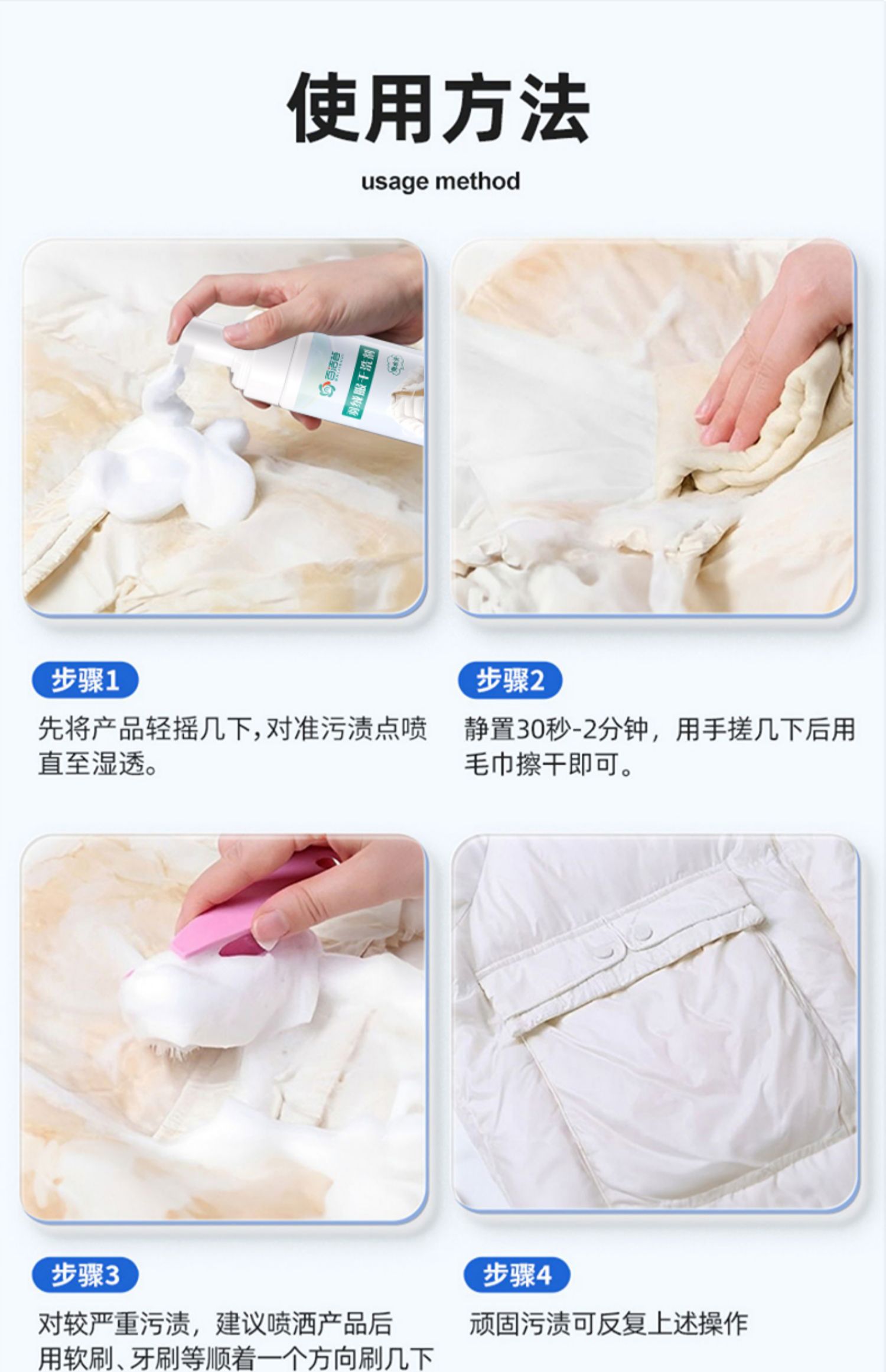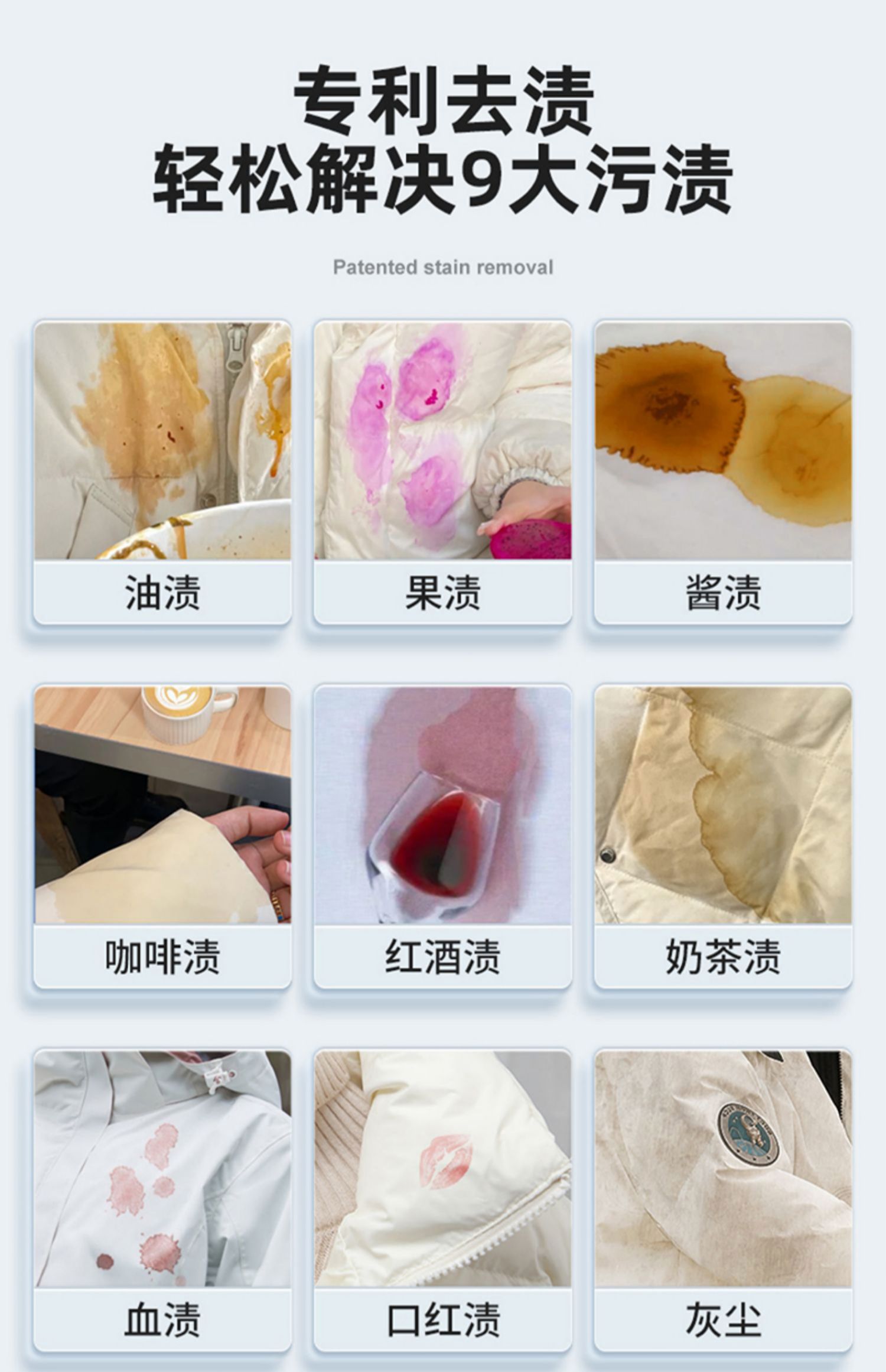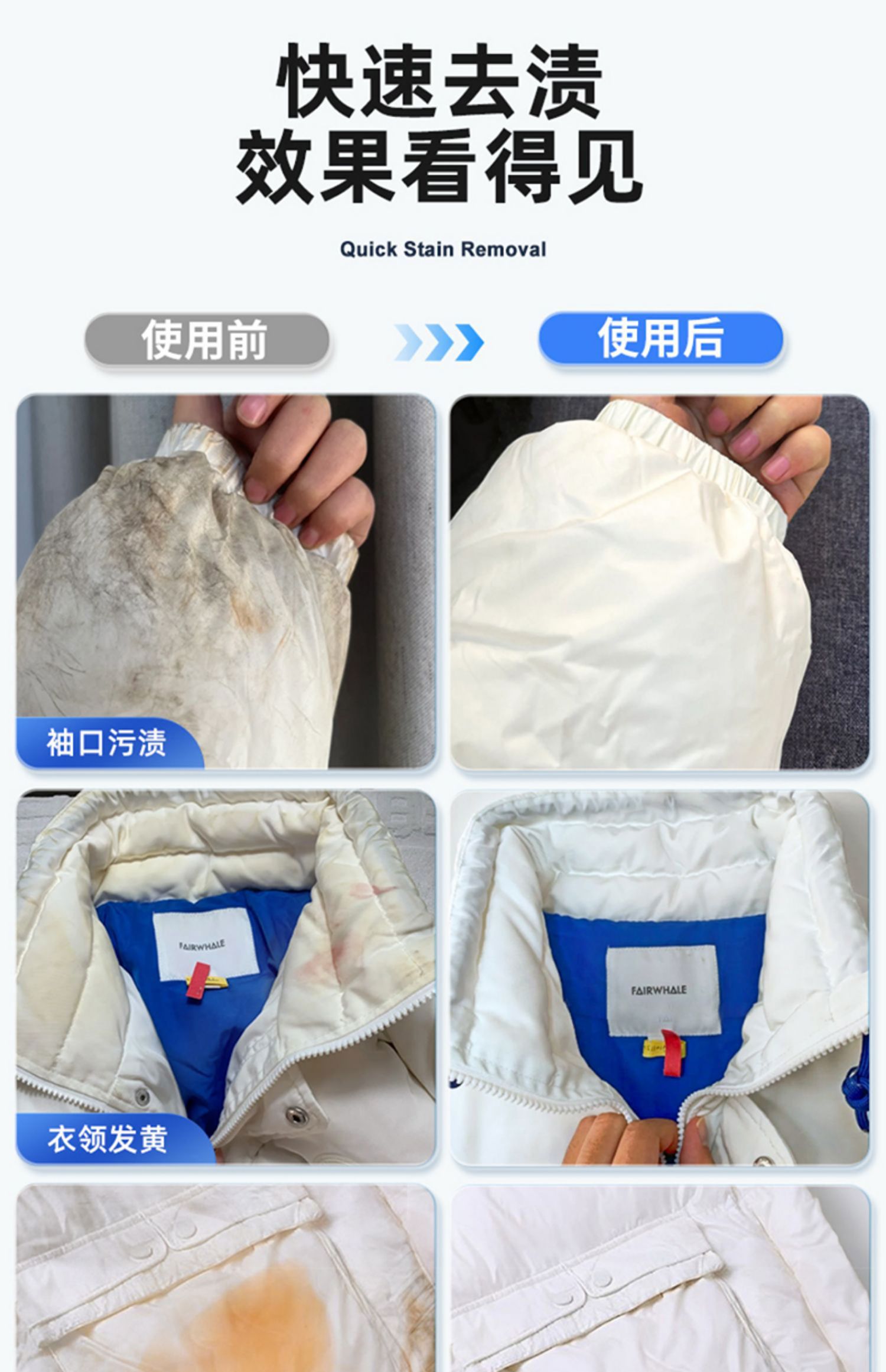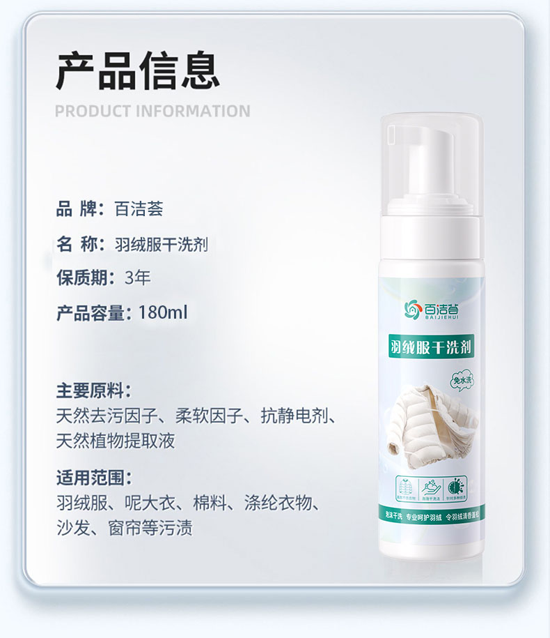Down jacket cleaning agent, water-free cotton clothing, special dry cleaning agent, detergent, clothes degreasing and stain removal cleaning artifact