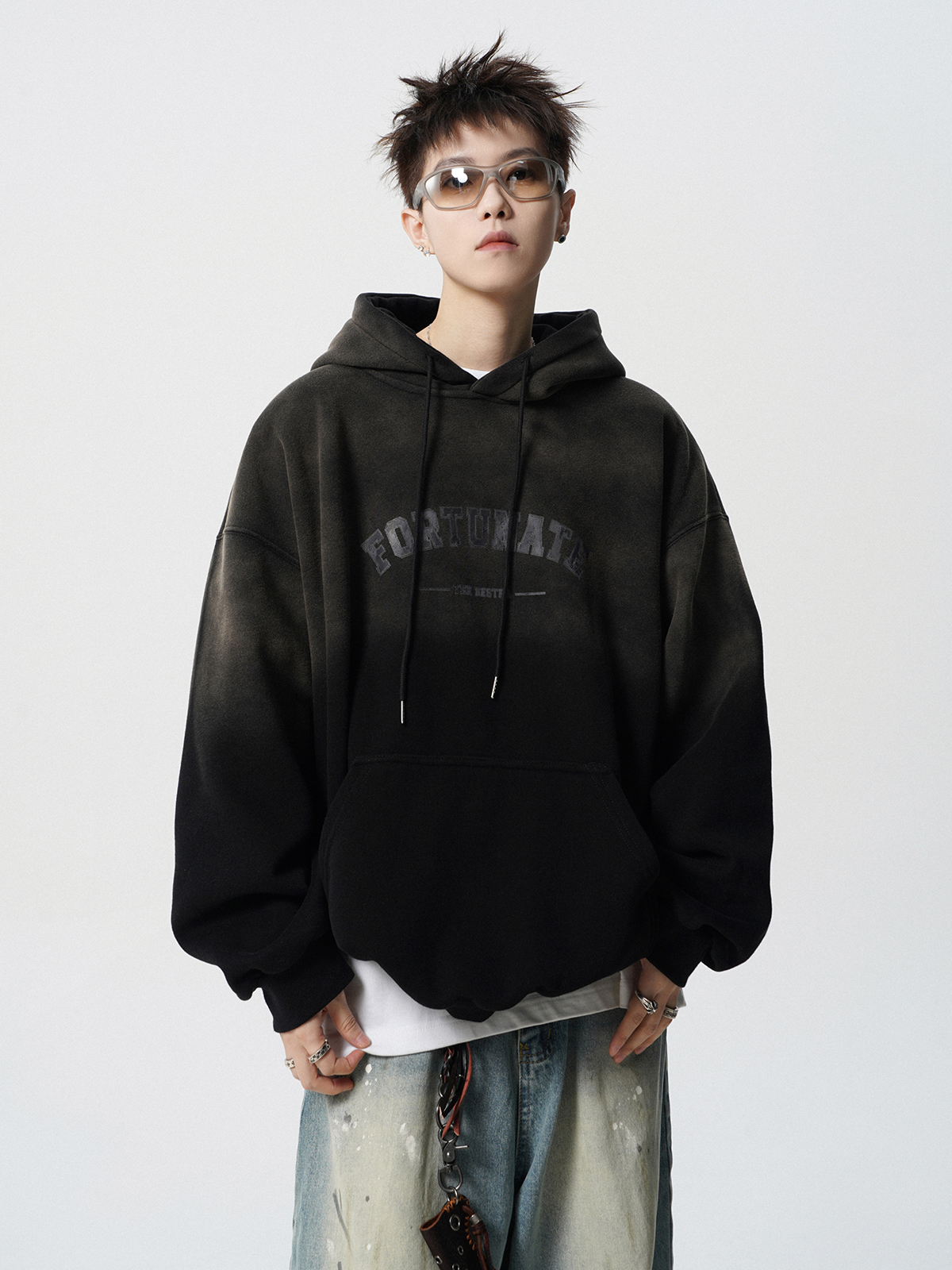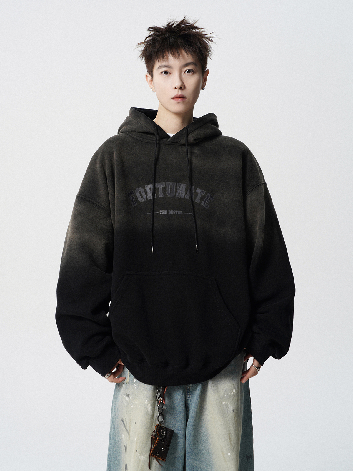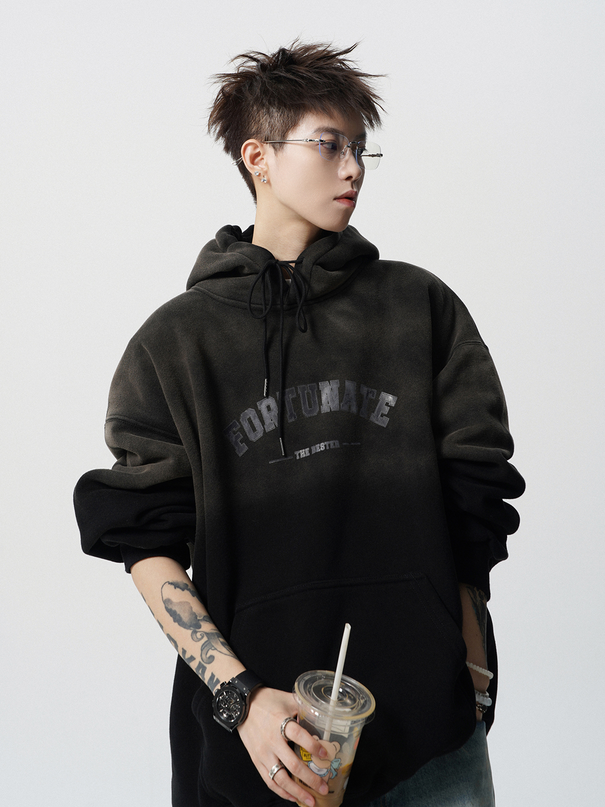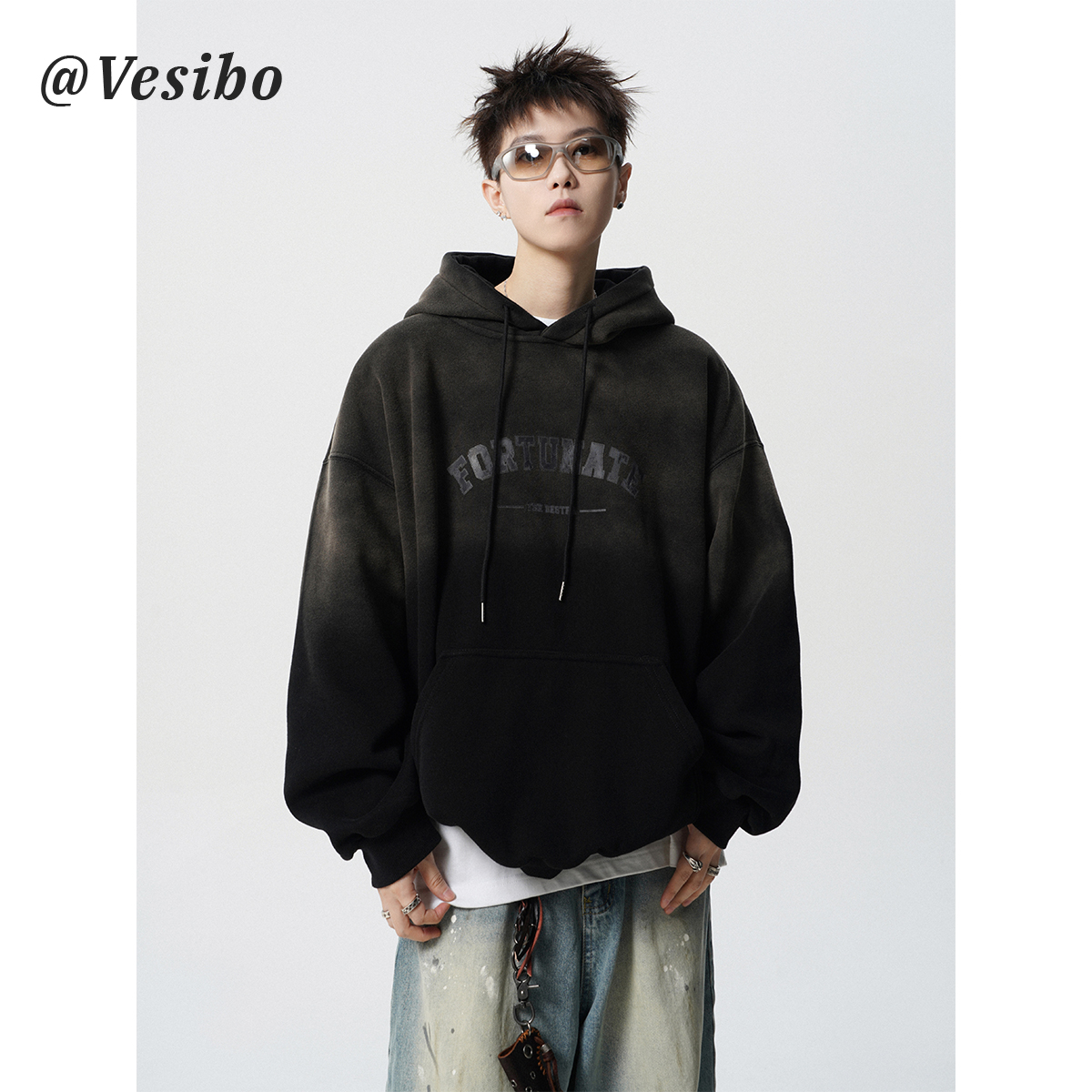American gradient hooded sweatshirt men's autumn trendy brand old sports hoodie high street loose casual versatile jacket