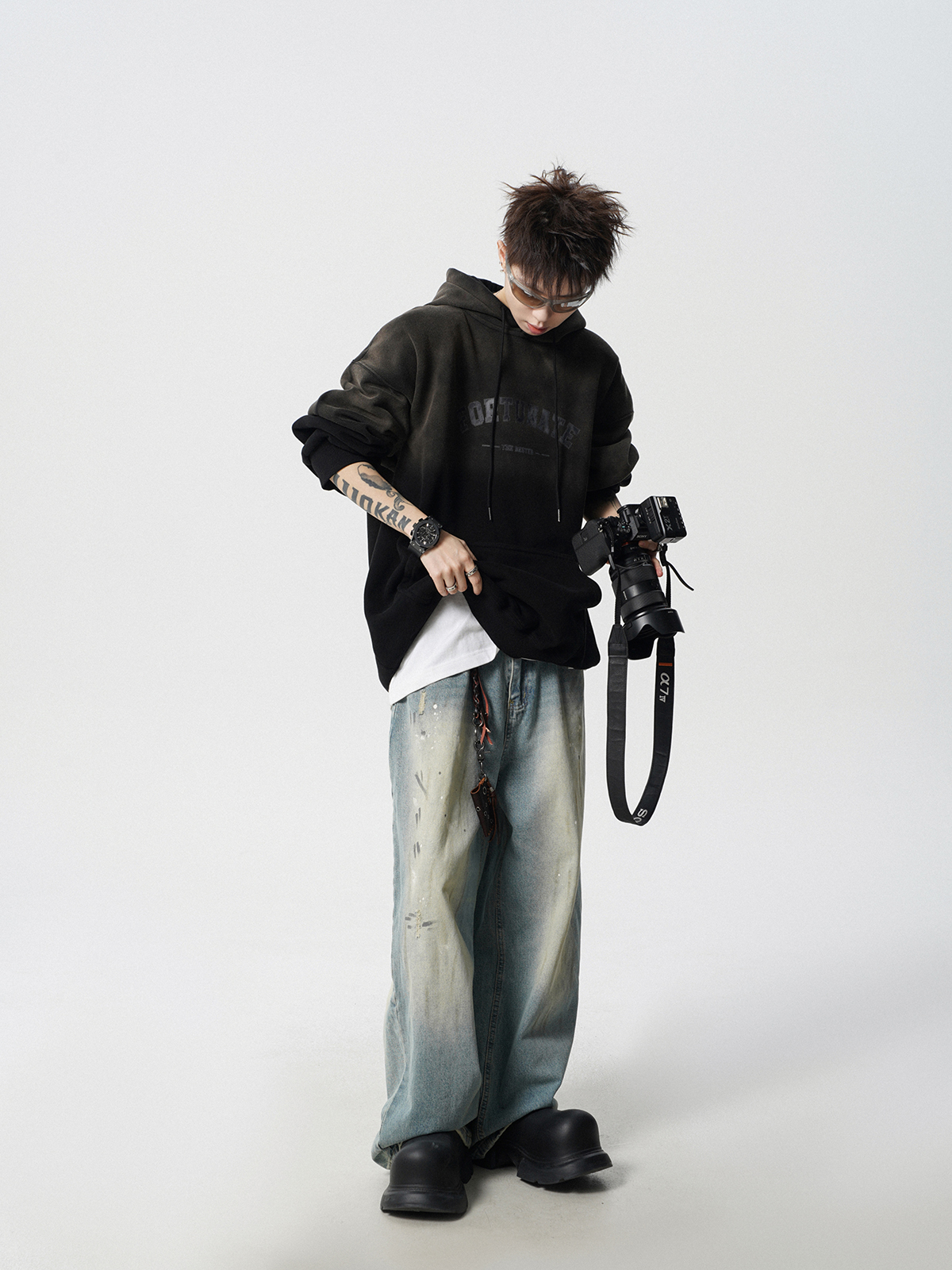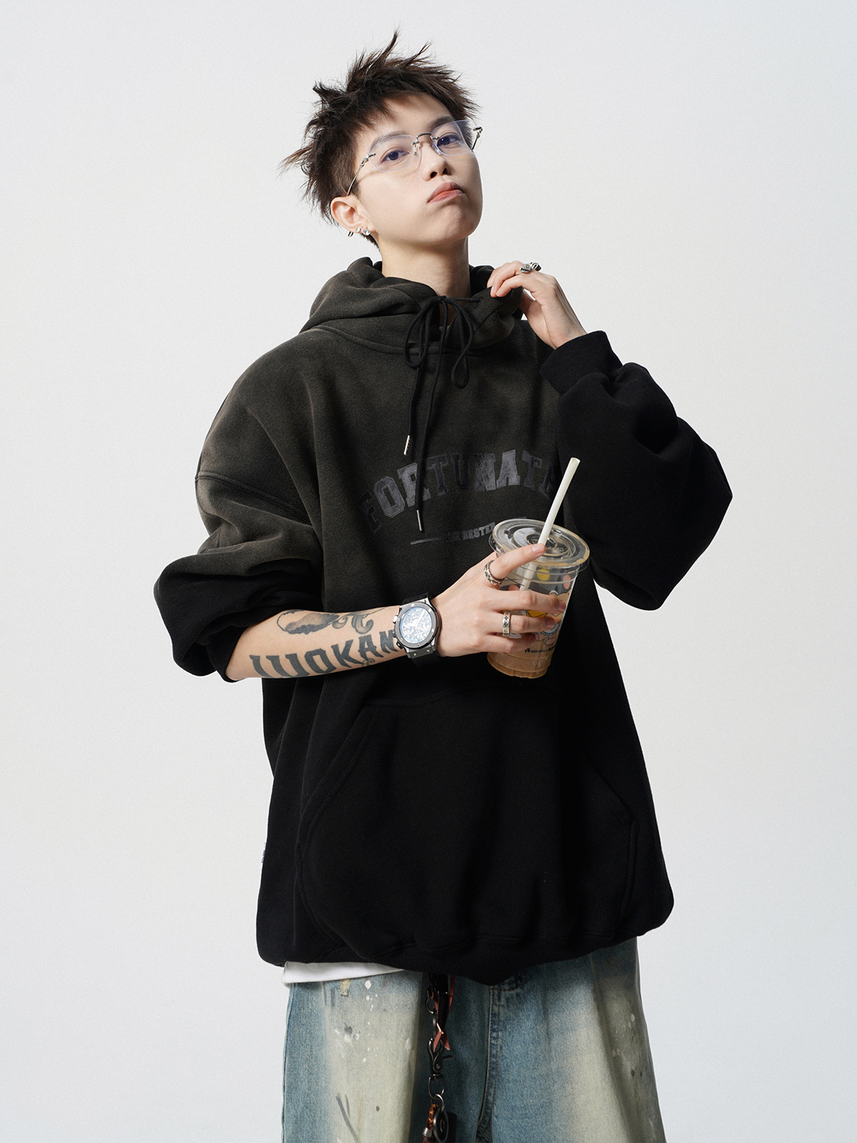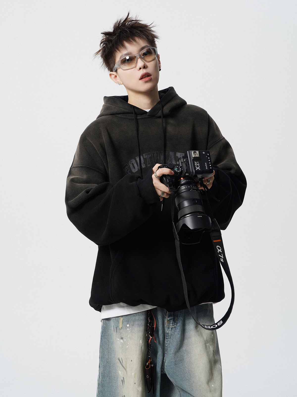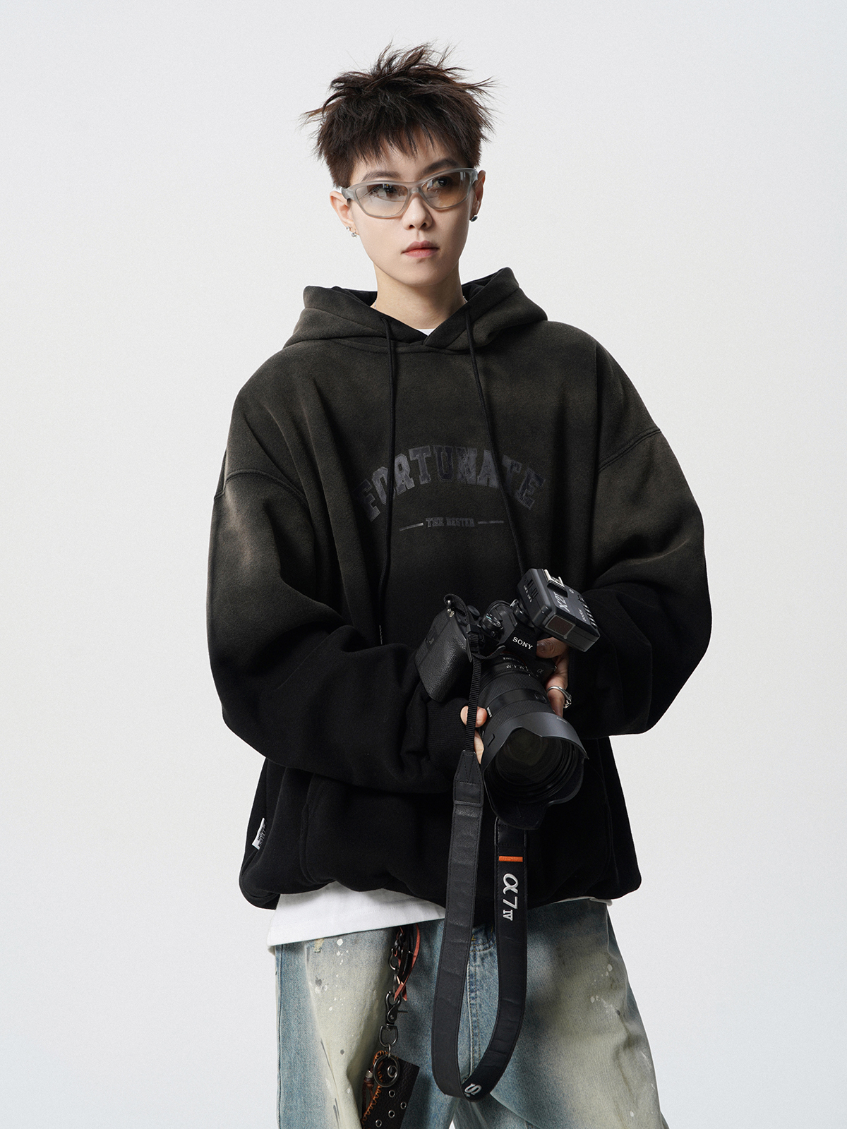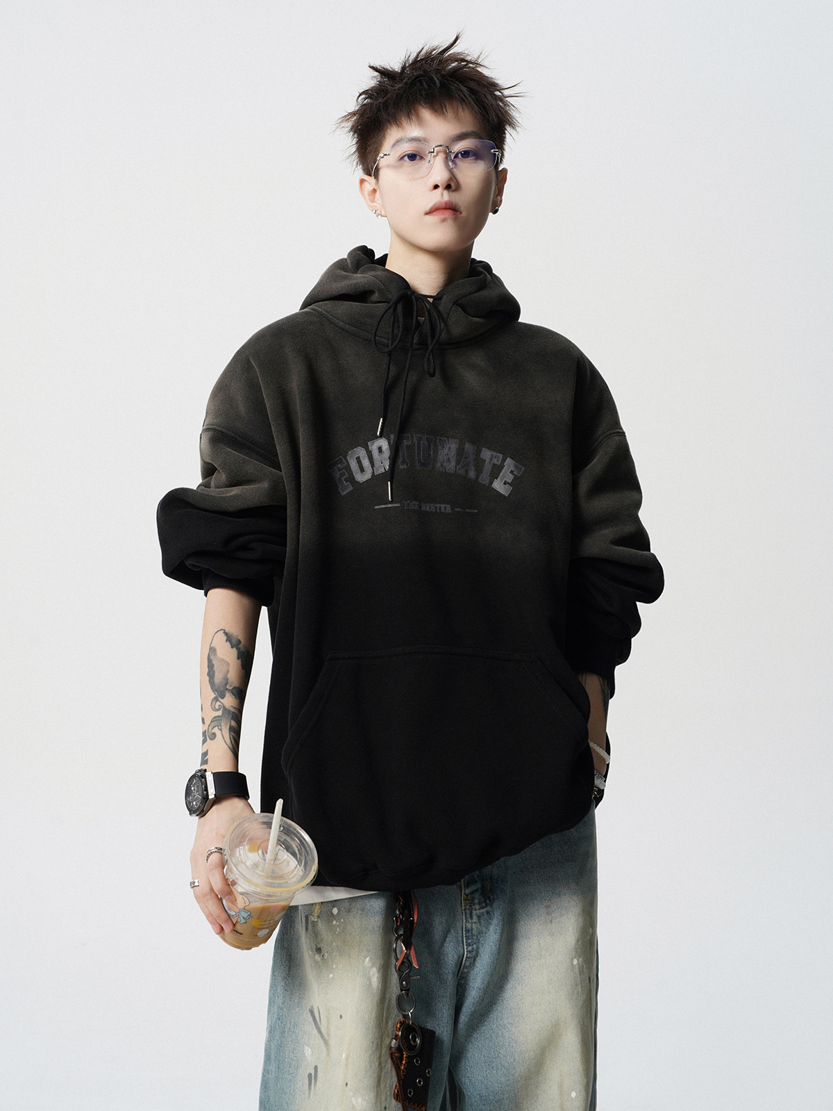 American gradient hooded sweatshirt men's autumn trendy brand old sports hoodie high street loose casual versatile jacket