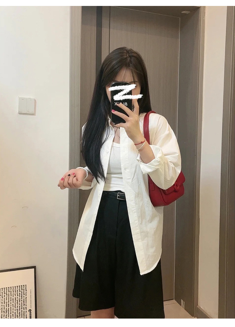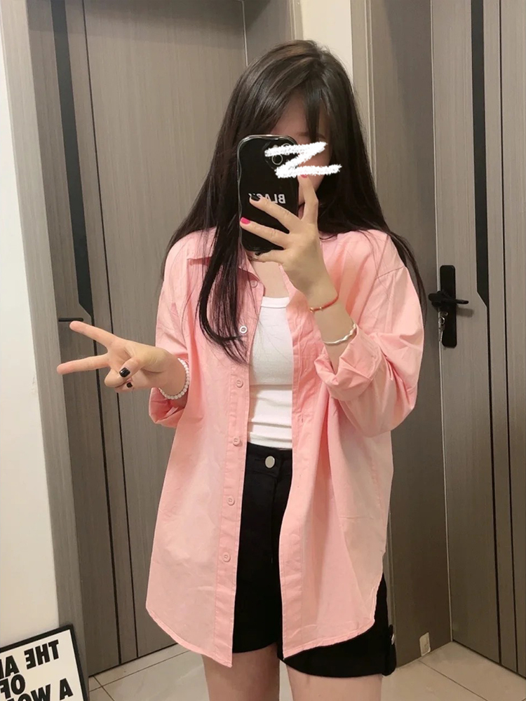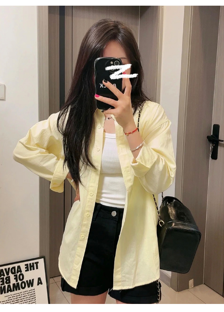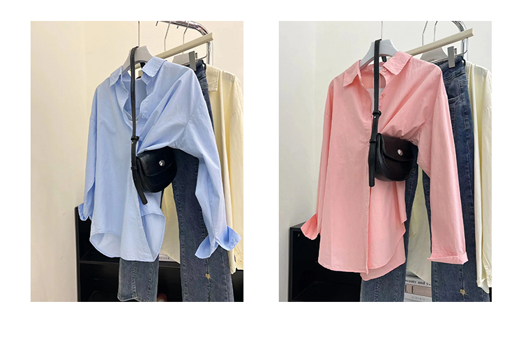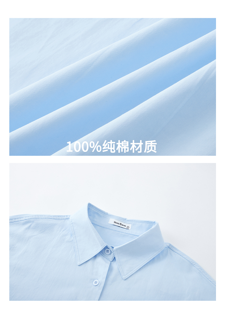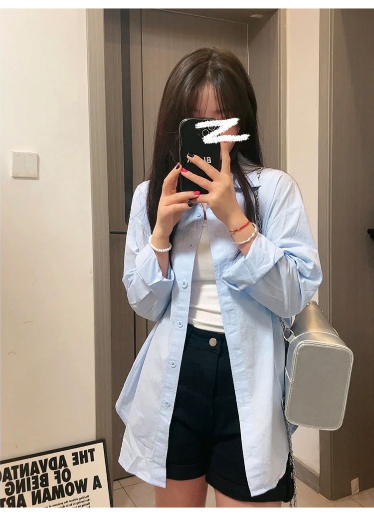 Pure Cotton Blue Shirt for Women, Spring, Autumn and Winter 2025 New Style, Lapel, Long-Sleeved Shirt, Outer Wear, Petite Top