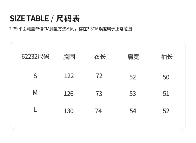 China (cm)160-165/84-86165-170 / 88-90167-172 / 92-96168-173 / 98-102170-176 / 106-110