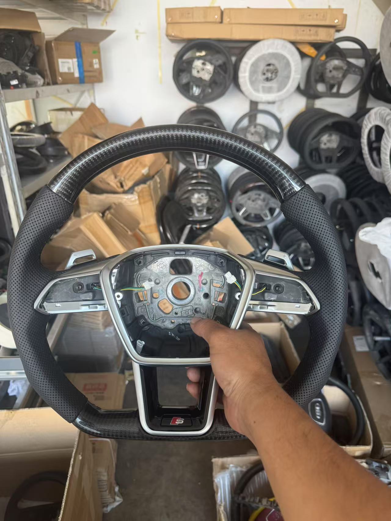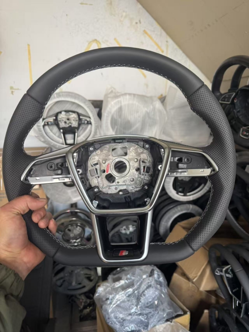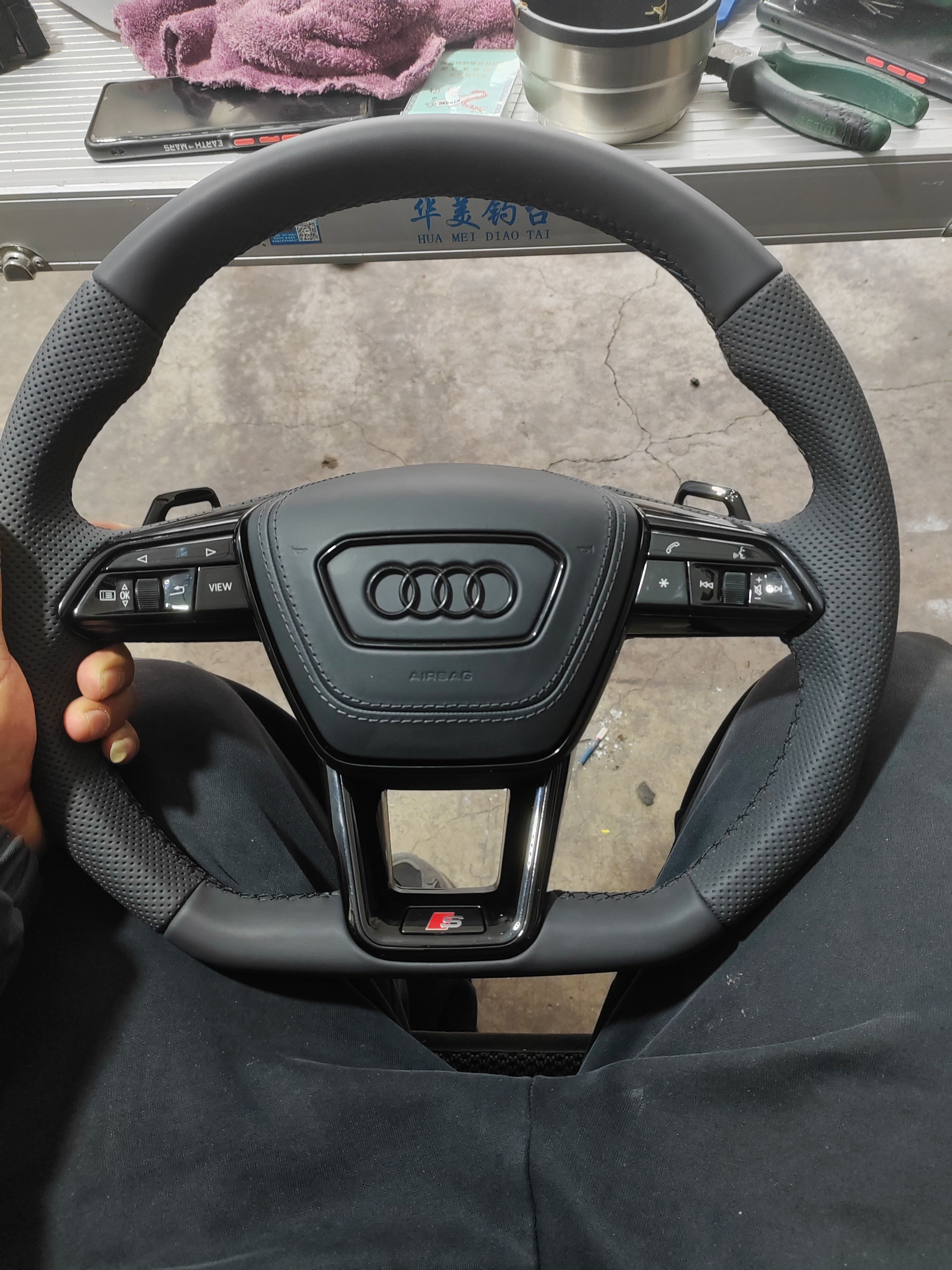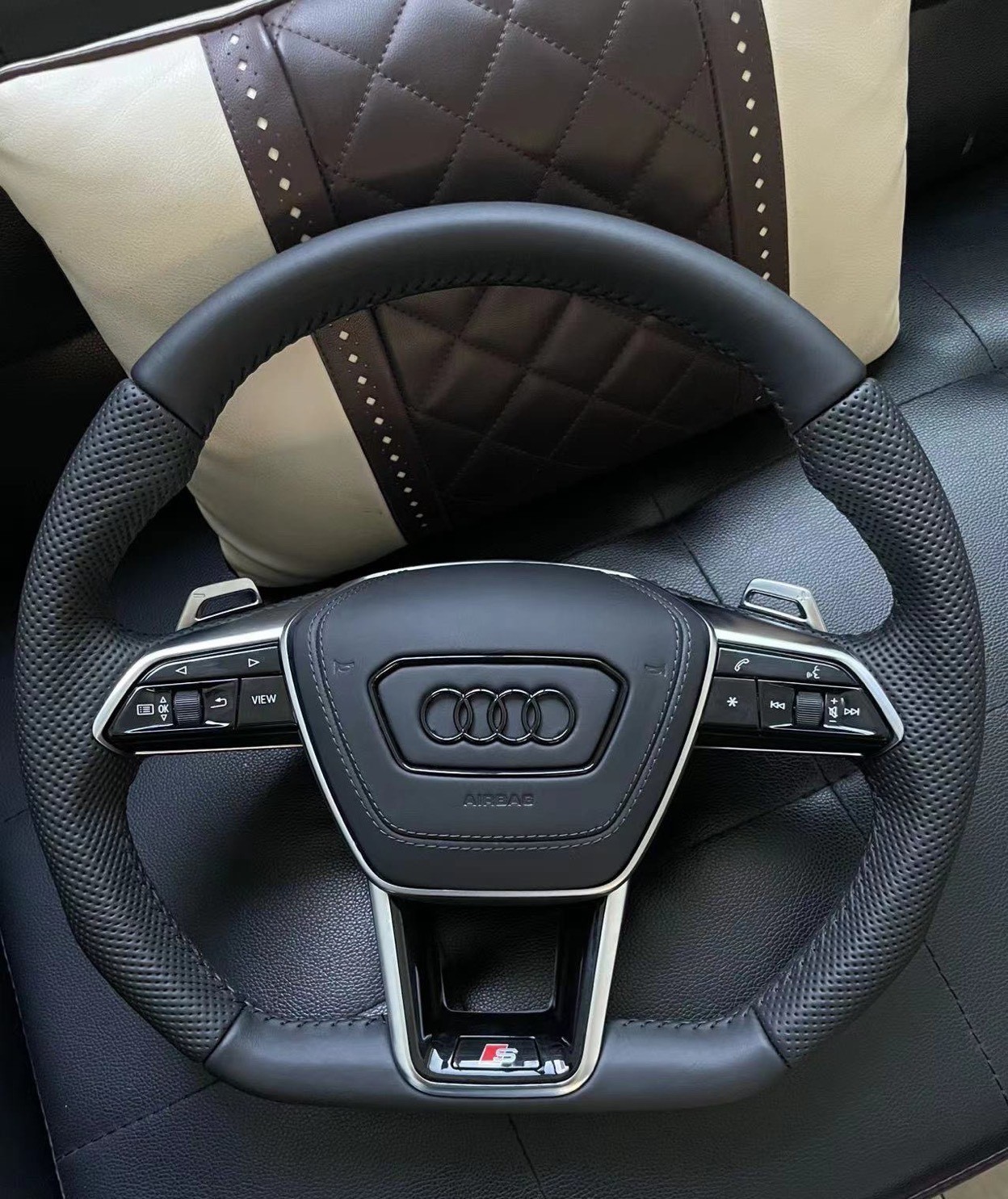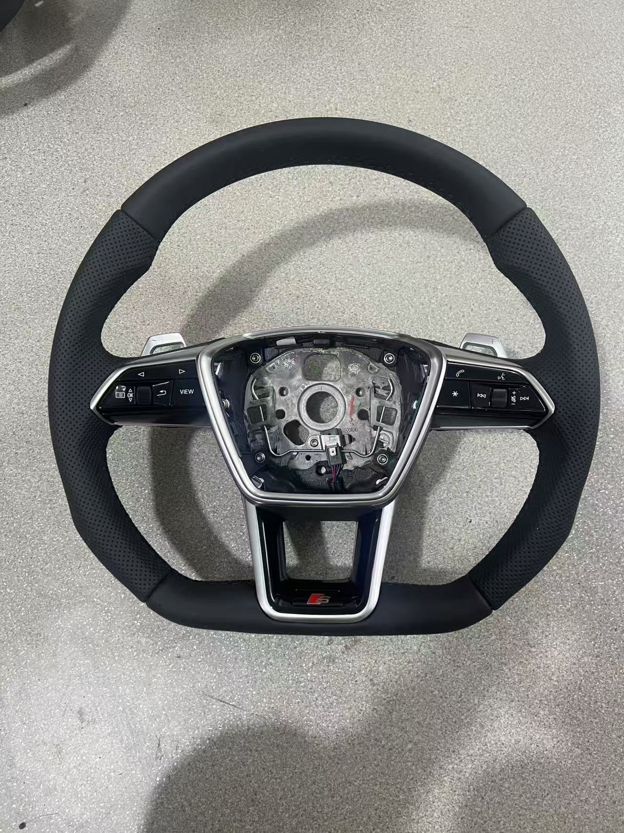 Suitable for Audi A6Lc8A7La8L Upgraded Flats-Bottomed Sports Steering Wheel D-Shaped Steering Wheel Perforated Leather Carbon Fiber