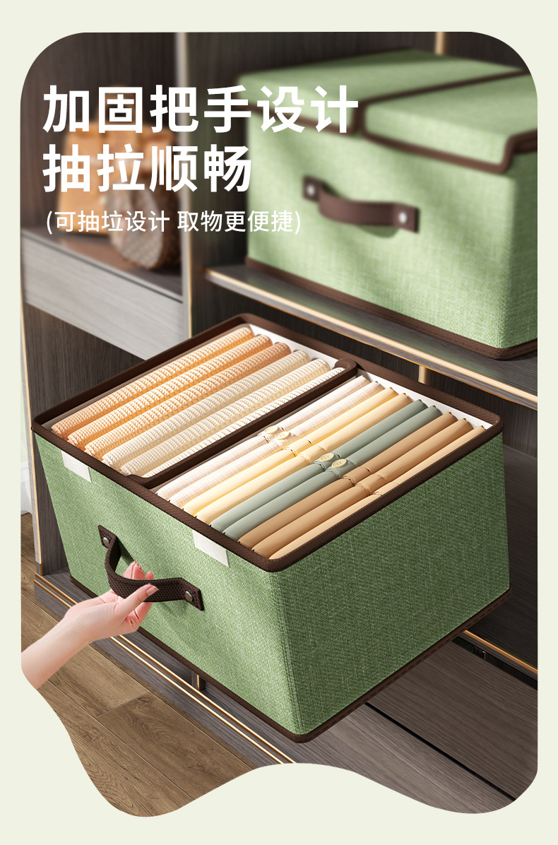 Wardrobe Clothes Storage Box, Household Clothing Divider Organizer Box, Storage Box, Pants Storage Layering Organizer, Cotton and Linen Basket