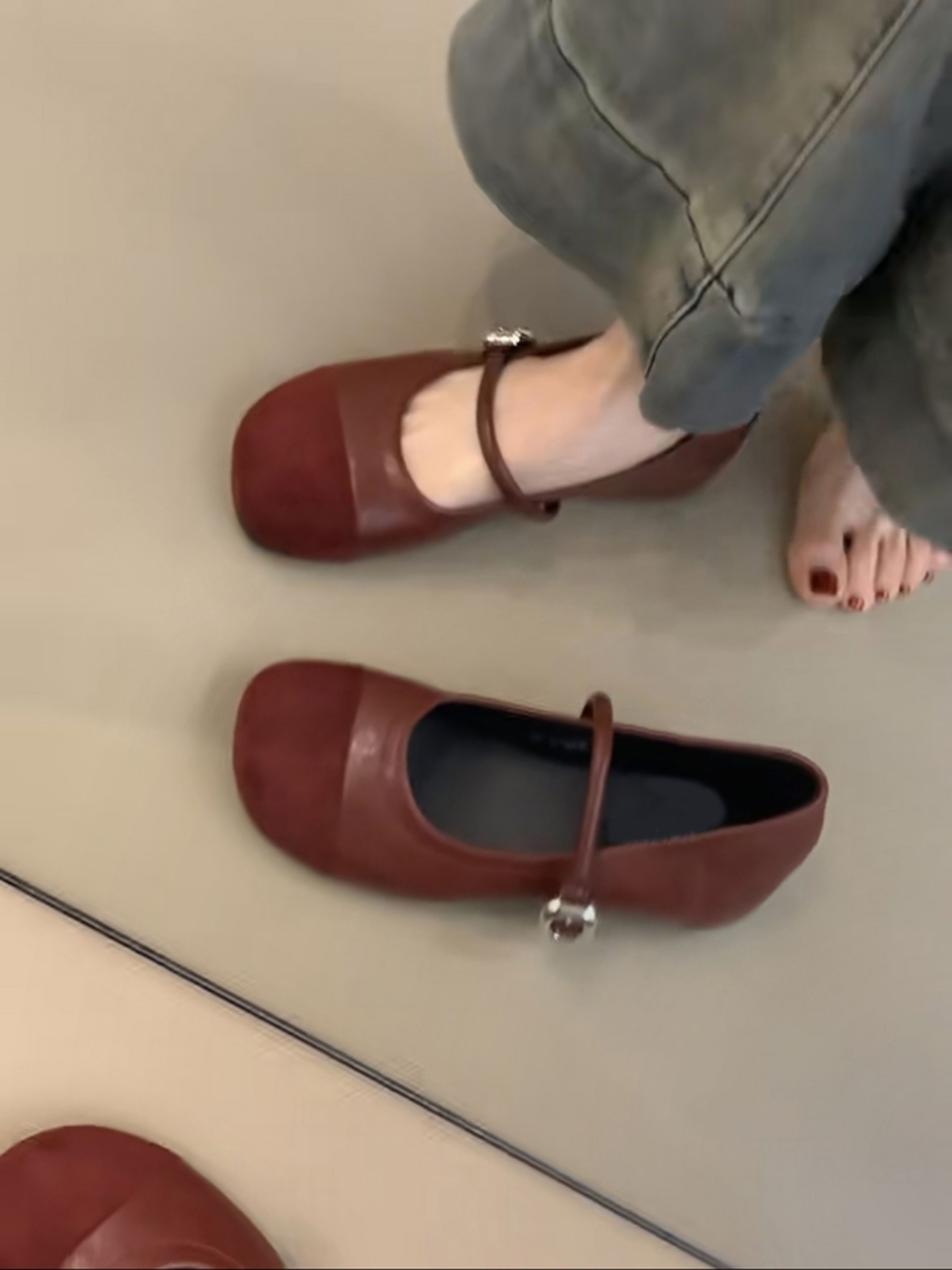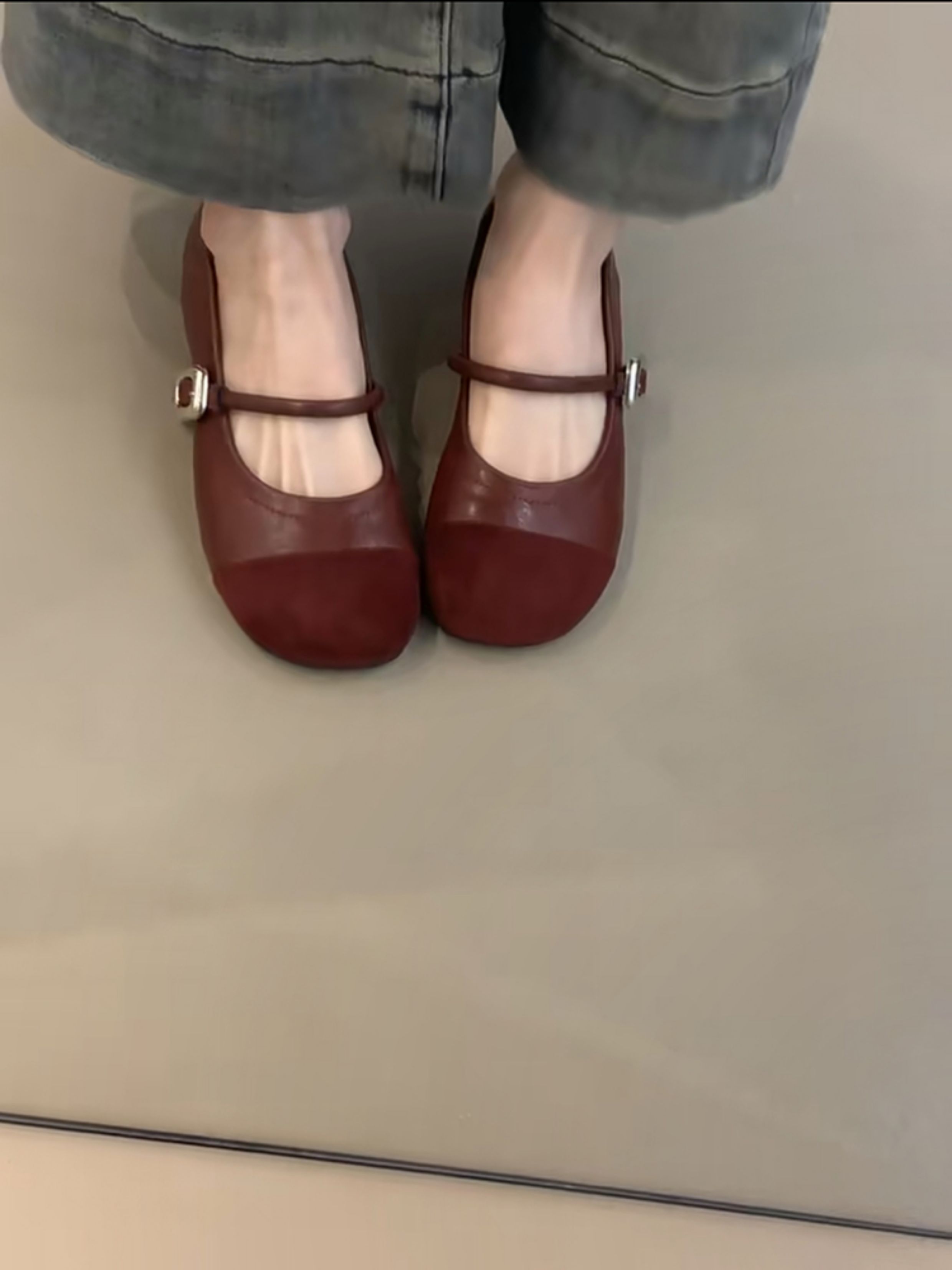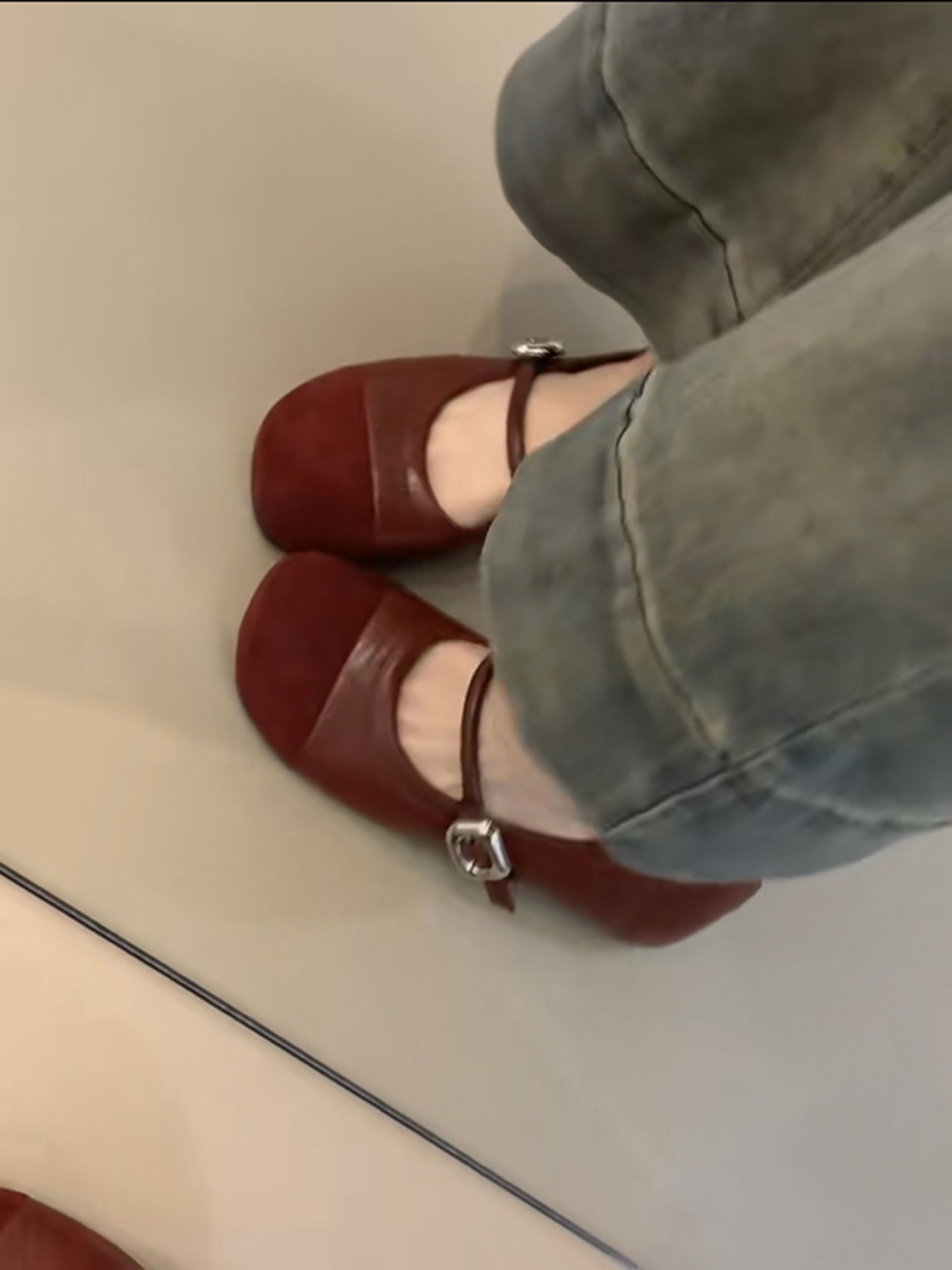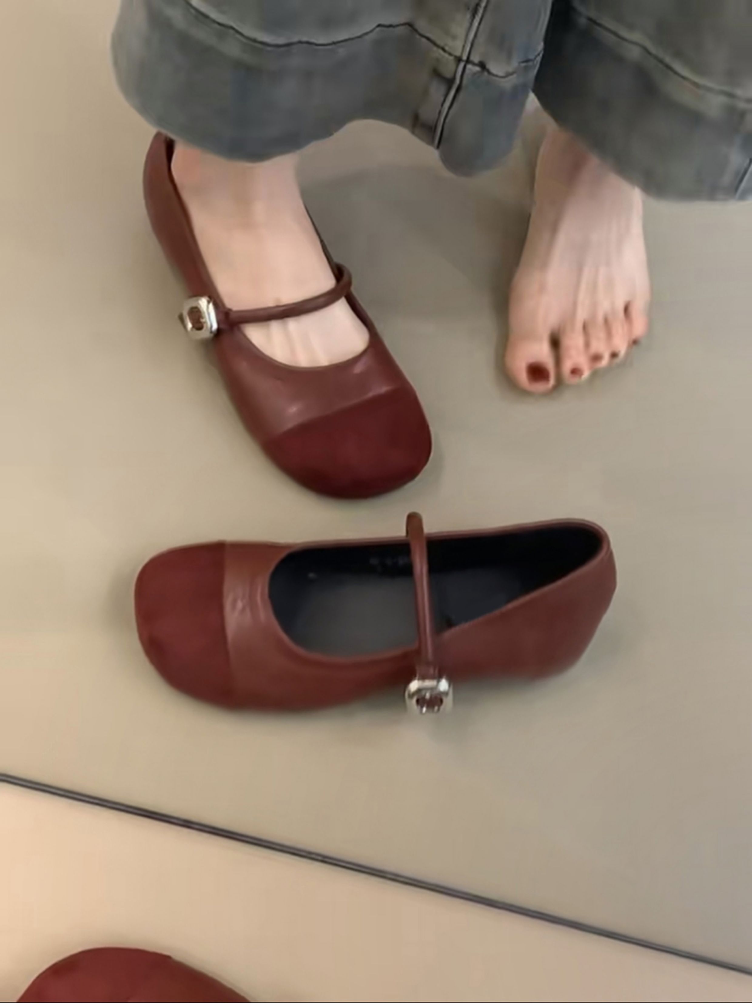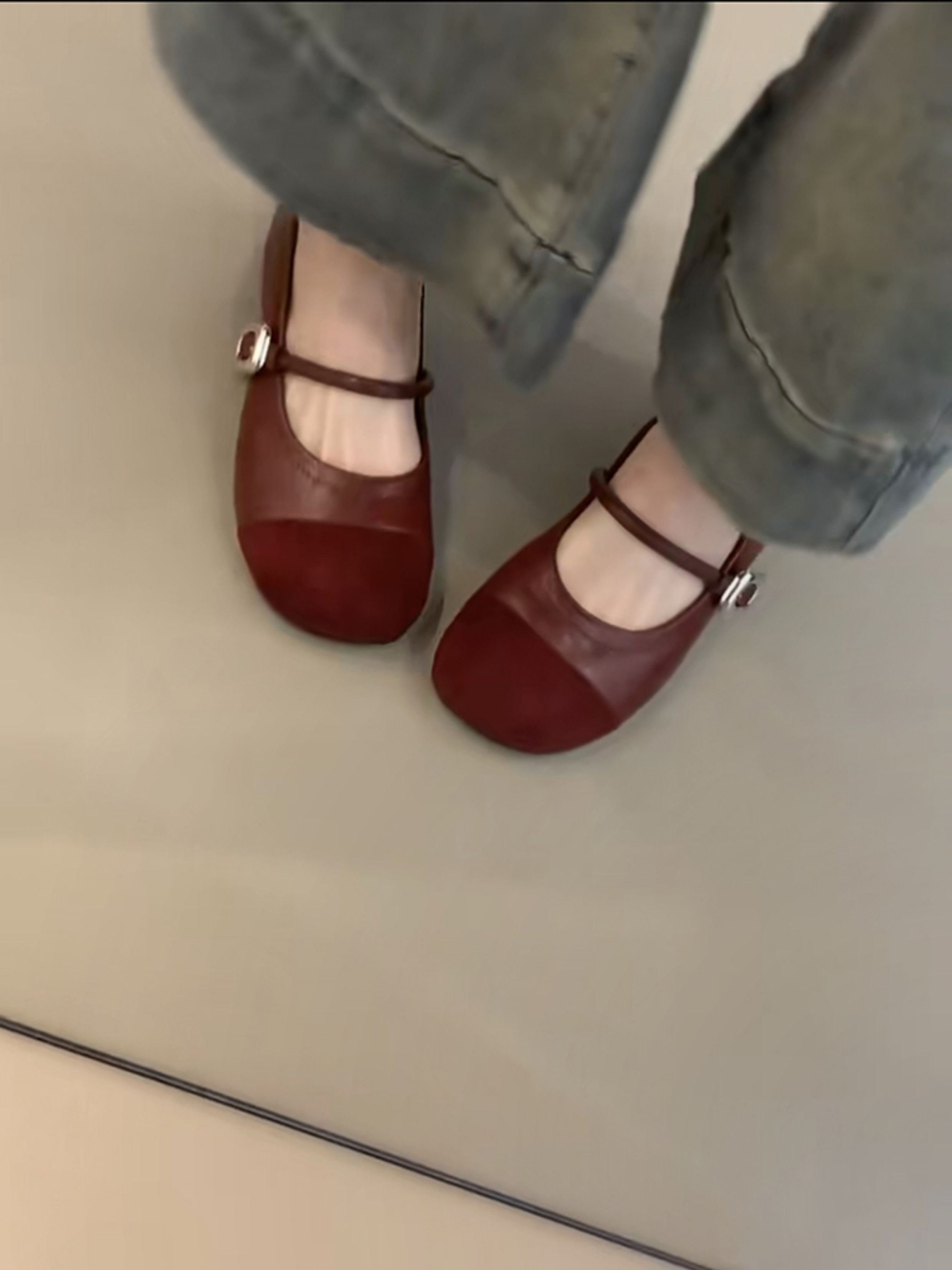 Sheepskin Version with 5cm Internal Height Increase, Vintage French Style, Elegant and Suitable for Skirts, Round-Toe Mary Jane Shoes, Patchwork Single Shoes for Women