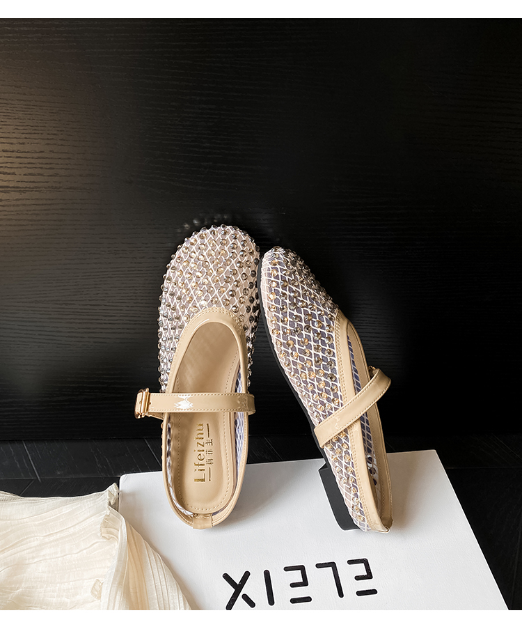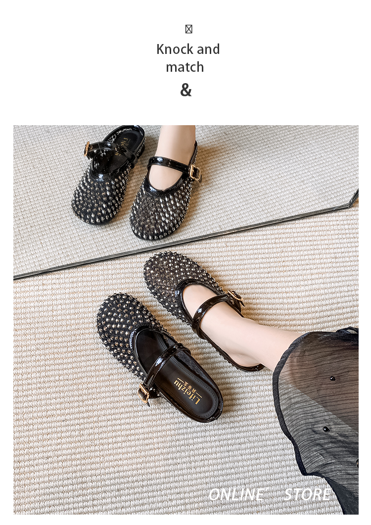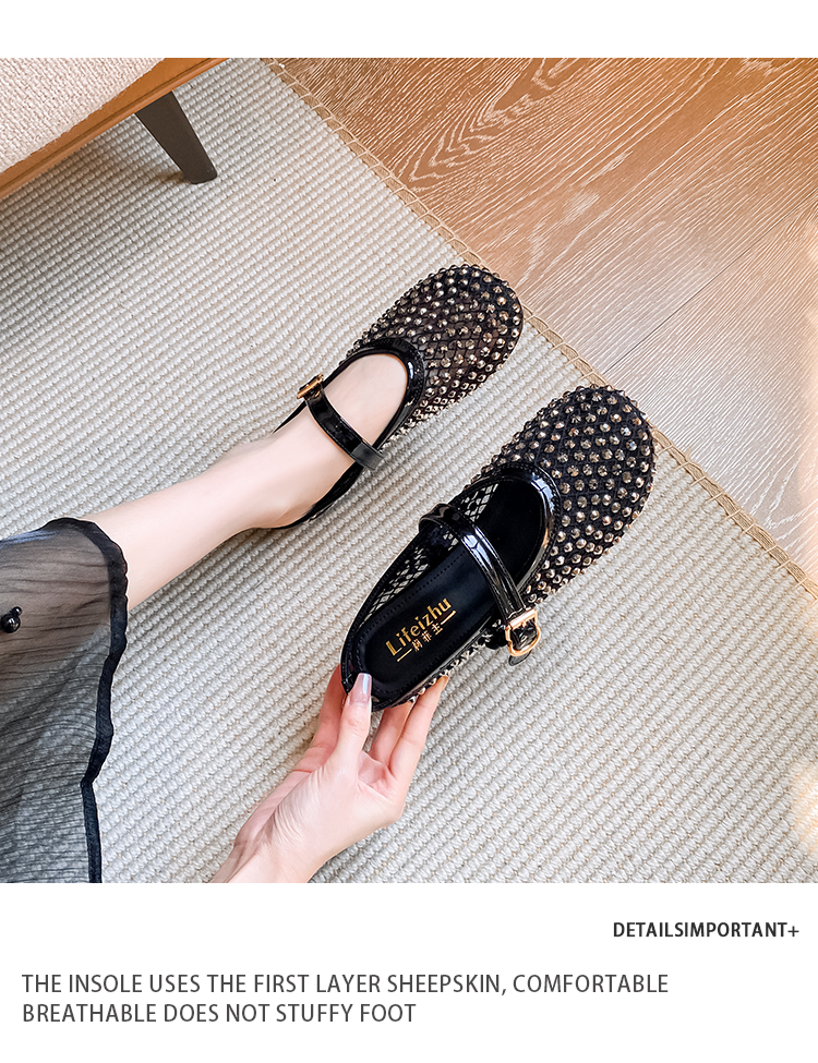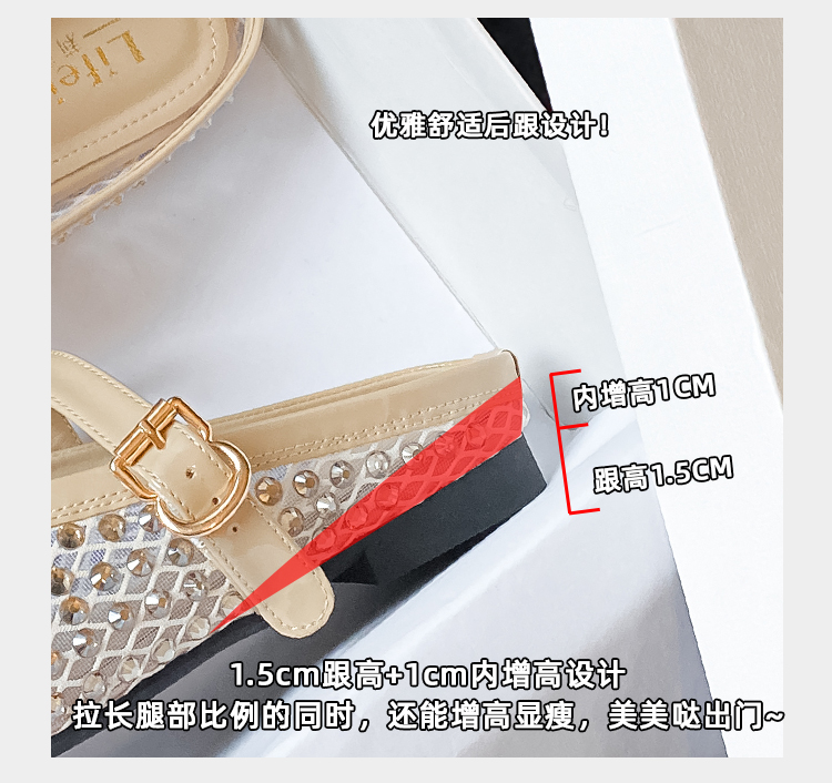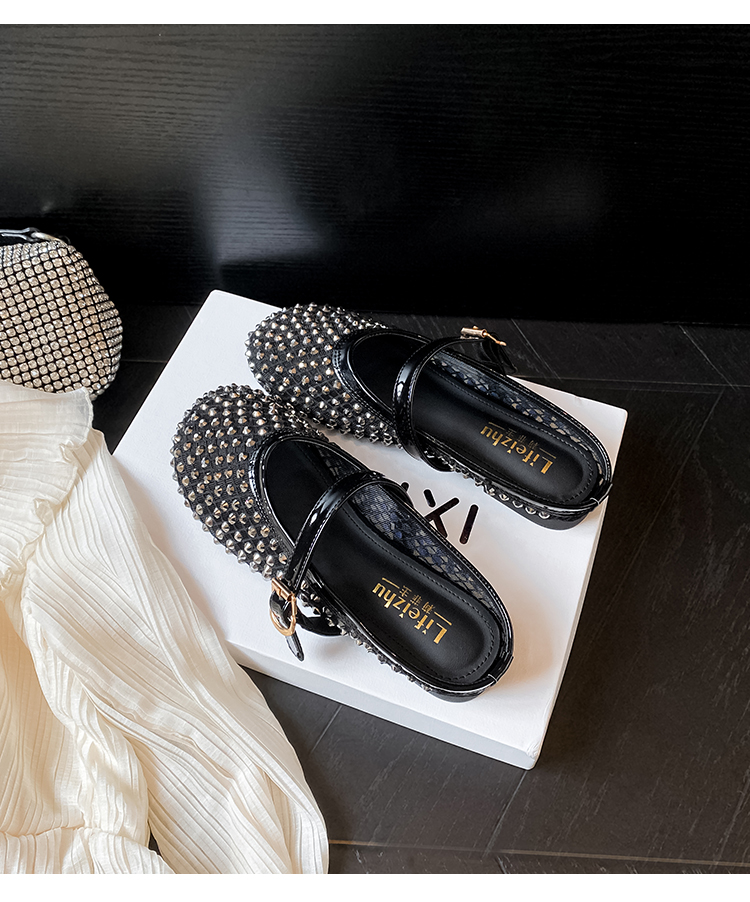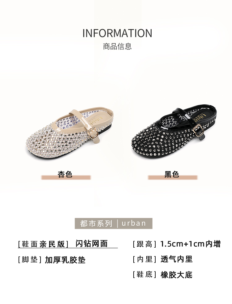 Open-Toe Slippers with Buckle and Rhinestones, Niche Half-Slippers for Women, Summer 2025 New Style, Mesh Breathable Fairy Slippers