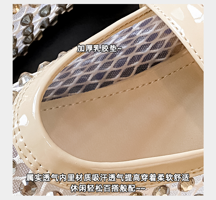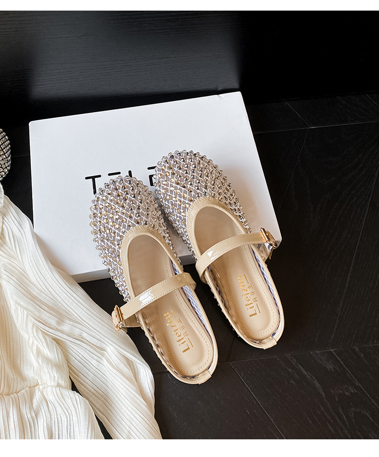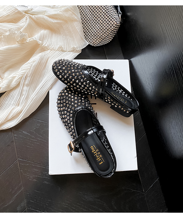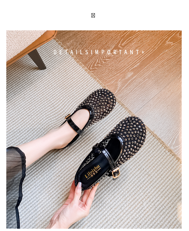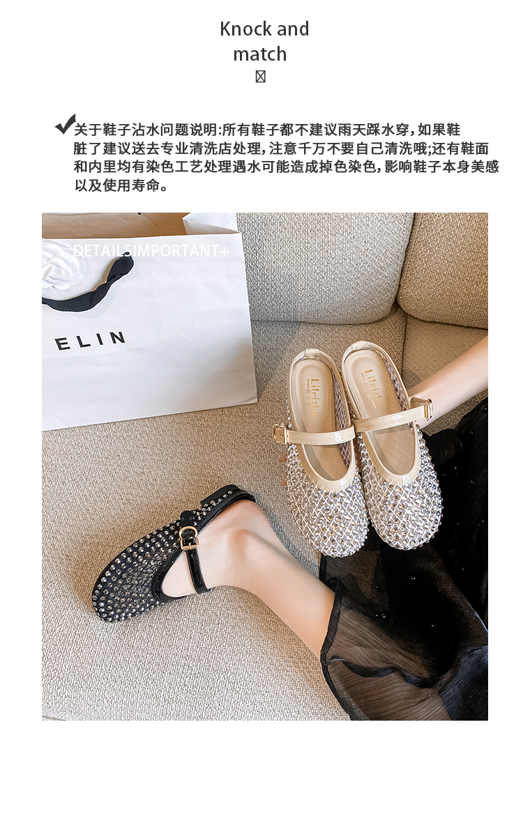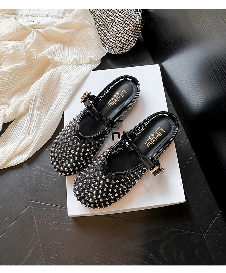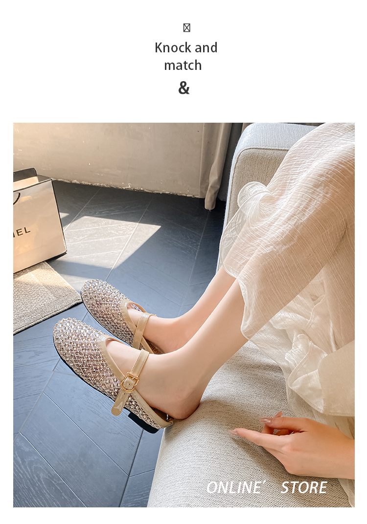 Open-Toe Slippers with Buckle and Rhinestones, Niche Half-Slippers for Women, Summer 2025 New Style, Mesh Breathable Fairy Slippers