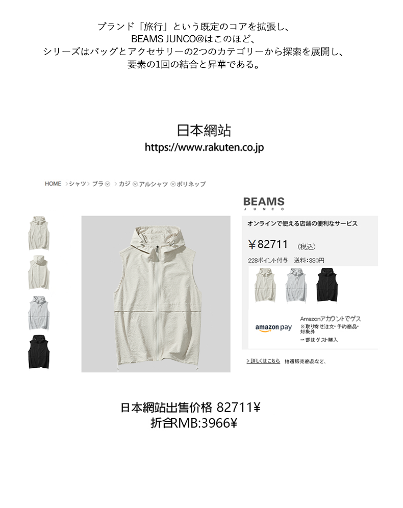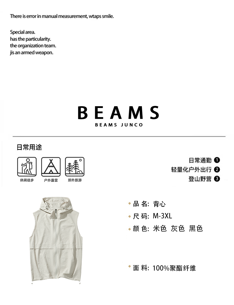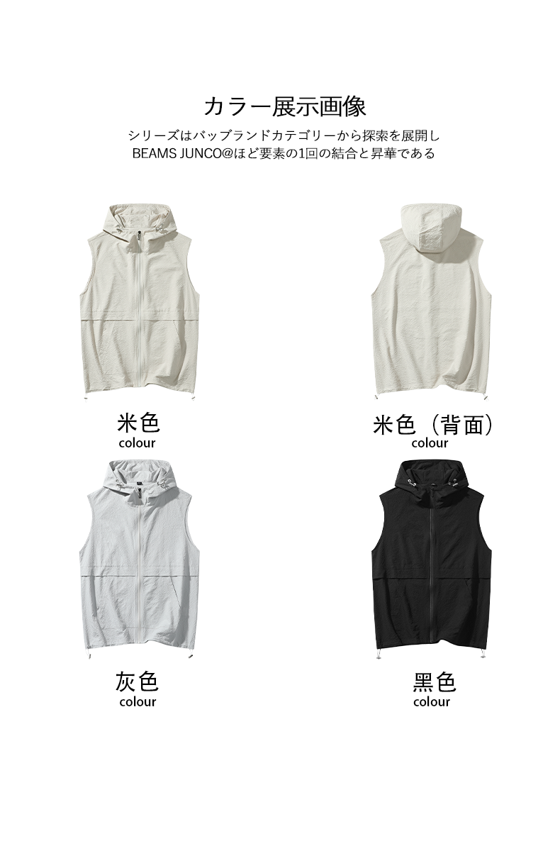 [Brand Clearance] Beams Junco Summer Short-Sleeved Men's Hooded Sweat-Absorbent Lightweight Sleeveless Vest
