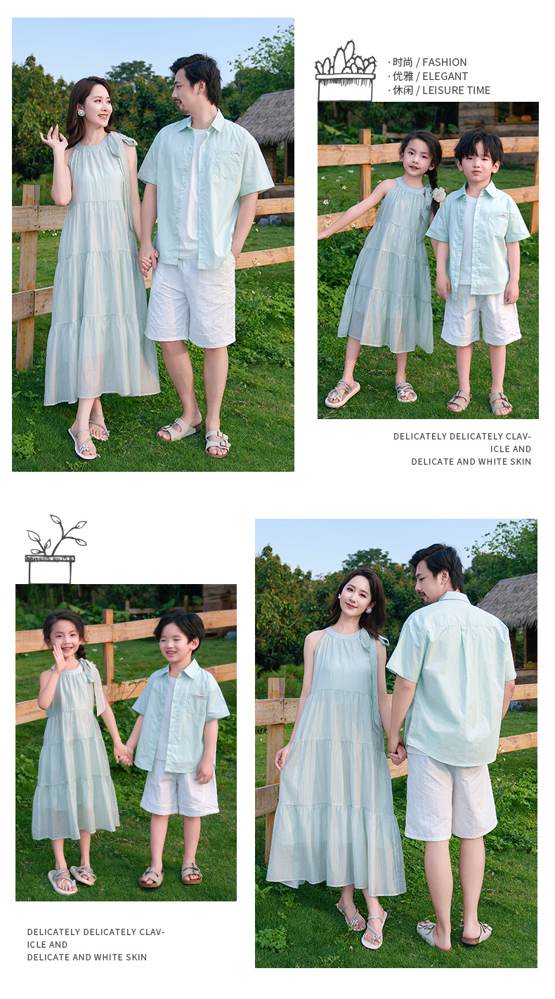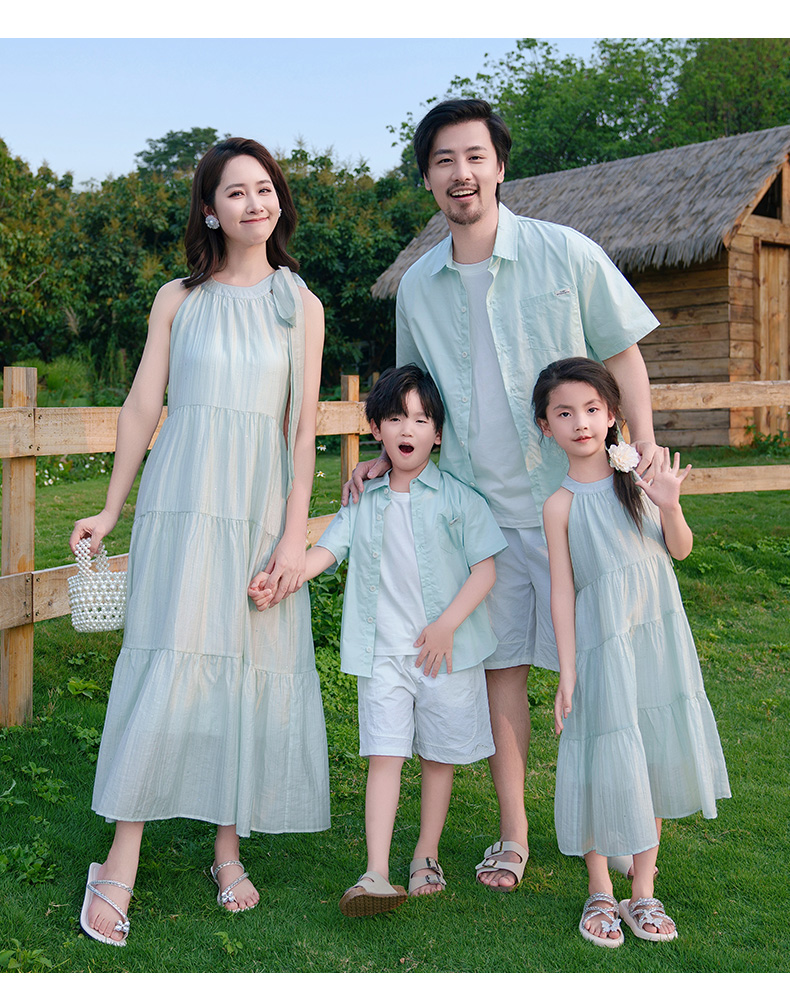 New High-End Family Matching Outfits for Summer, Stylish Mother-Daughter Dresses and Vacation T-Shirt Sets for a Family of Three or Four